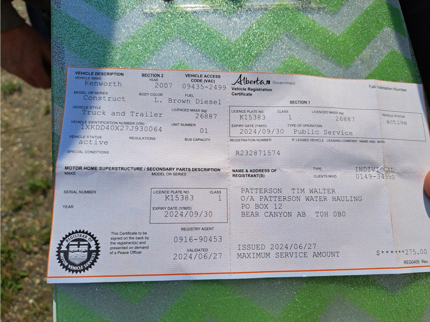 - Copy of registration on hand.