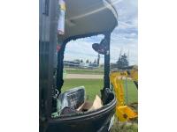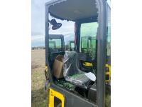 Enclosed cab, gas engine, 12 inch bucket, manual thumb, 2 Ft 6 inch stick, backfill blade, 7 inch rubber tracks