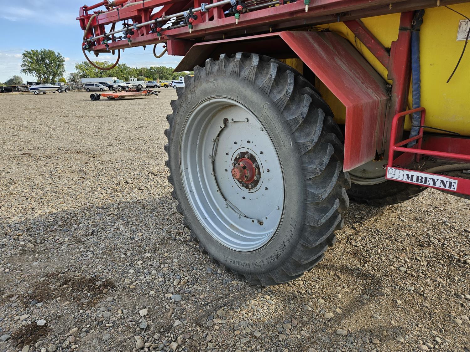 poly tank, 4 nozzle bodies, 1000 pump drive, monitor, chemical mix tank, rinse tank, 380/90R46 tires