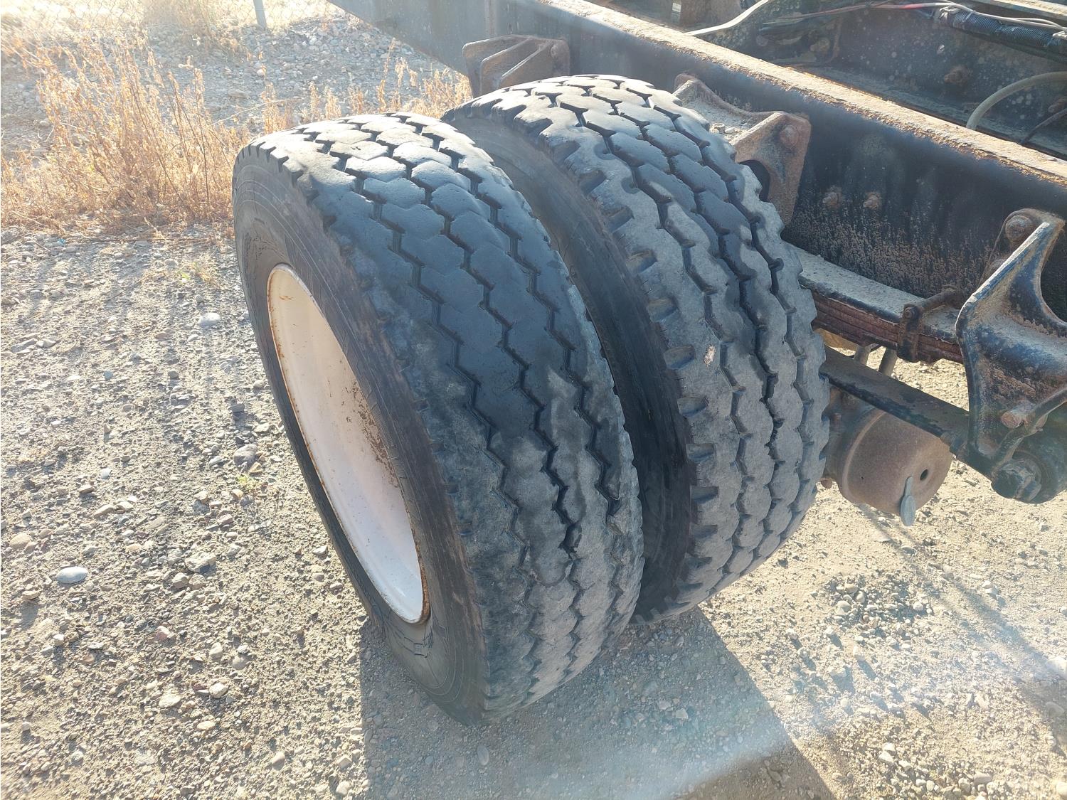MaxForce DT 7.6 L 6 cylinder 225 HP engine, engine heater, Econ 4 speed transmission, A/C, air ride driver seat, spring suspension, 10,000 lb front axle, 17,500 lb rear axles, 253 inch WB, single frame, 268 inches from back of cab to end of frame, 11R22.5 front tires, 275/70R22.5 rear tires