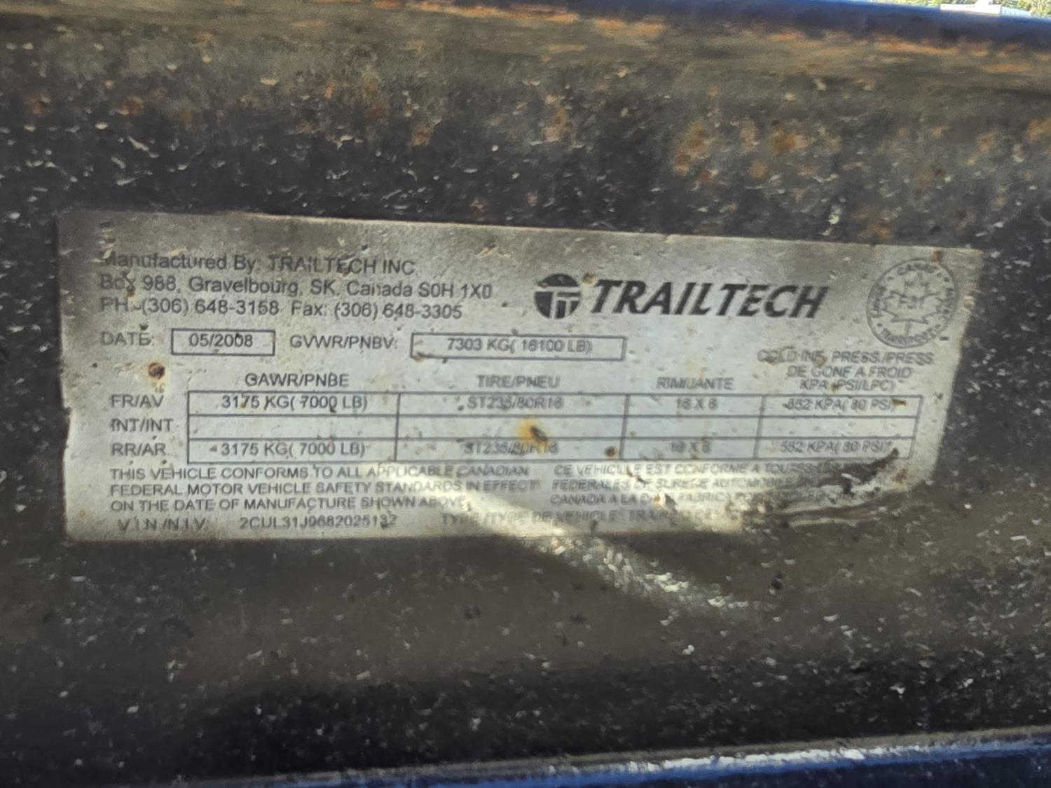 408 2008 Trail Tech 18 Ft T/A Flat Deck Trailer