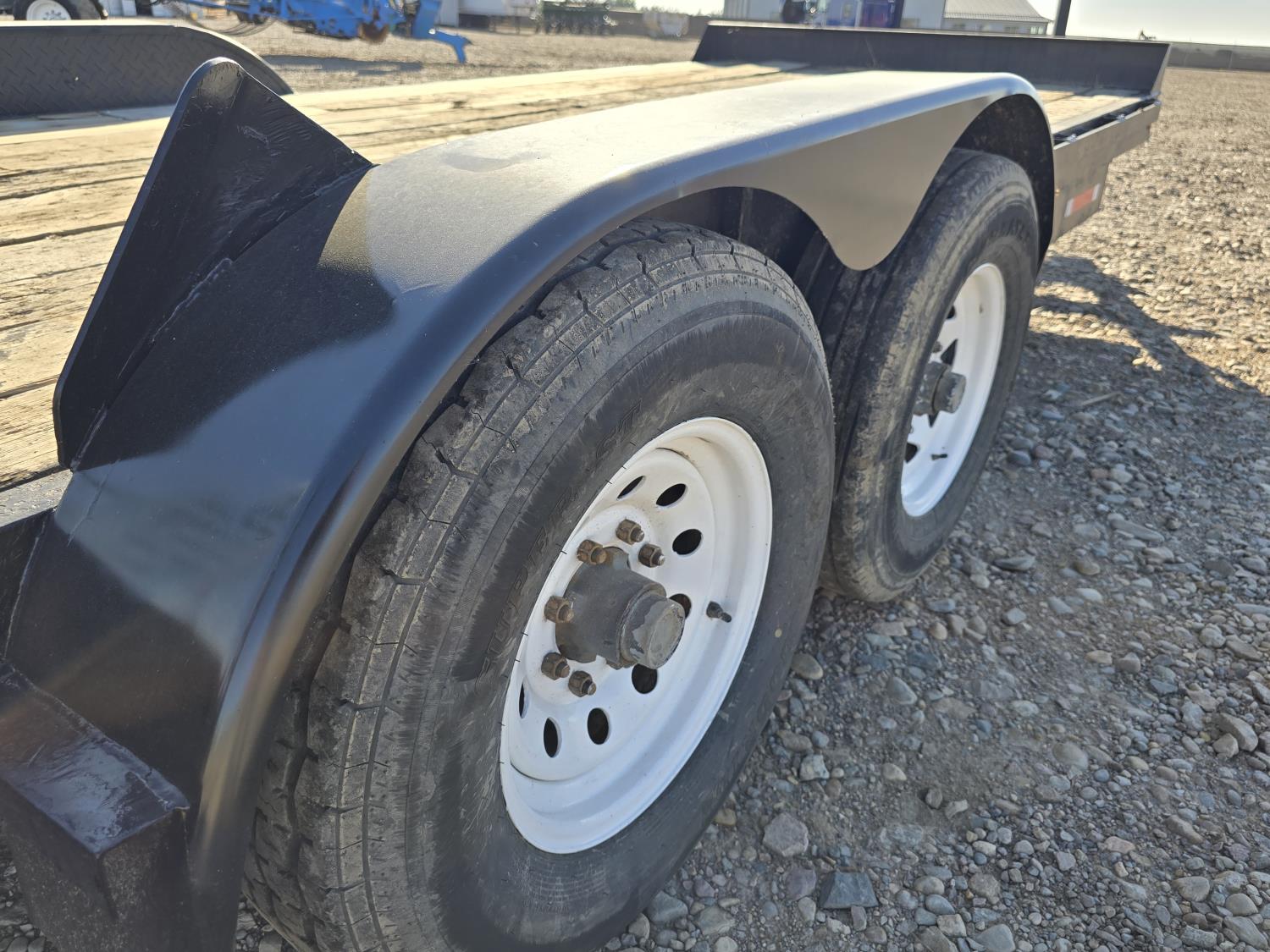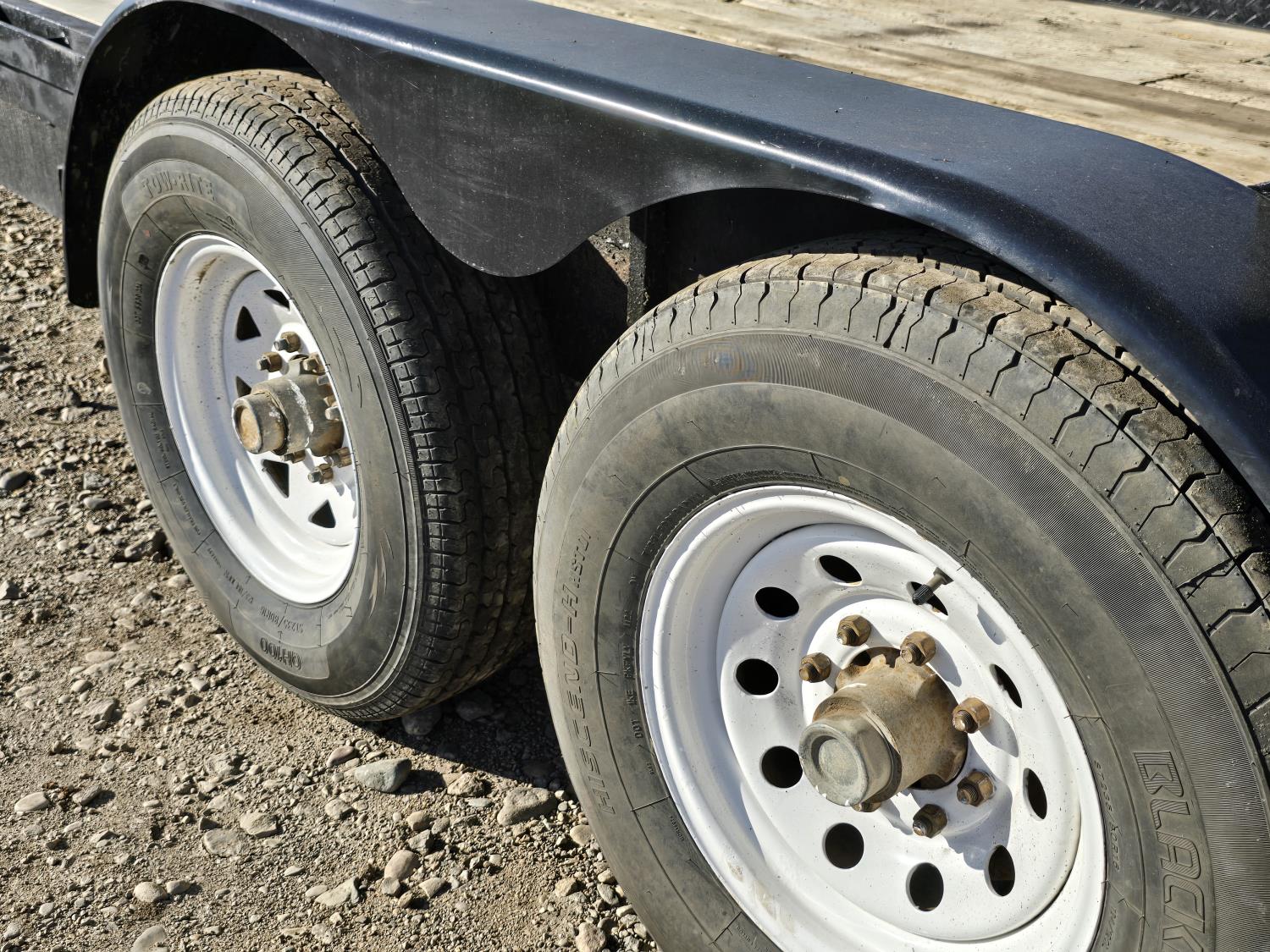 83 inch wide deck, wood deck, stand up ramps, electric brakes, spring suspension, ball hitch, rub rails, stake pockets, 7000 lb axles, 235/80R16 tires