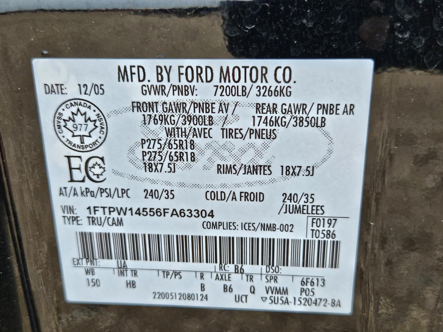 - 1FTPW14556FA63304