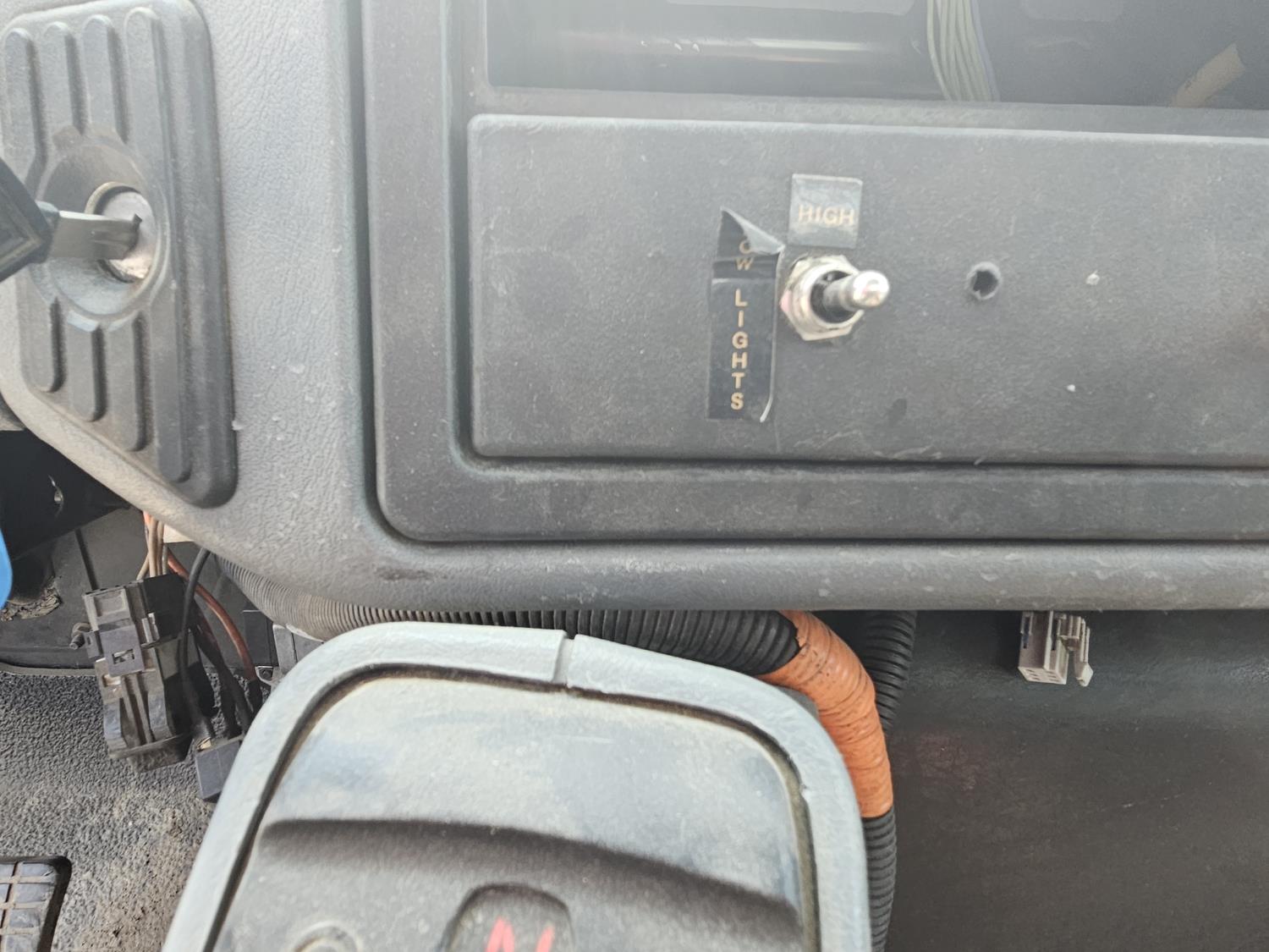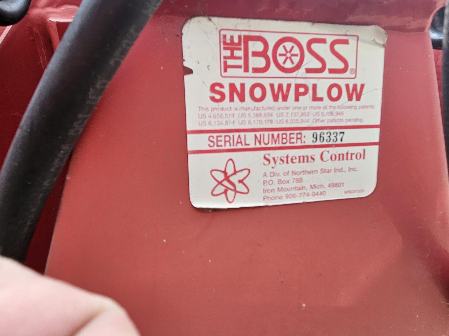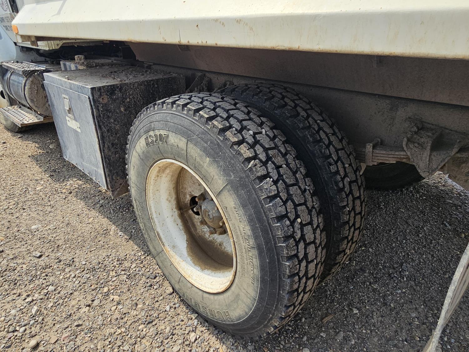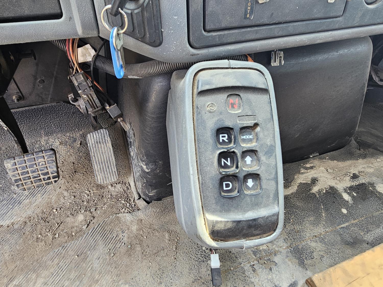 International DT466 7.6 L 6 cylinder diesel engine, automatic transmission, Boss 10ft power V plow, 30x24 steel tool boxes, 10 ft box, hoist, beacons, roll tarp, spring suspension, 12,000 lb front axle, 23,000 lb rear axles, 152 inch WB, 11R22.5 front tires, 11R22.5 rear tires
