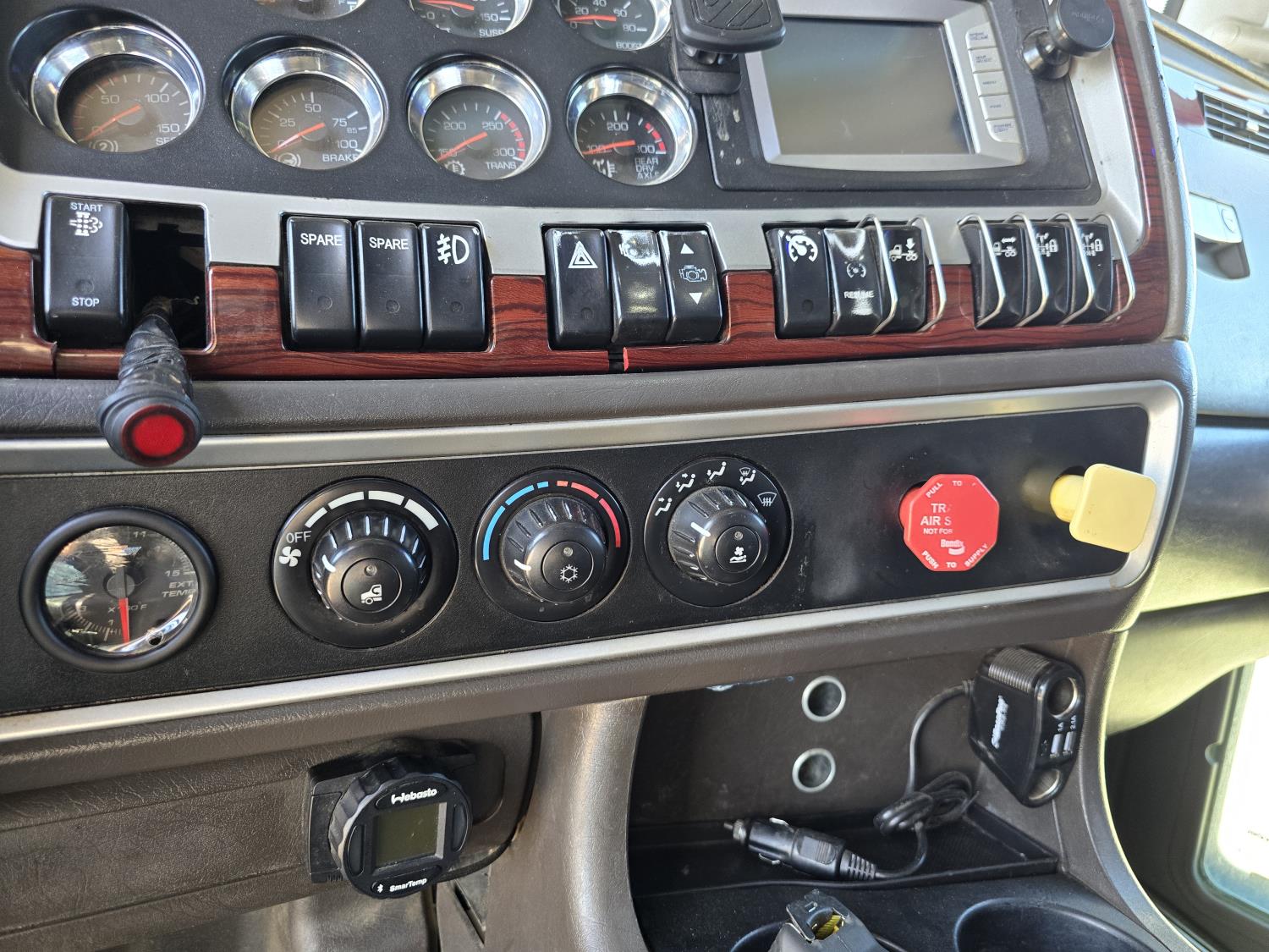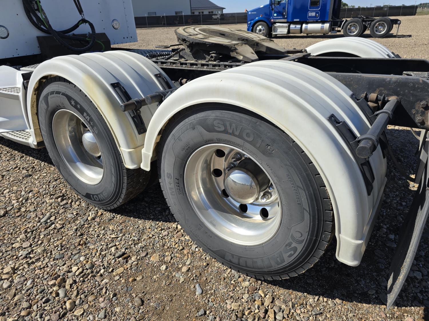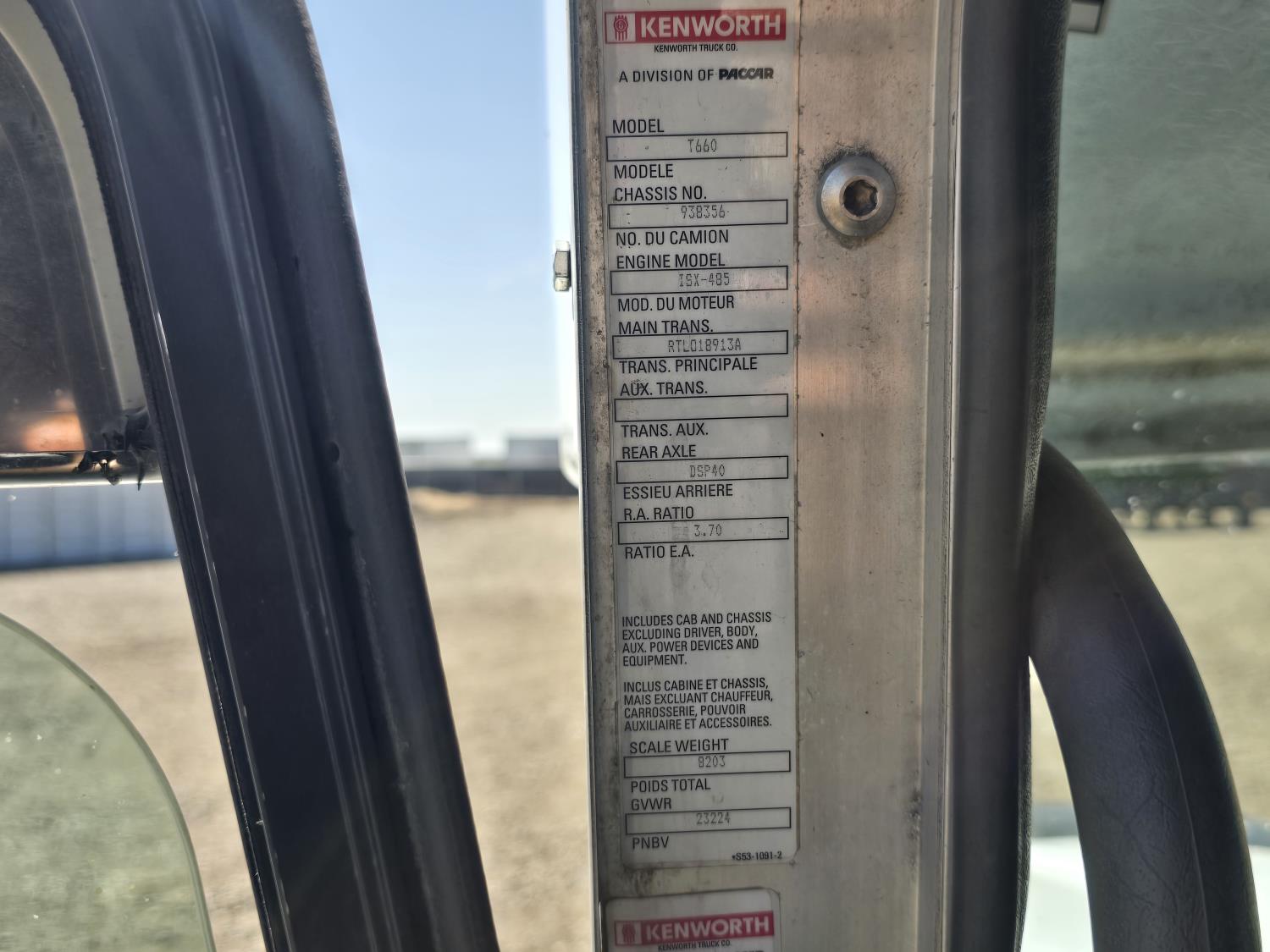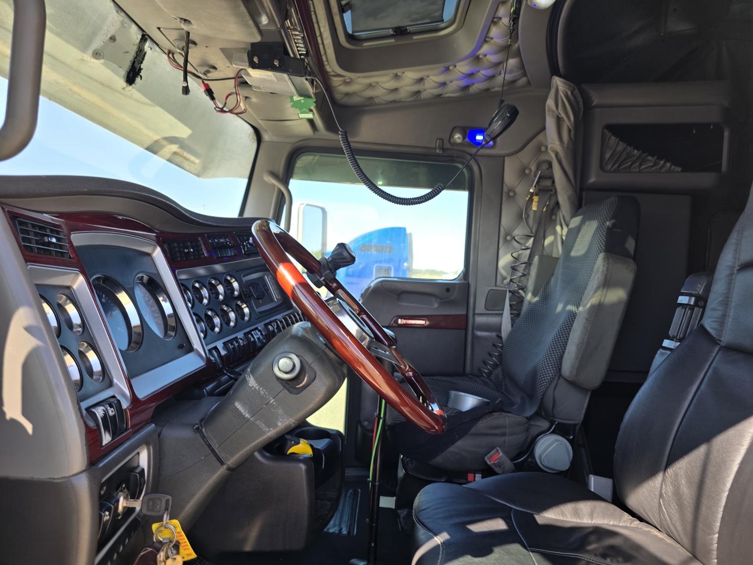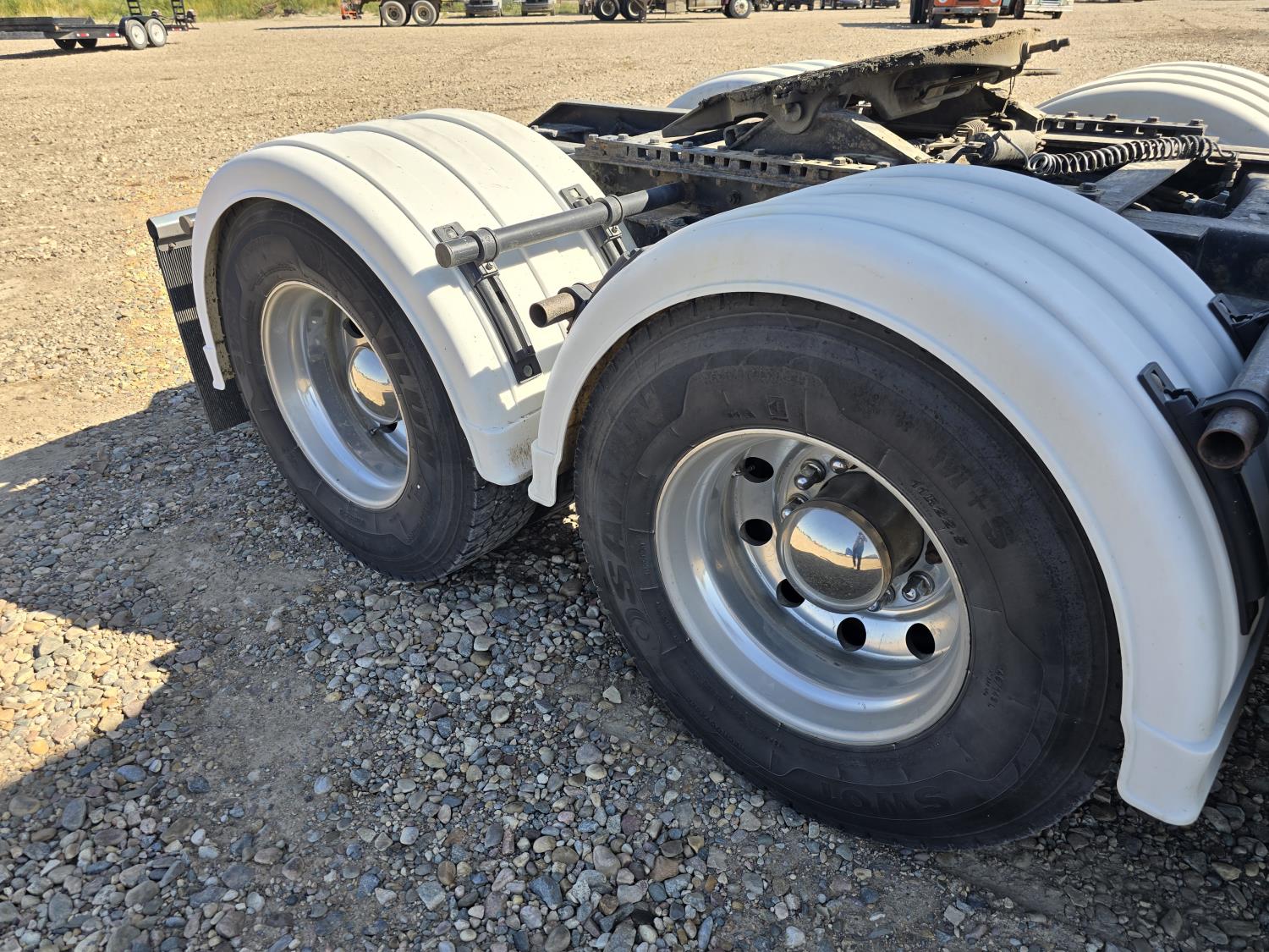Cummins ISX485 15 L I6 485 HP engine, engine brake, engine block heater, Eaton Fuller 18 speed manual transmission, webasto cab heater, mid rise 62 inch sleeper, fridge, bunk beds, A/C, leather interior, air ride seats, CB radio, 2-way radio, stereo, moose bumper, air ride suspension, 13,000 lb front axle, 40,000 lb rear axles, 3 way diff locks, 3.70 ratio, 234 inch WB, all aluminum wheels, 11R22.5 tires