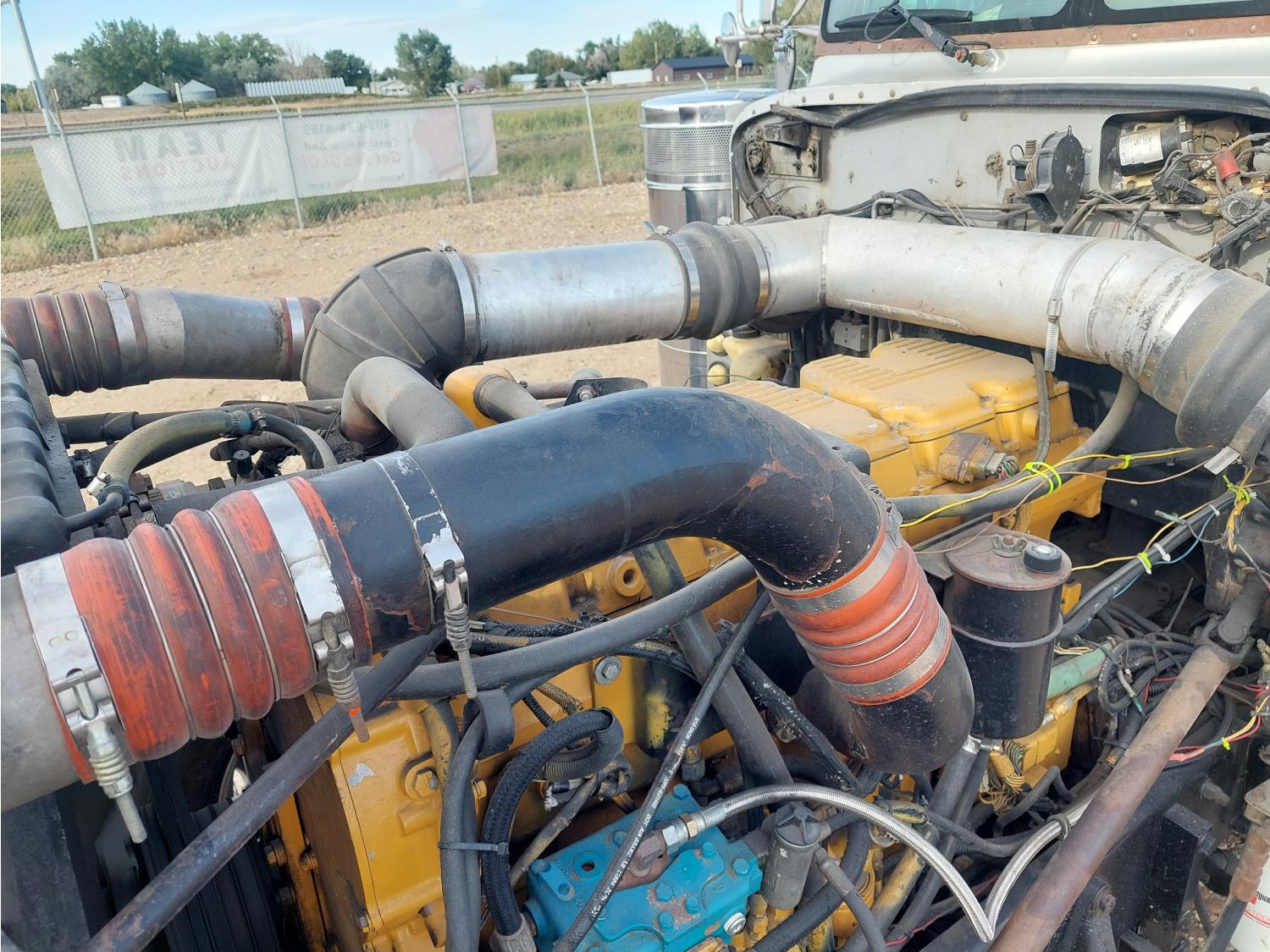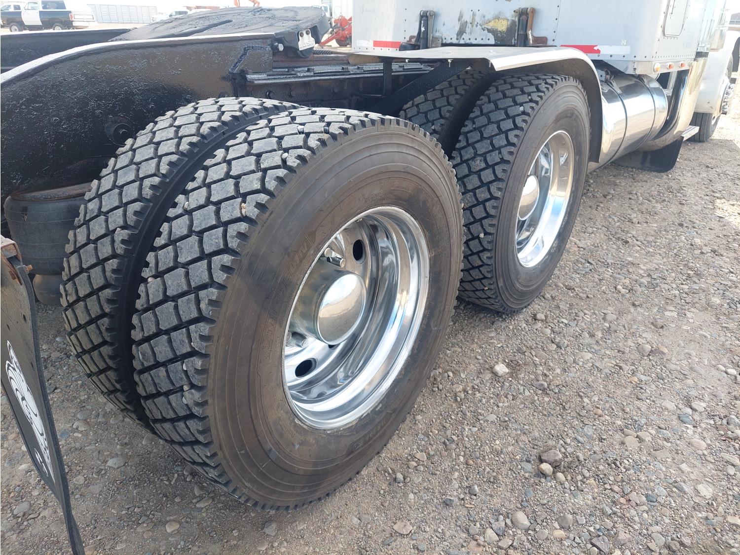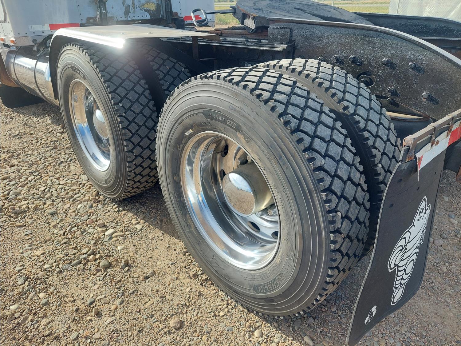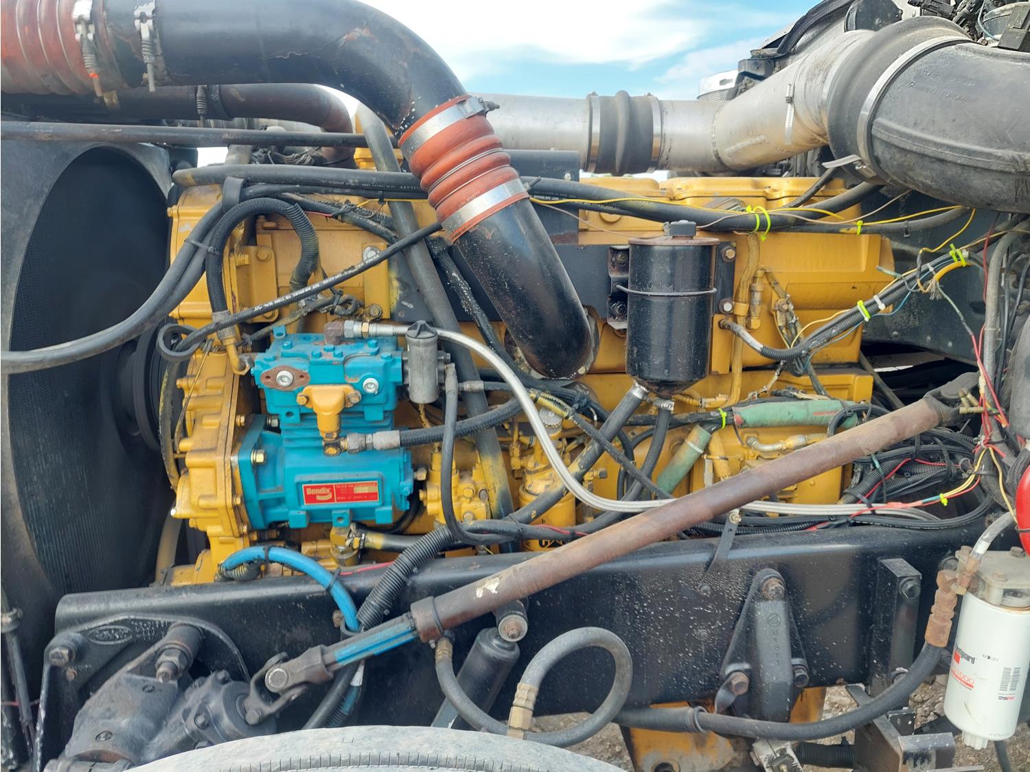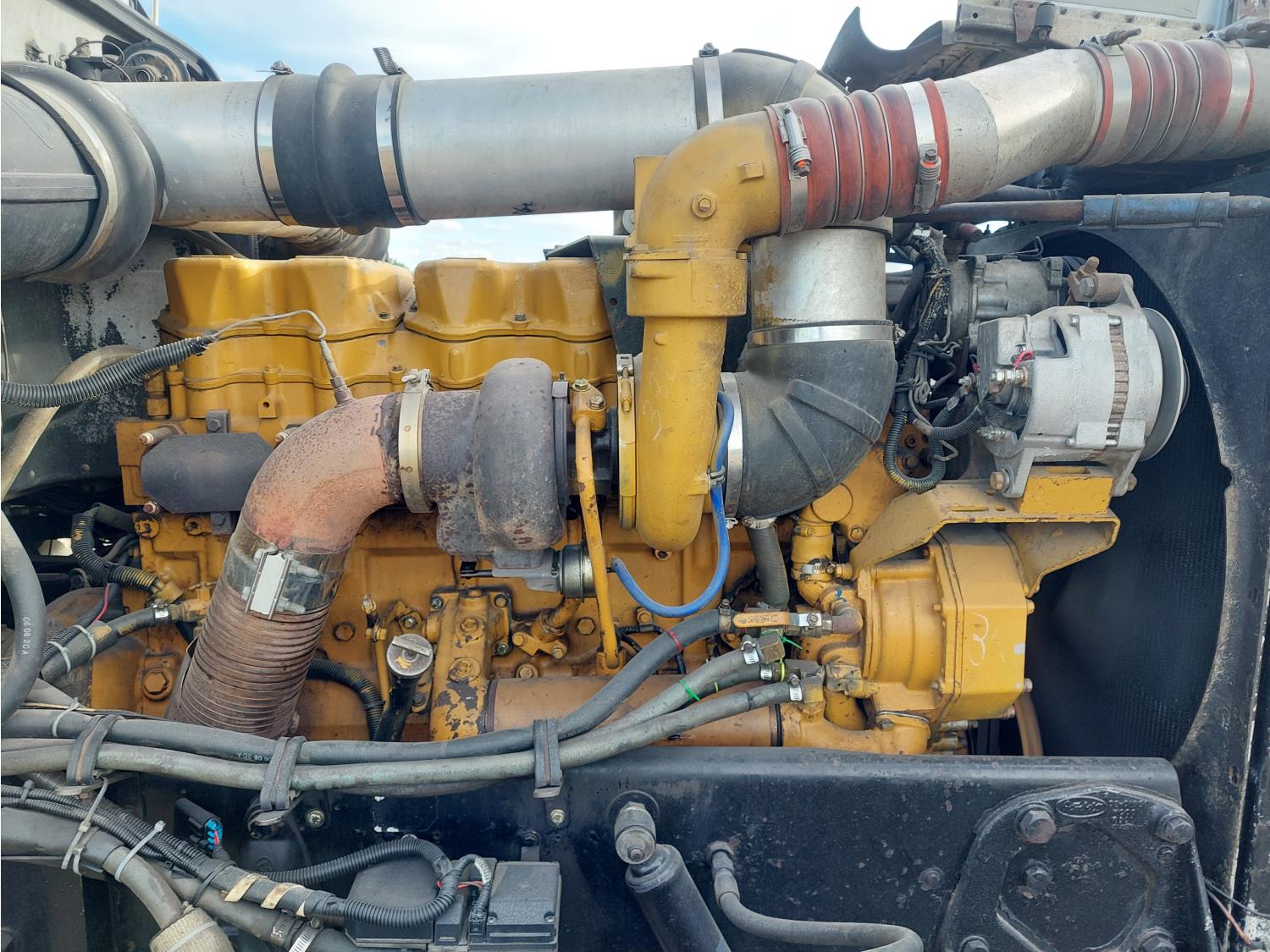 Caterpillar 3406E 14.6 L 6 cylinder engine, Webasto engine heater, engine brake, Eaton Fuller 18 speed manual transmission, flat top 60 inch sleeper, air ride suspension, 12,000 lb front axle, 38,000 lb rear axles, diff lock, 245 inch WB, all aluminum wheels, 11R24.5 tires