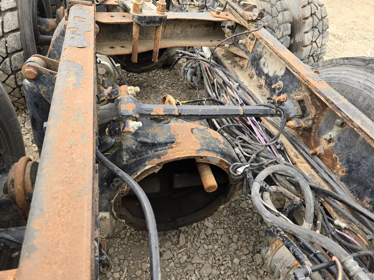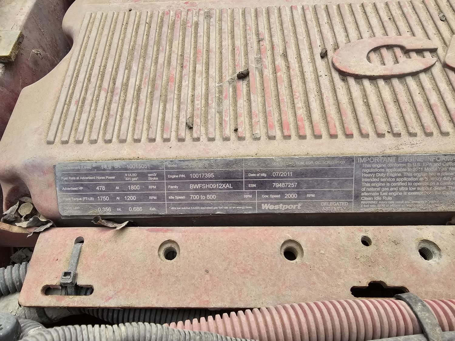 Cummins engine, air ride suspension, 13,200 lb front axle, 60,000 lb rear axles