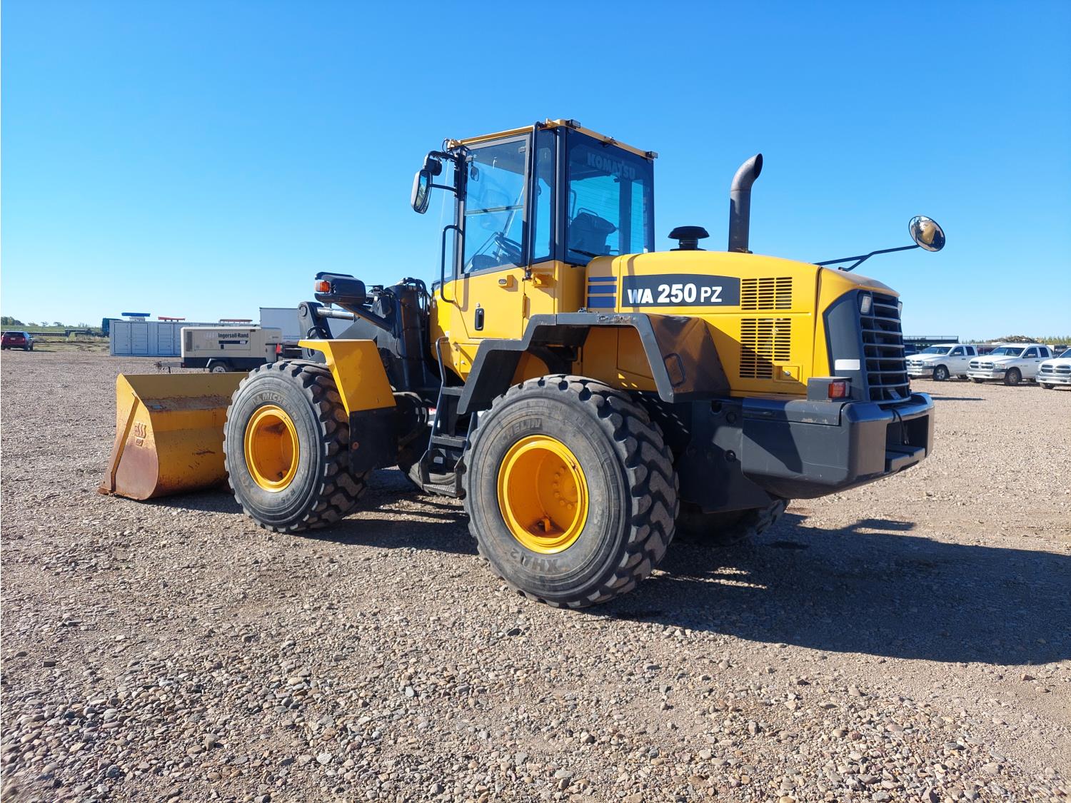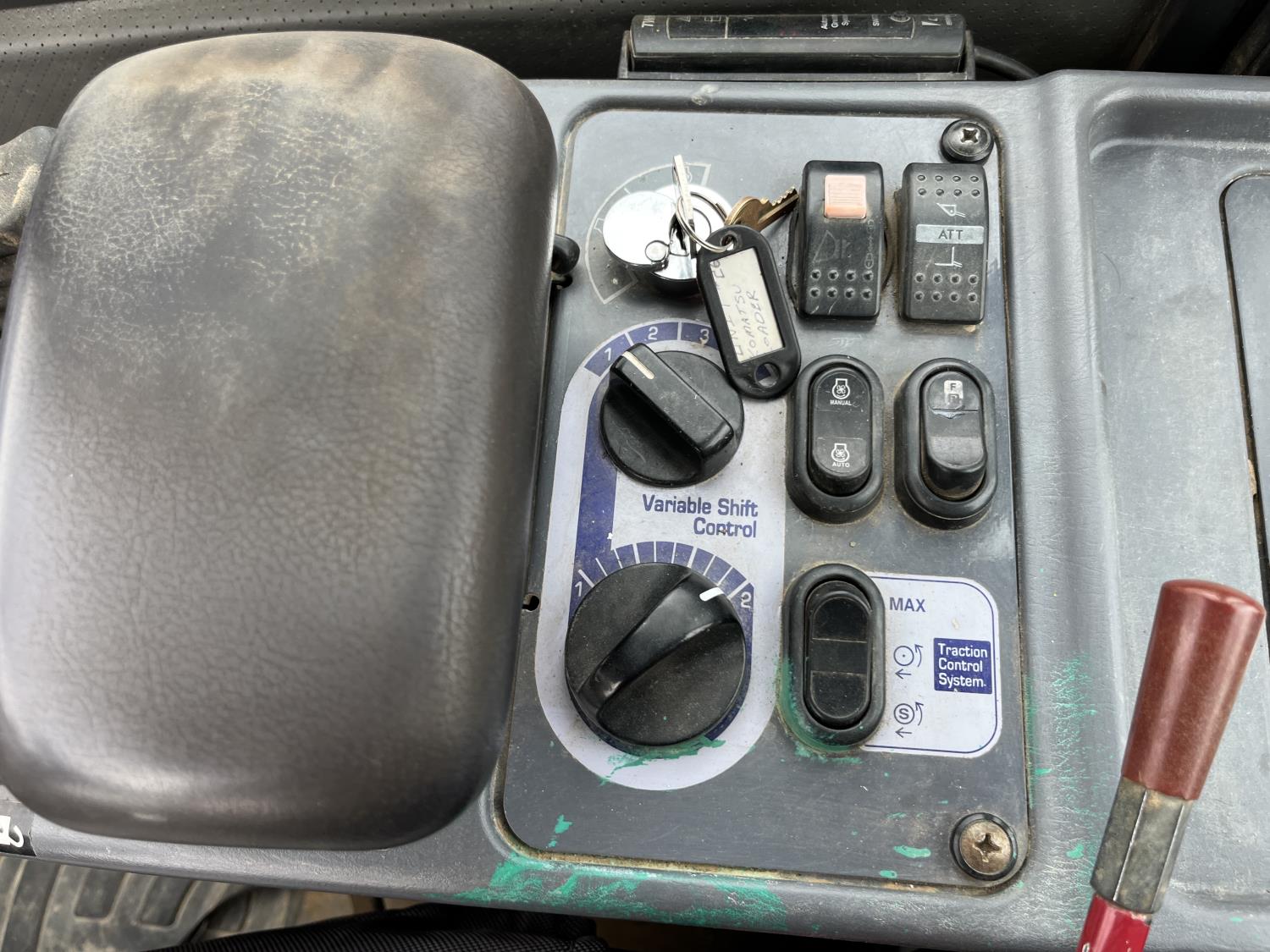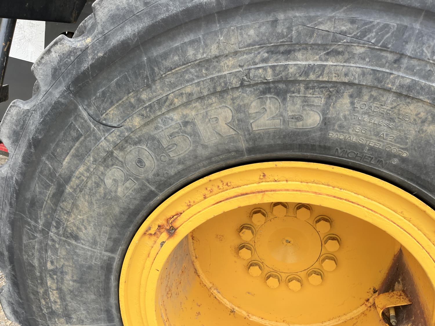 Enclosed cab, A/C, auto lube, bucket, hydraulic Q/C coupler, auxiliary hydraulics , 20.5R25 tires