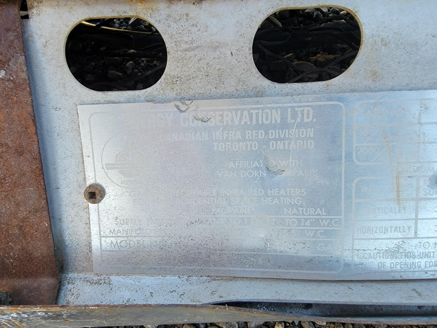 5594 (2) Gas Infrared Heaters (1) Cata-Dyne Heater