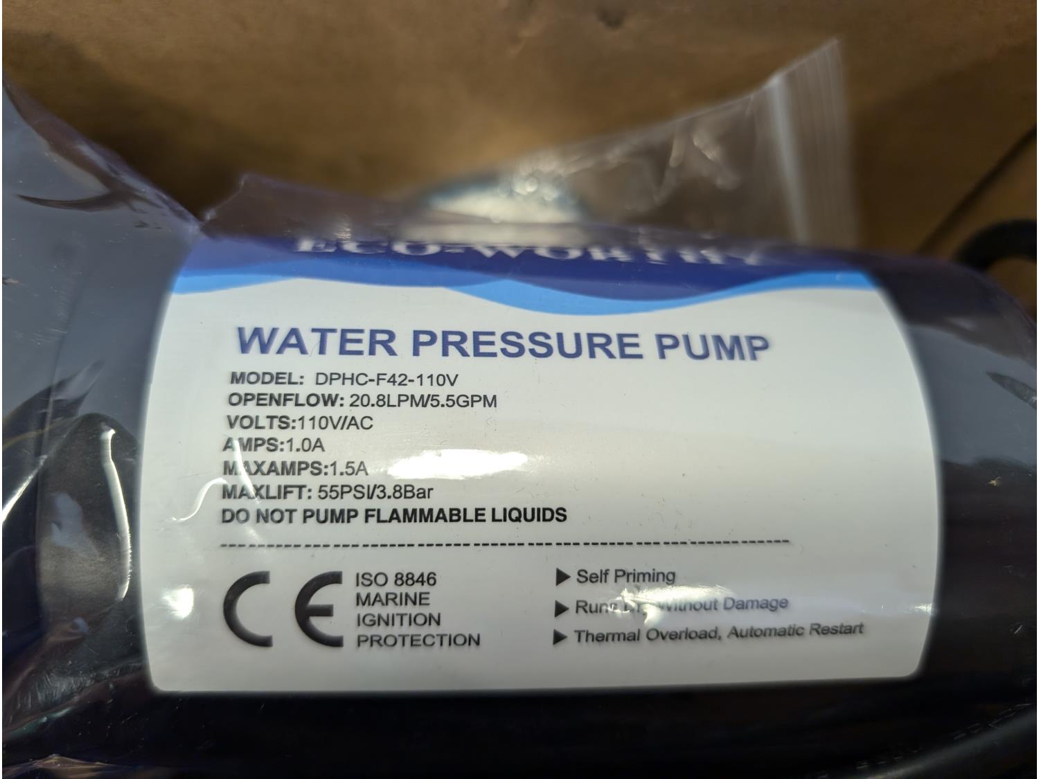 5406 Eco-Worthy RV/Marine Water Pressure Pump (Unused)