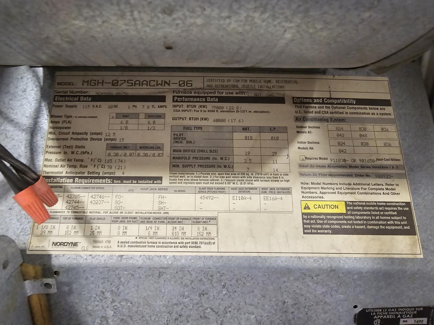 5321 Intertherm MGH-075AACWN-06 Natural Gas Furnace