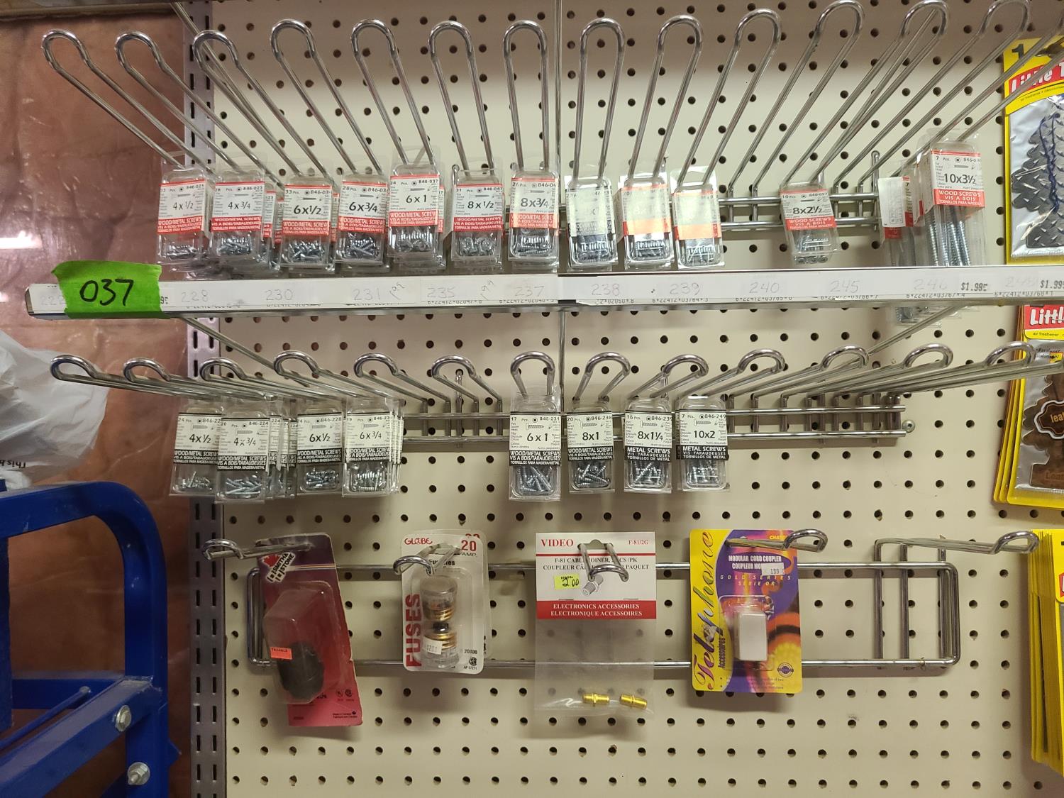 charcoal briquettes, ajax bleach, painters tape, road maps, little tree air freshners, screws, automotive bulbs, 10w tube bulbs