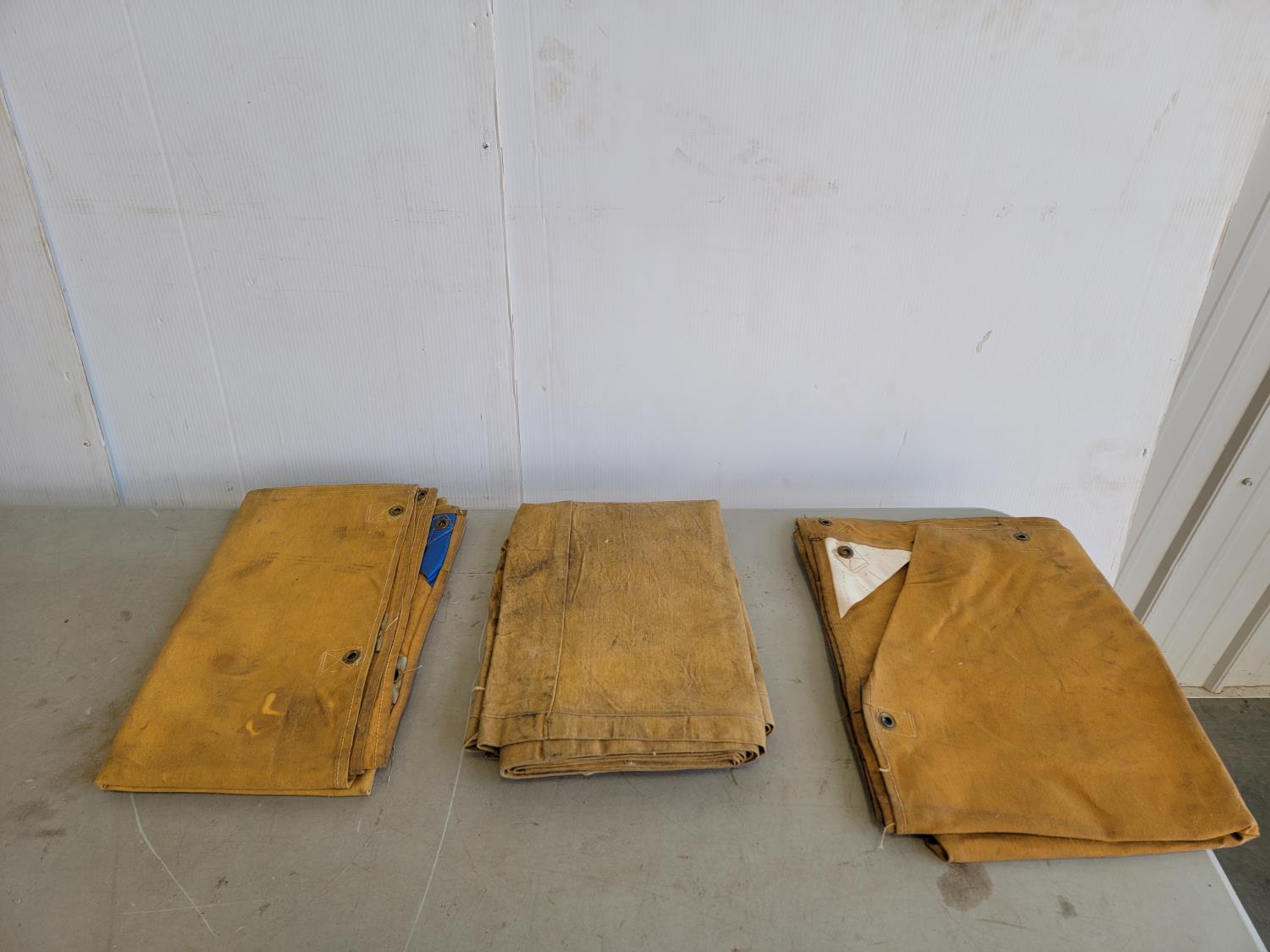 Canvas tarps, poly tarps, nails, tape measures, Ridgid pipe wrench, knives, hatchet, bungee straps, Concrete drill and bits, Black & Decker 1-1/2 inch die grinder
