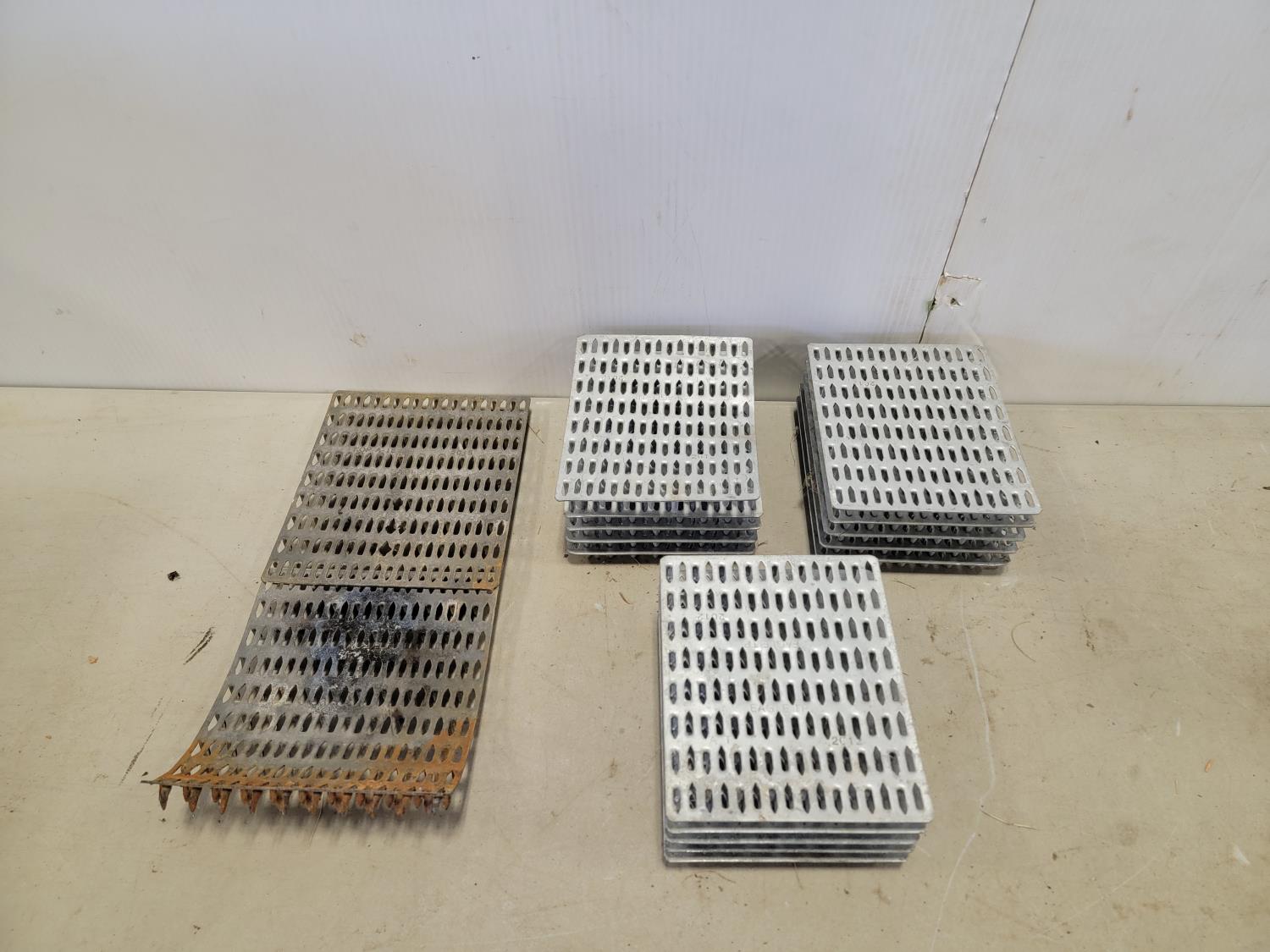 15 inch blower fan (needs plug), galvanized truss connector plates, radial tire chains, fire extinguisher mounts, short slings, assorted v-belts