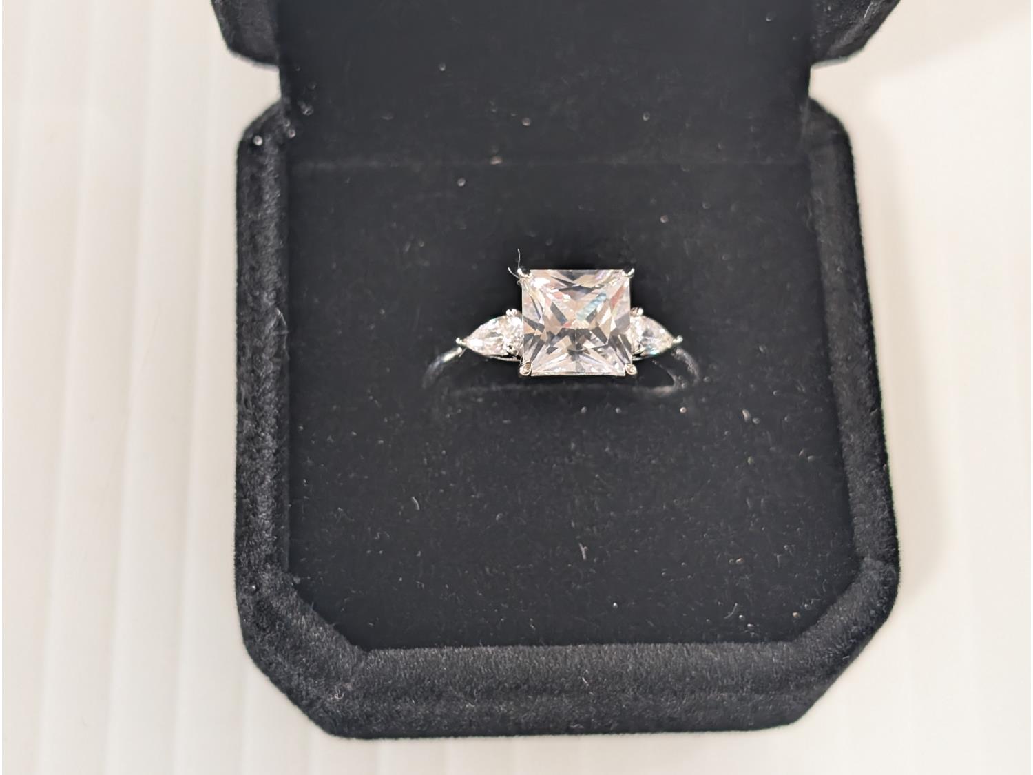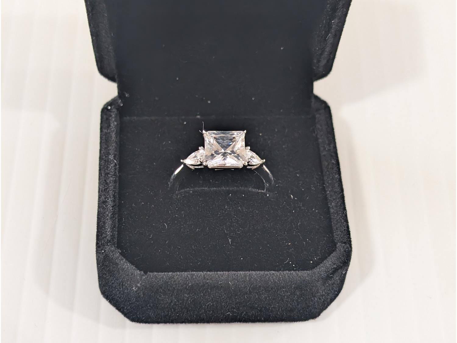 5018 Smartlife 925S 3.0 Carat Lab-Created White Sapphire Ring with Pear Cut Sidestones - Size 8 (Unused)