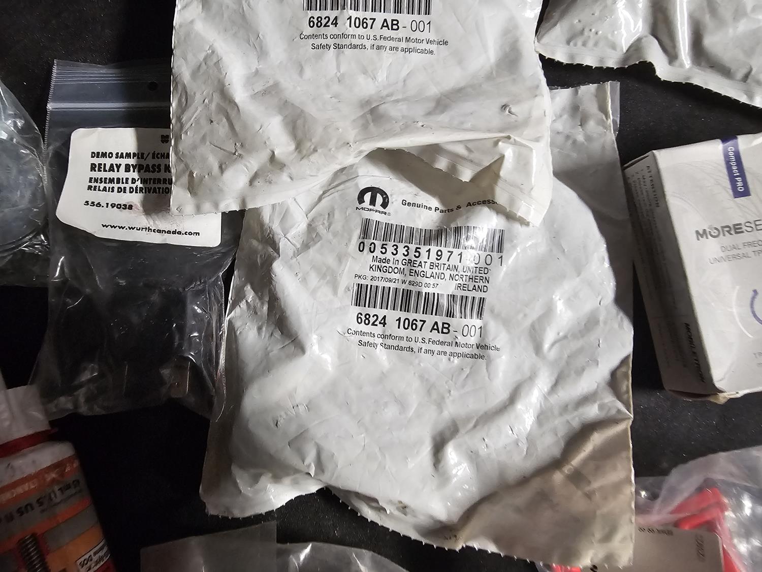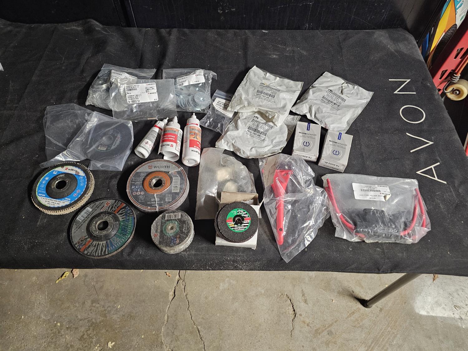 Discs, pipe sealant, threadlock, glue, 200 fender washers, sensors etc.