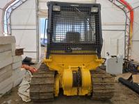 Enclosed cab, 4 cylinder diesel engine, positive air shutoff, 3 speed hydro transmission, cab screens, 9 Ft 6 inch 6 way angle dozer, winch, 24 inch track pads, single grousers