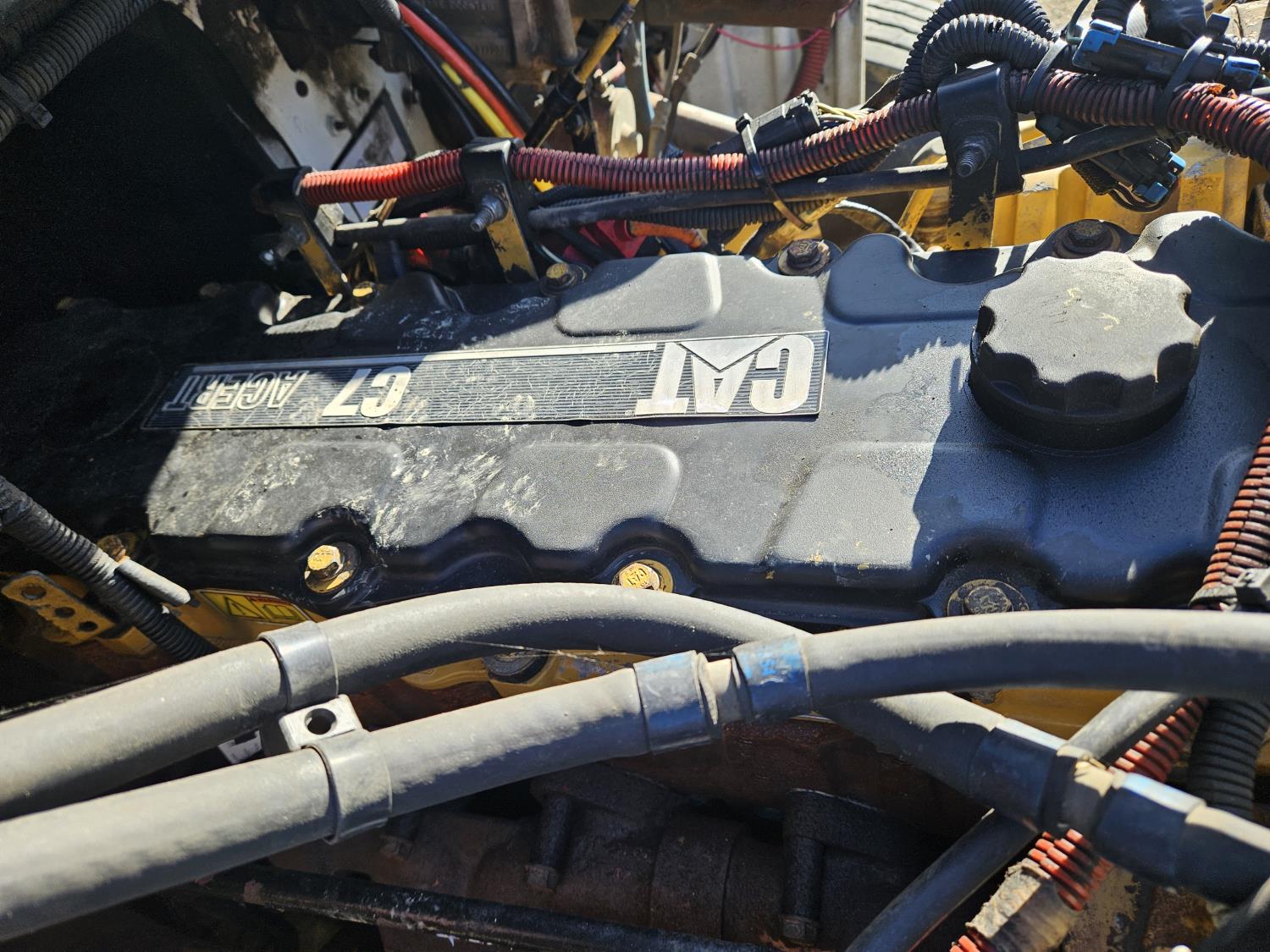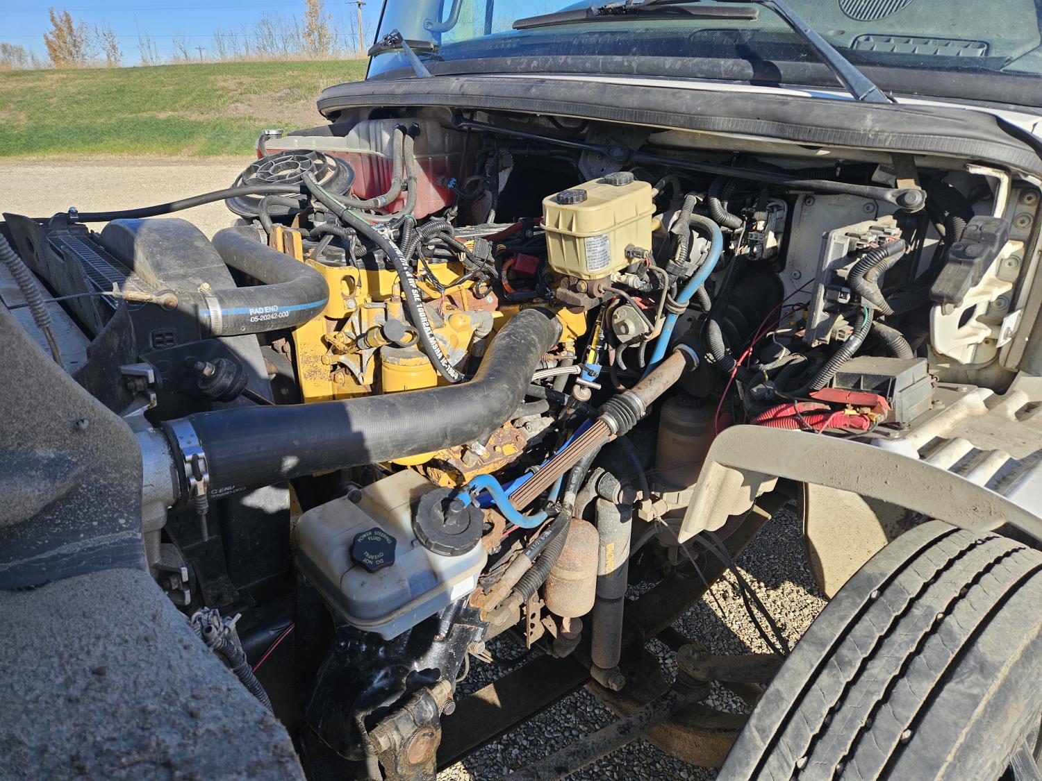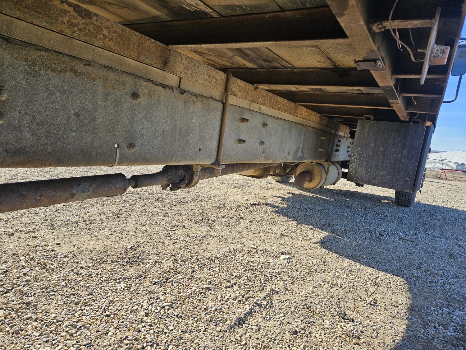 Caterpillar C7 7.2 L 6 cylinder diesel engine, Wabasco diesel engine heater, automatic transmission, A/C, radio, steel headache rack, steel tool boxes, 94 inch x 18 ft deck, air ride suspension, 10,000 lb rear axles, 10R22.5 tires