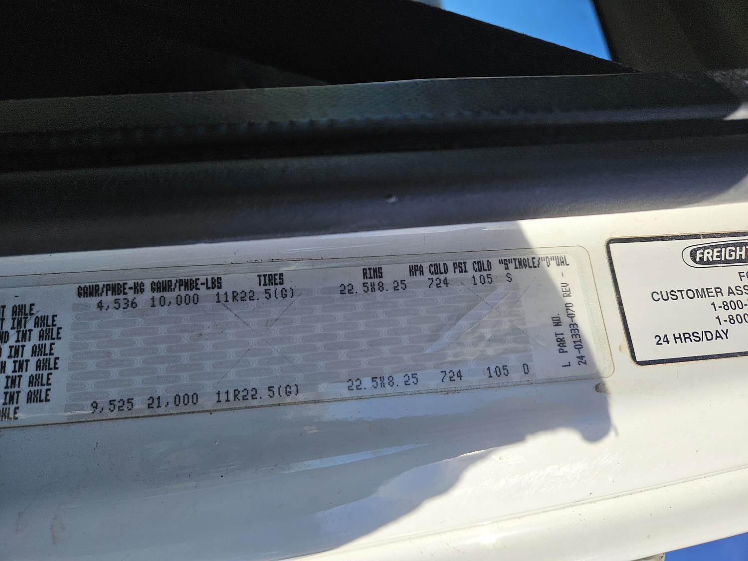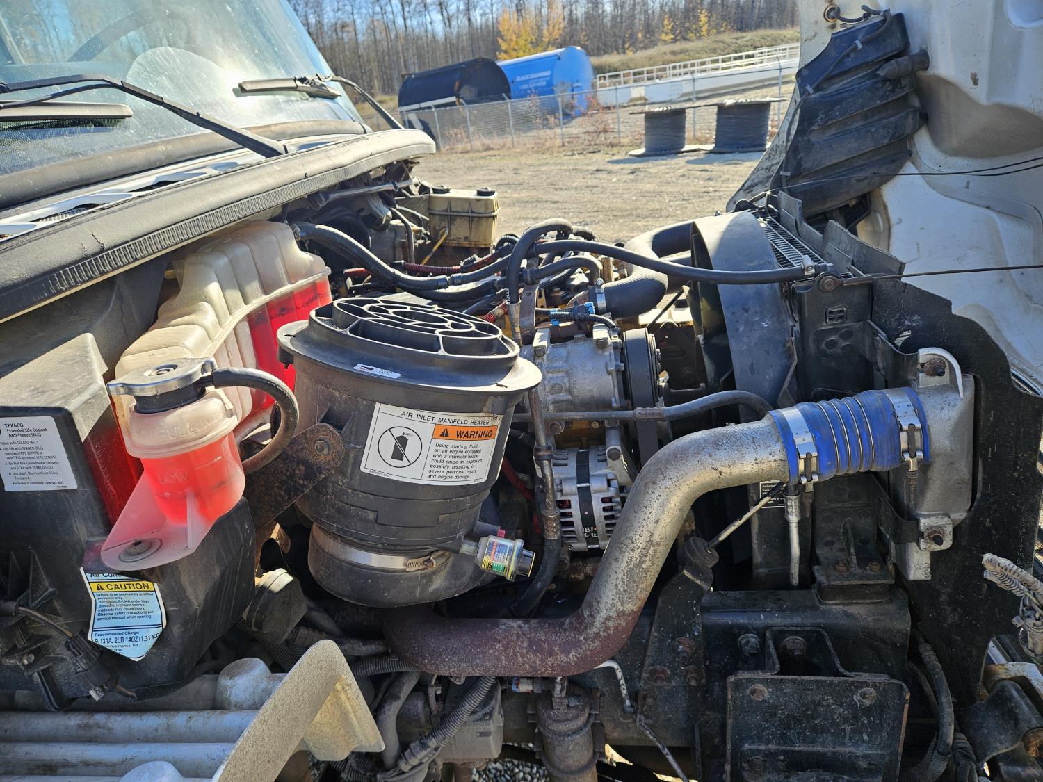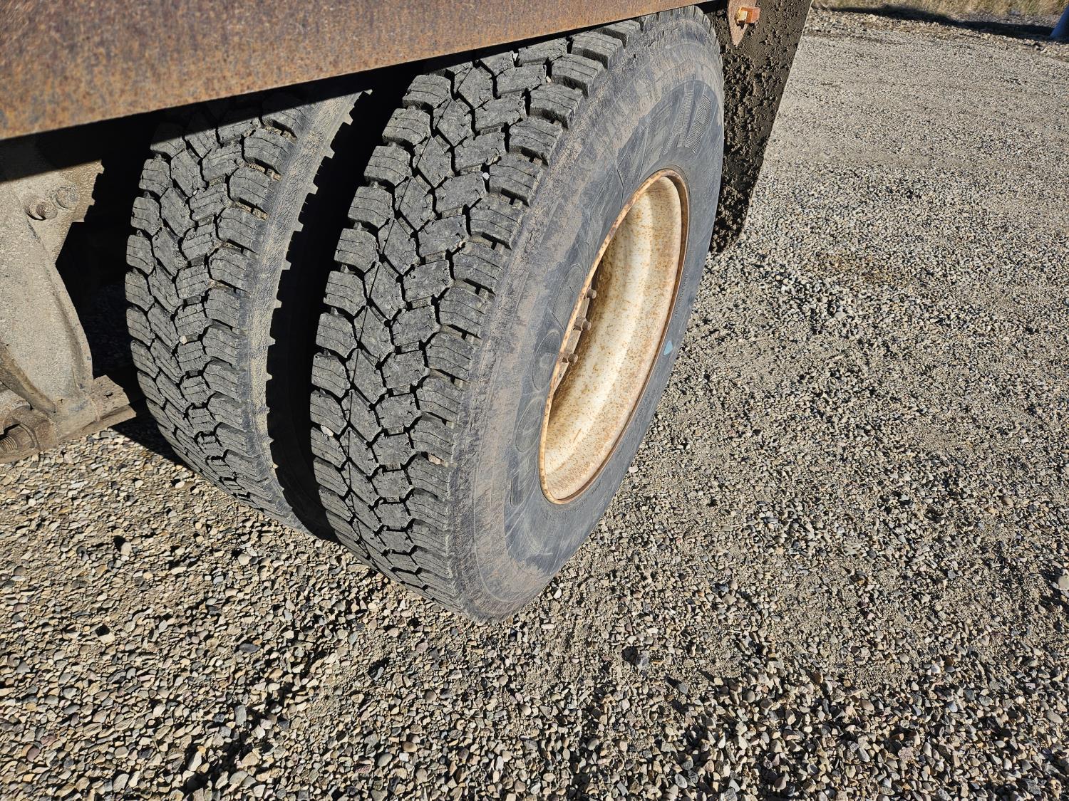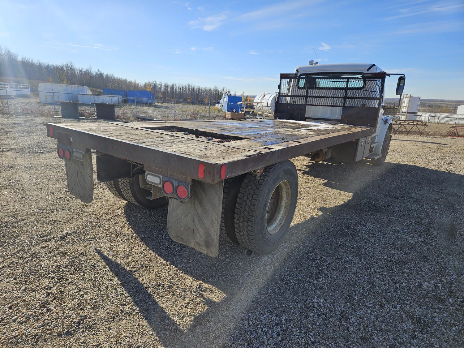 Caterpillar C7 7.2 L 6 cylinder diesel engine, Wabasco diesel engine heater, automatic transmission, A/C, radio, steel headache rack, steel tool boxes, 94 inch x 18 ft deck, air ride suspension, 10,000 lb rear axles, 10R22.5 tires