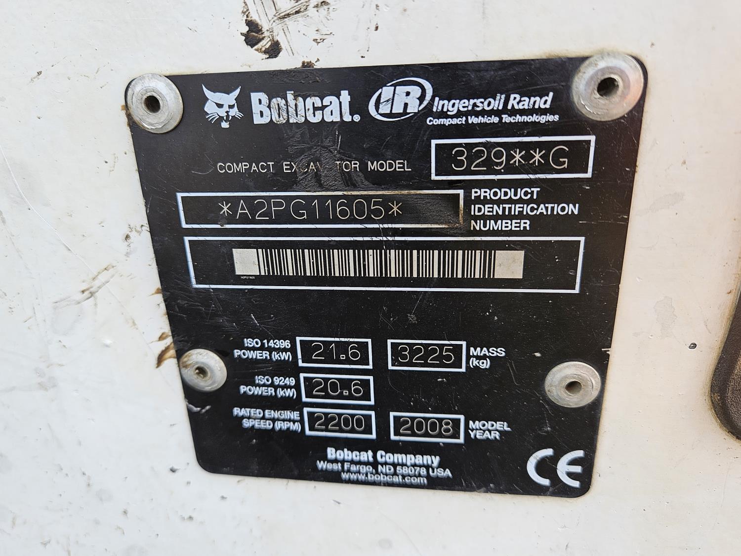 178 2008 Bobcat 329 3.29 Ton Mini Excavator