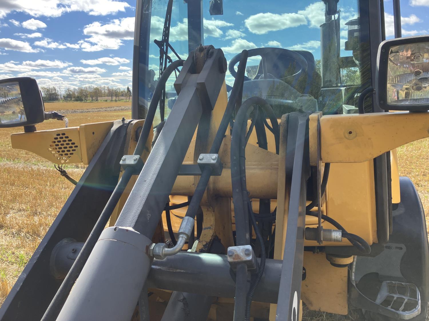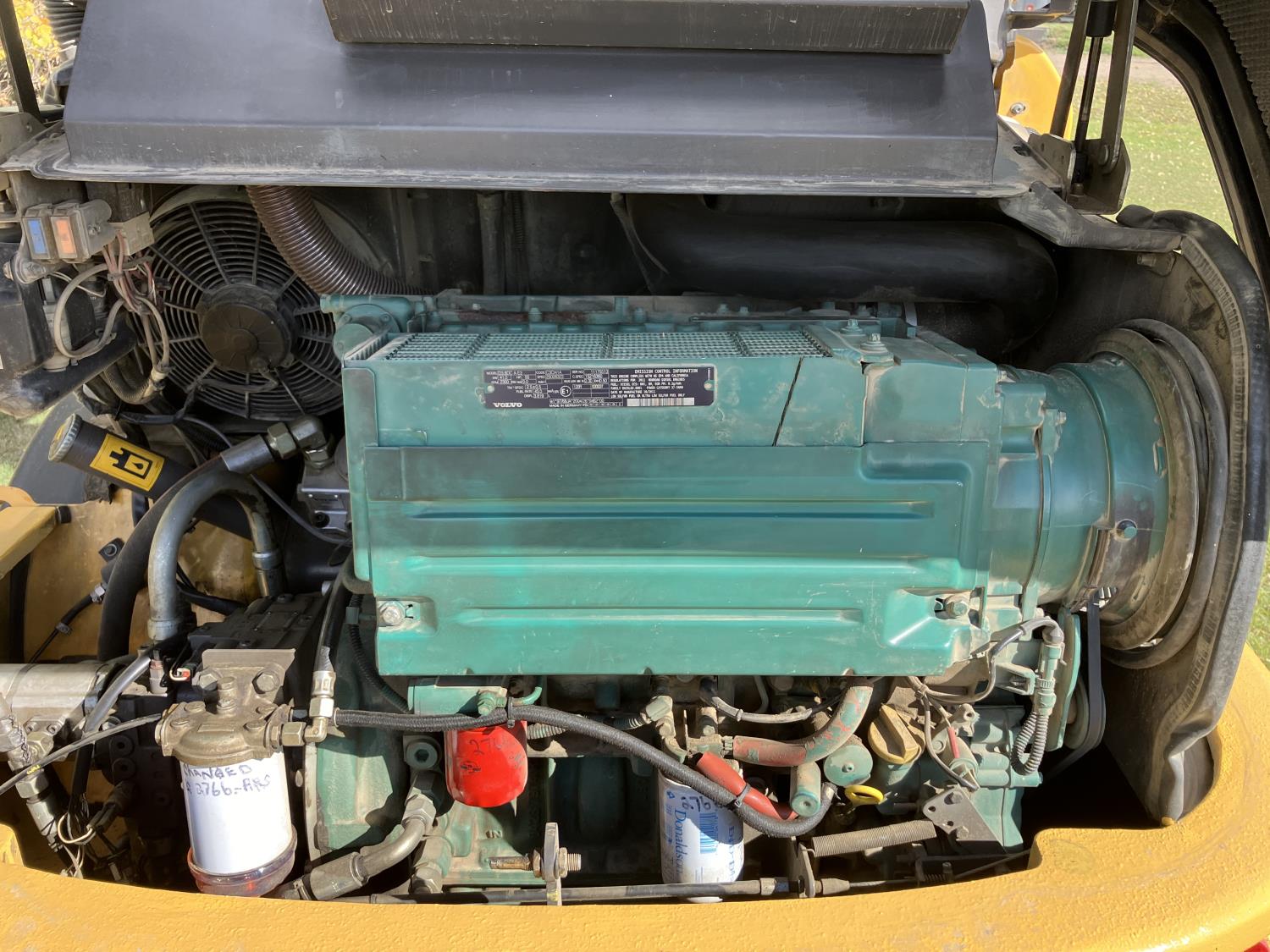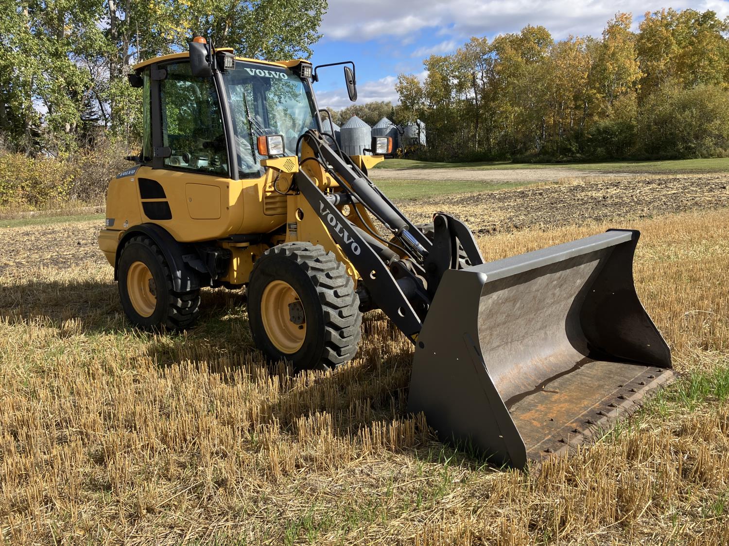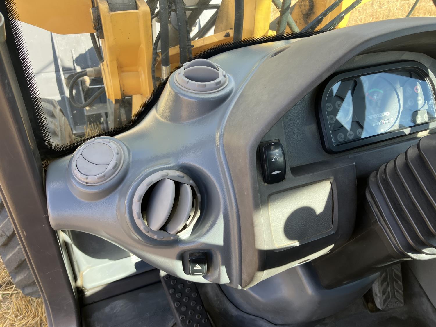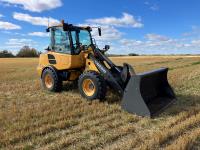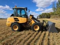 Enclosed cab, A/C, 2 speed hydro transmission, Volvo D3,6DC,AE3 air cooled diesel engine, 48 inch pallet forks, WBM 70" bucket with hydraulic steer steer Q/A, diesel engine heater, operators manual, 12.5/80-18 tires