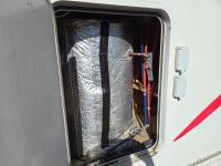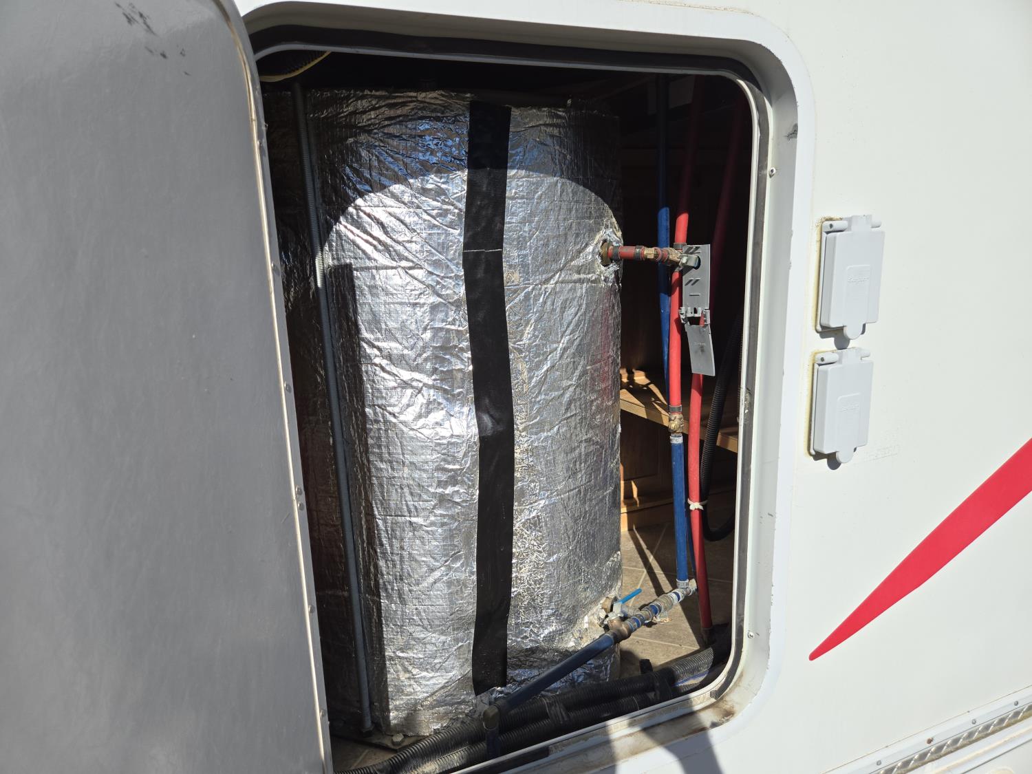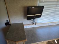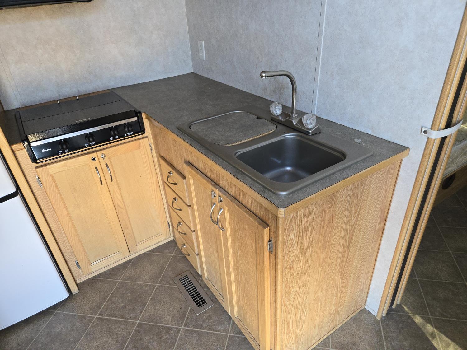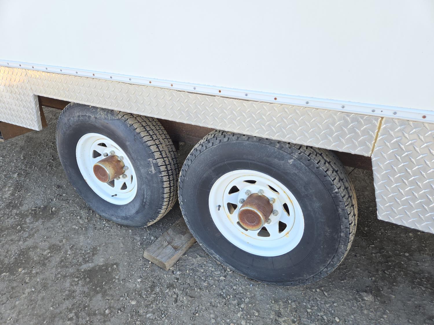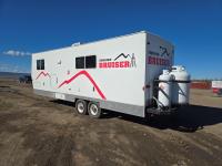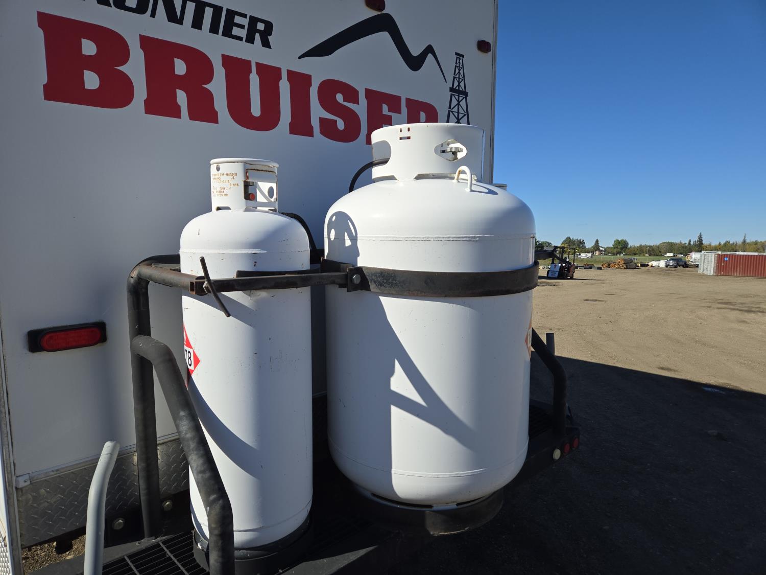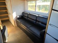 Office area with desk, kitchen with stove top, fridge and microwave, full bathroom with shower, A/C, couch, front bedroom, (2) 108 L & (1) 450 L propane tanks torsion suspension, 7000 lb axles, 235/85R16 tires