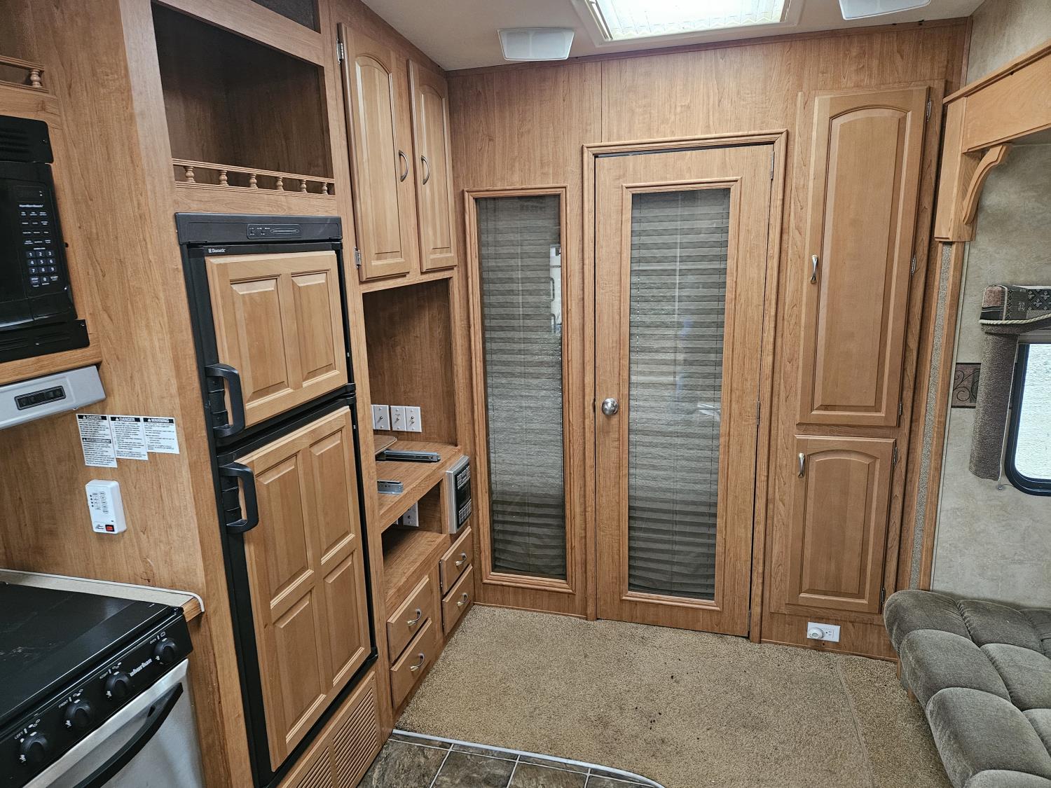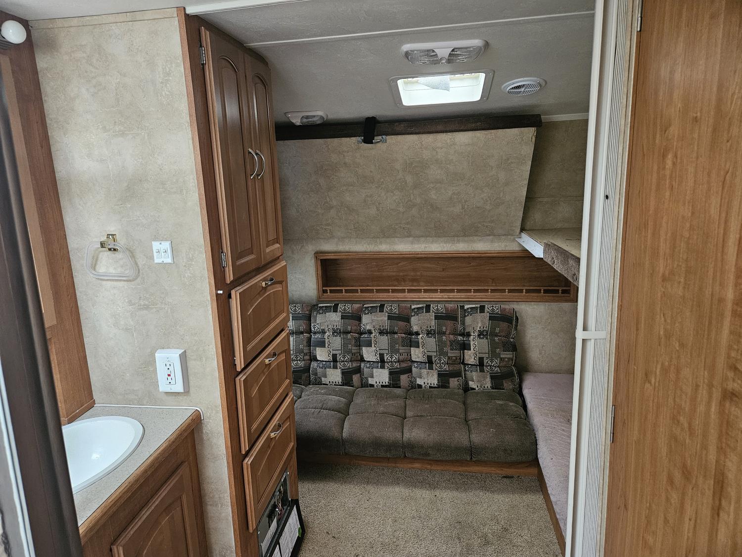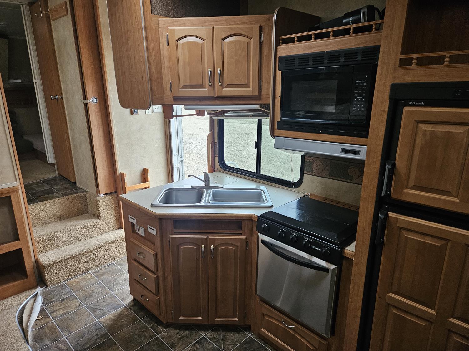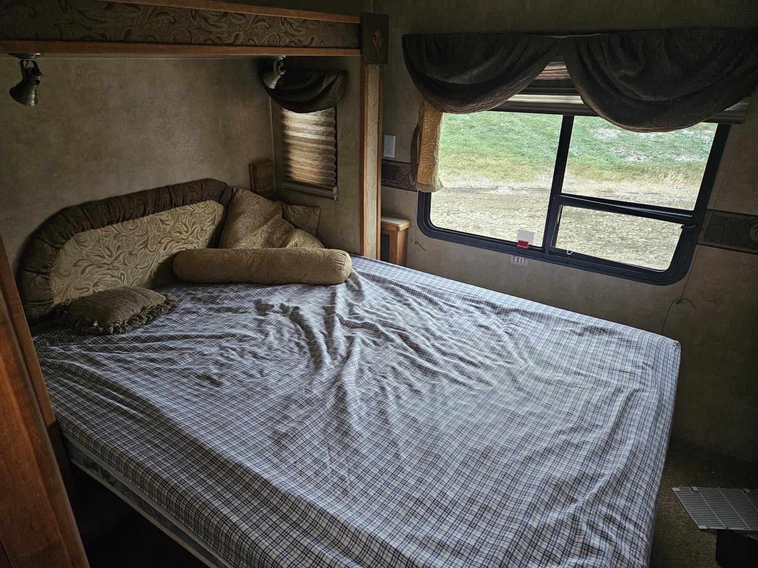 stove, fridge, microwave, full bath, master bedroom, bunk beds, A/C, outdoor shower, 2 slides, power awning, power levelling jacks, spring suspension, 225/75R15 tires
