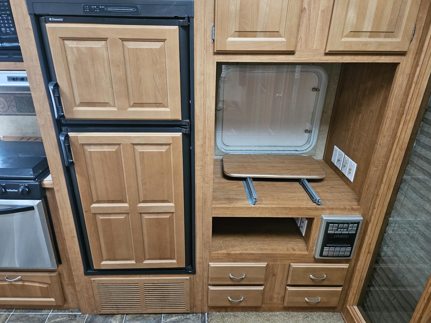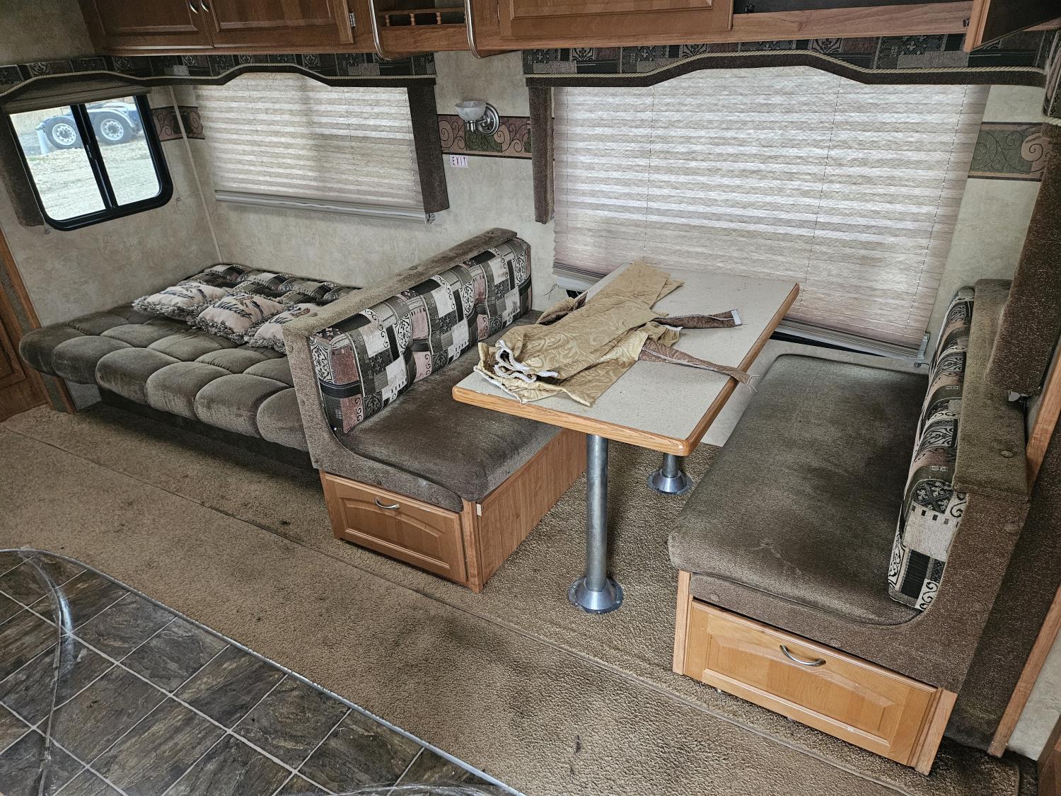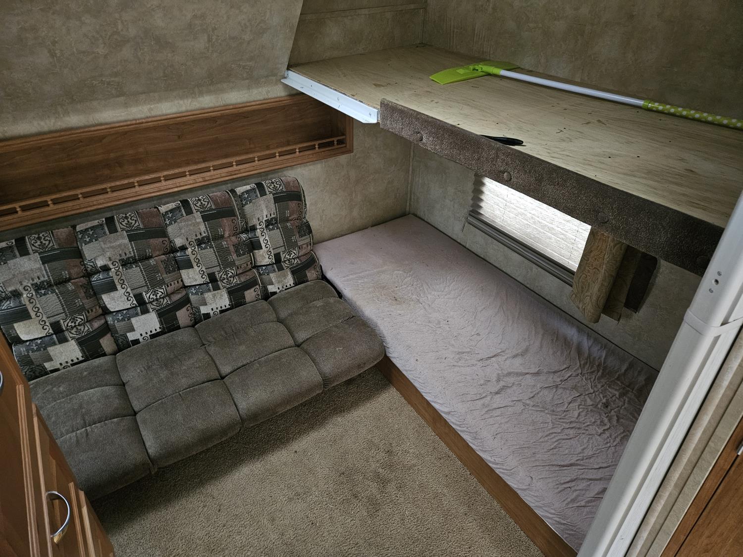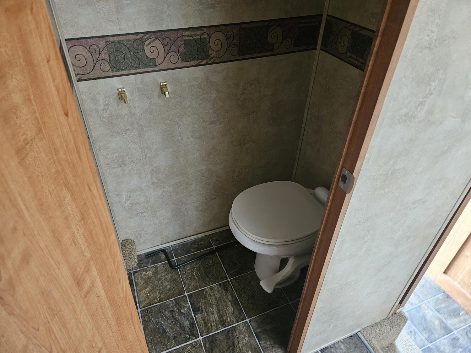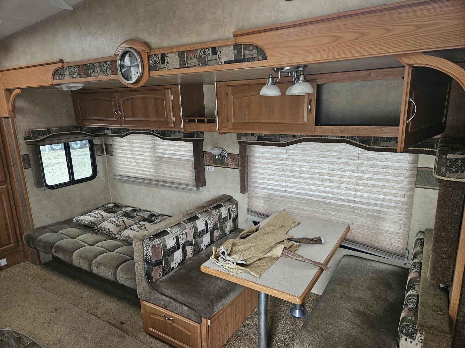 stove, fridge, microwave, full bath, master bedroom, bunk beds, A/C, outdoor shower, 2 slides, power awning, power levelling jacks, spring suspension, 225/75R15 tires