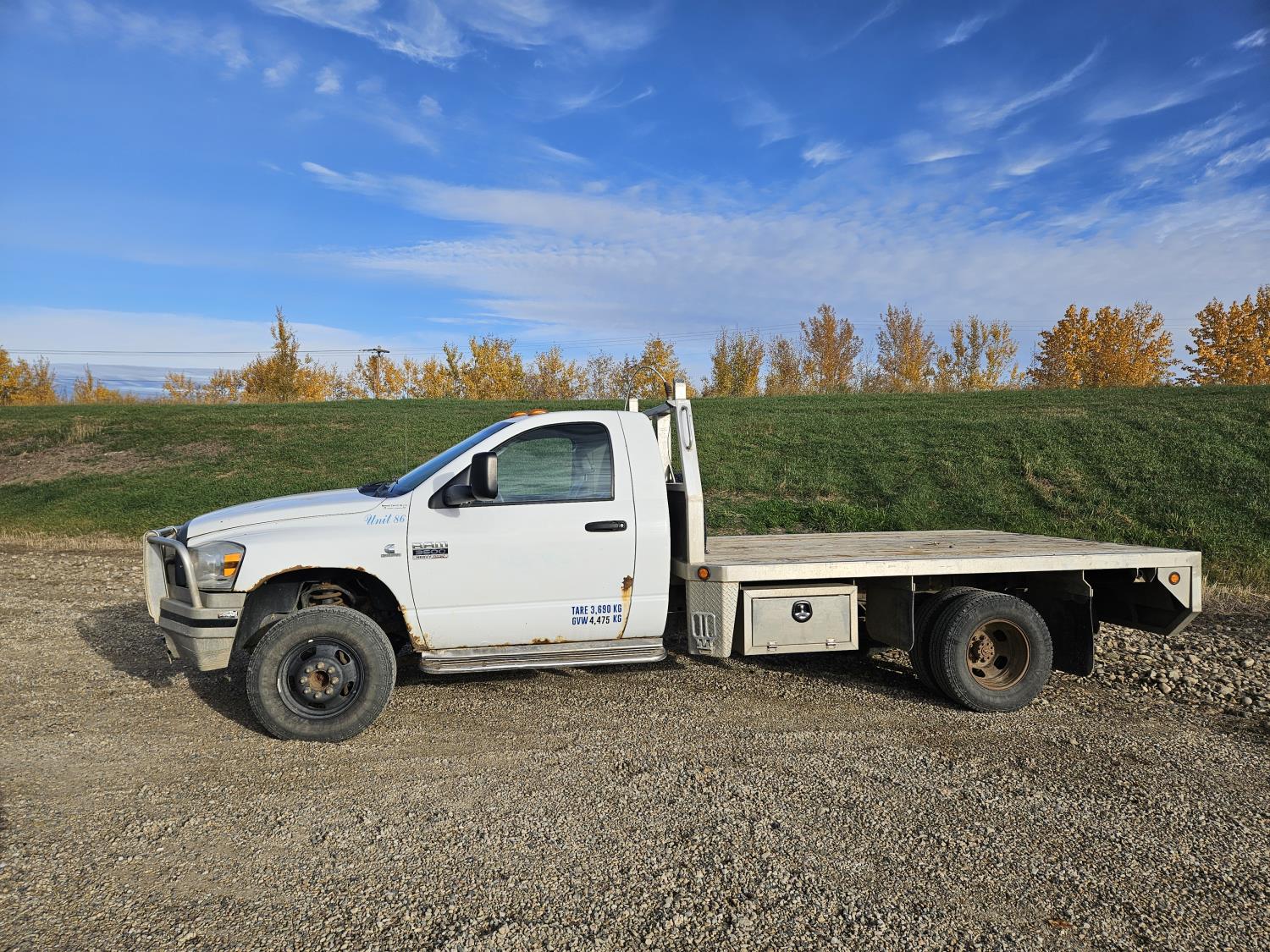 79 2007 Dodge 3500 HD 4X4 Dually Day Cab Flat Deck Truck