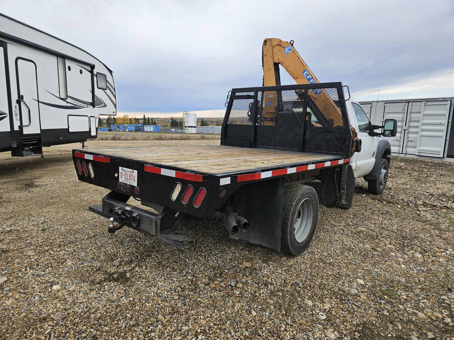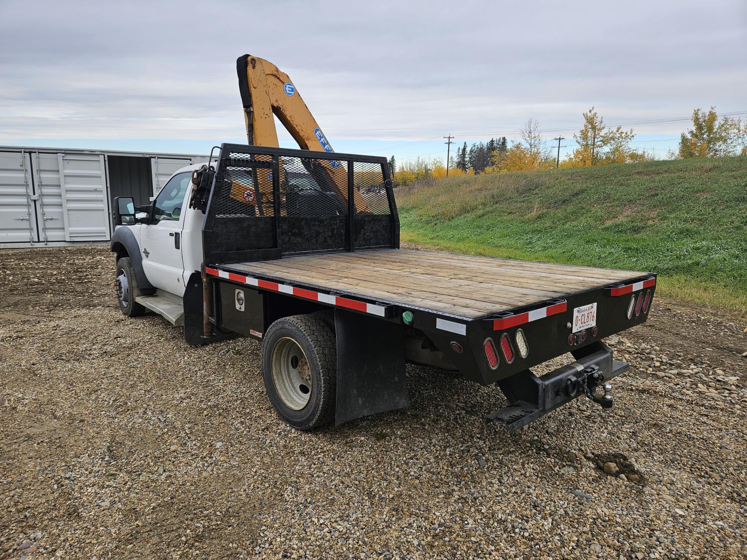 Powerstroke 6.7 L V8 diesel engine, automatic transmission, A/C, cruise control, 8 ft x 112 inch deck, Effer 62-4S 2 section 35 ft knuckle crane, outriggers, 225/70R19.5 tires