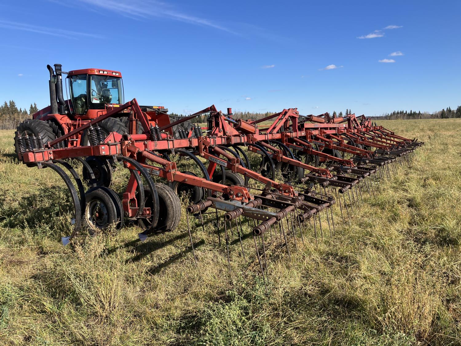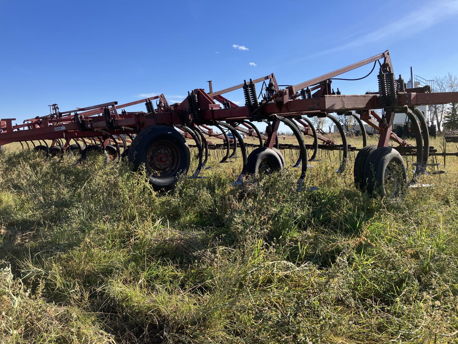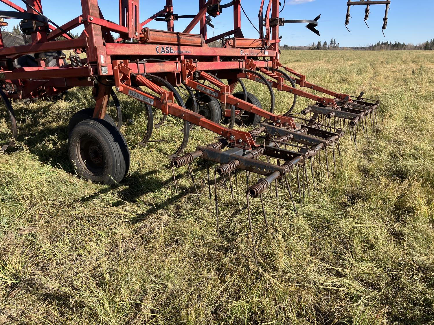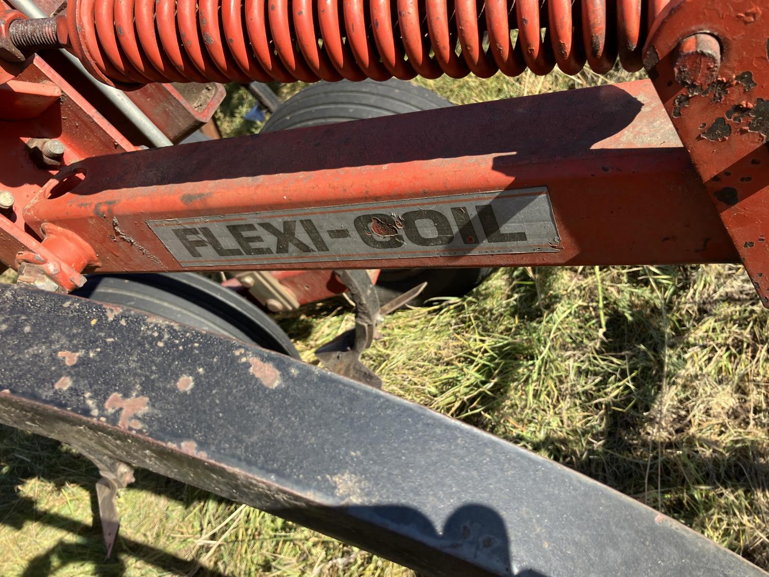 16 inch sweeps, Flexicoil 3 bar spring tooth harrows, walking axles on main frame, walking axles on wings, 16" harrow tines, 11L-15SL main frame tires, 7.60-15 wing tires