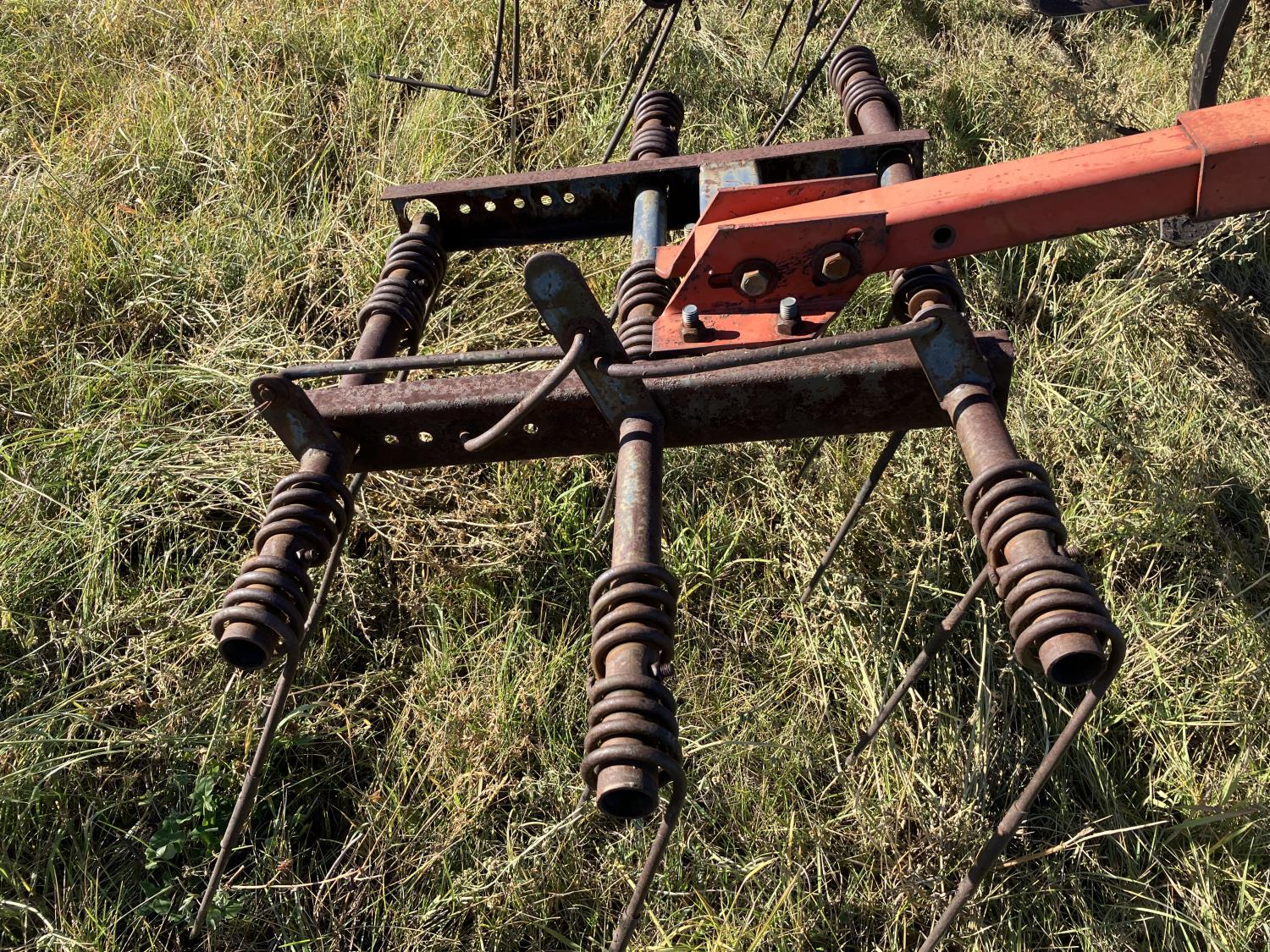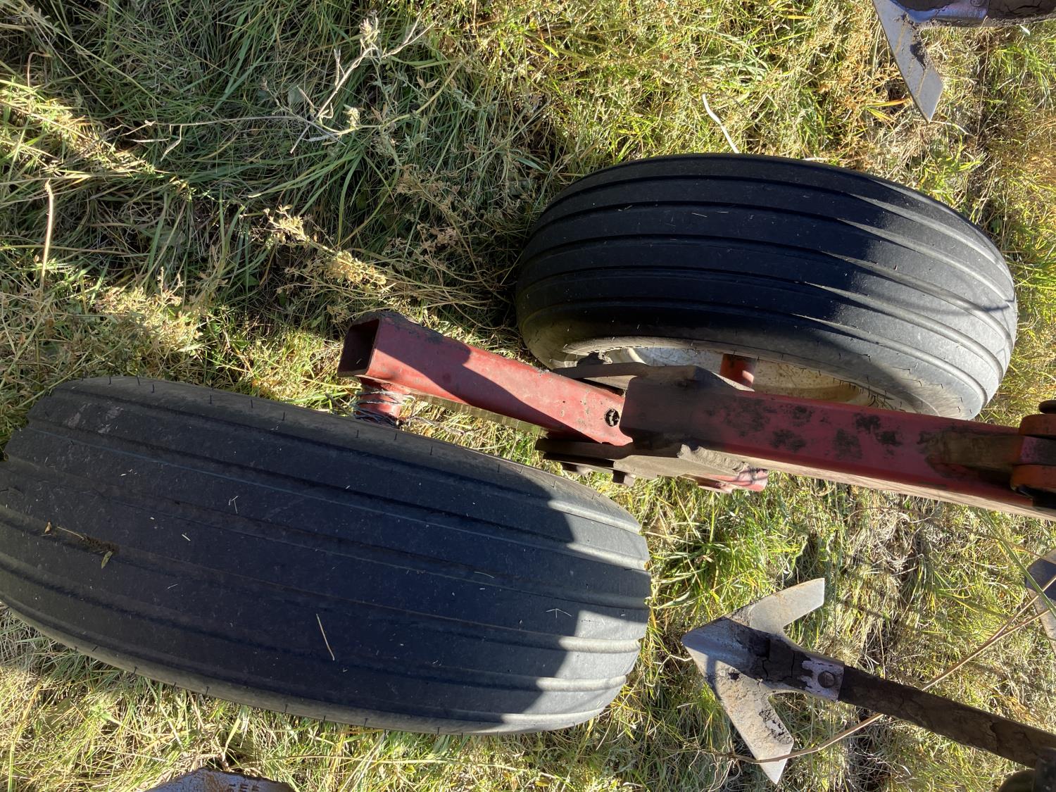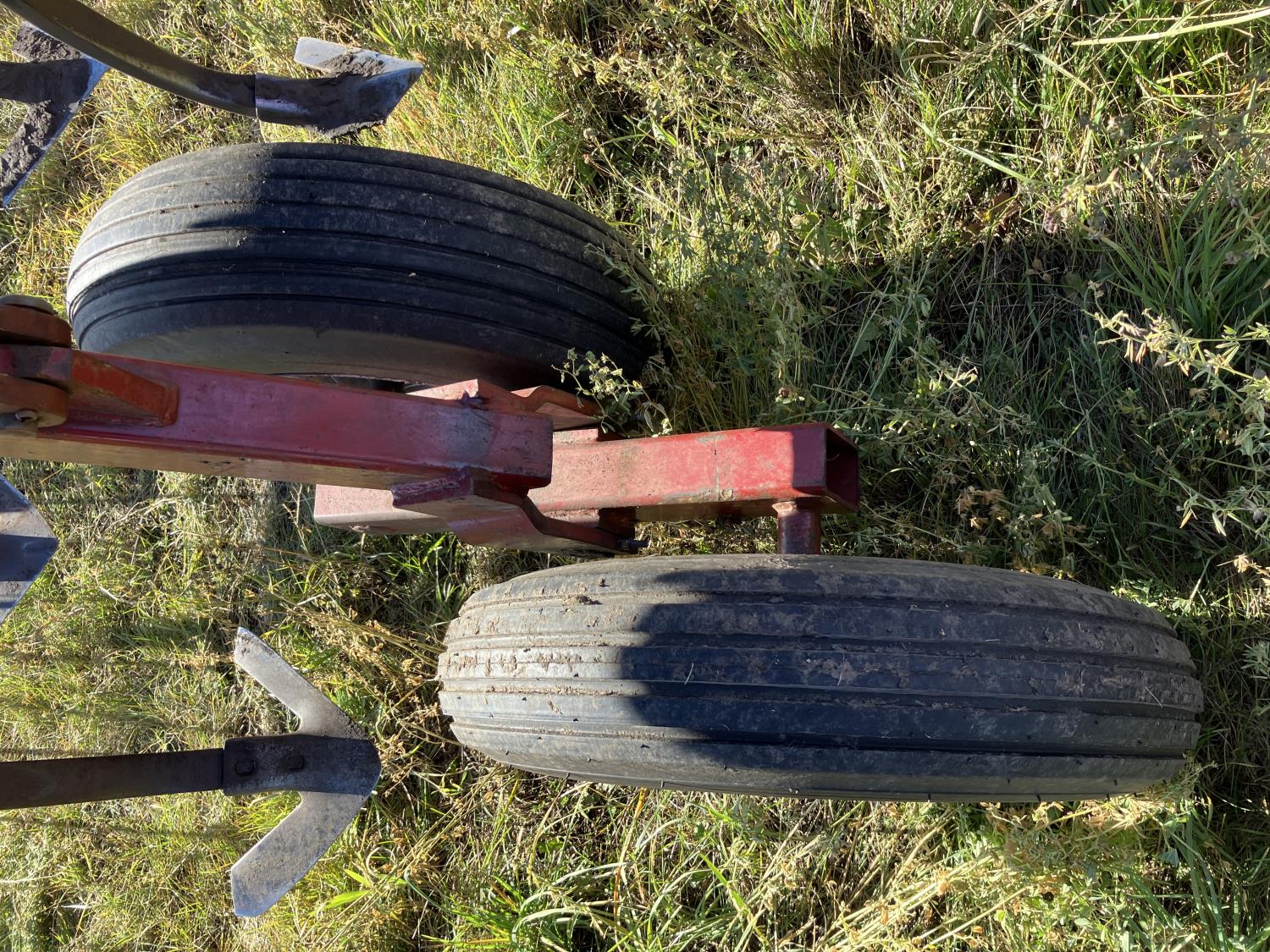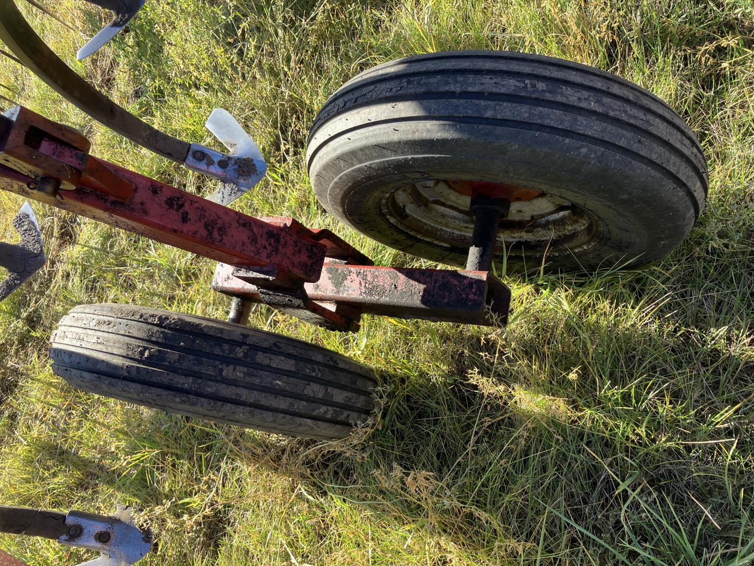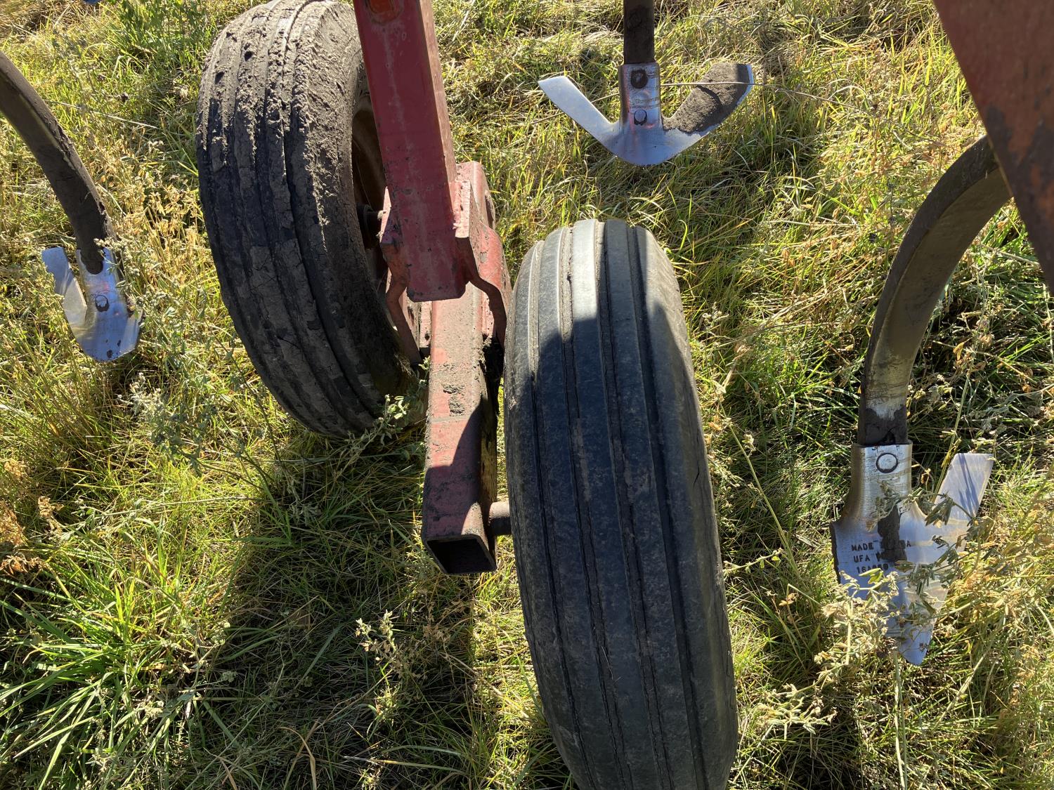 16 inch sweeps, Flexicoil 3 bar spring tooth harrows, walking axles on main frame, walking axles on wings, 16" harrow tines, 11L-15SL main frame tires, 7.60-15 wing tires