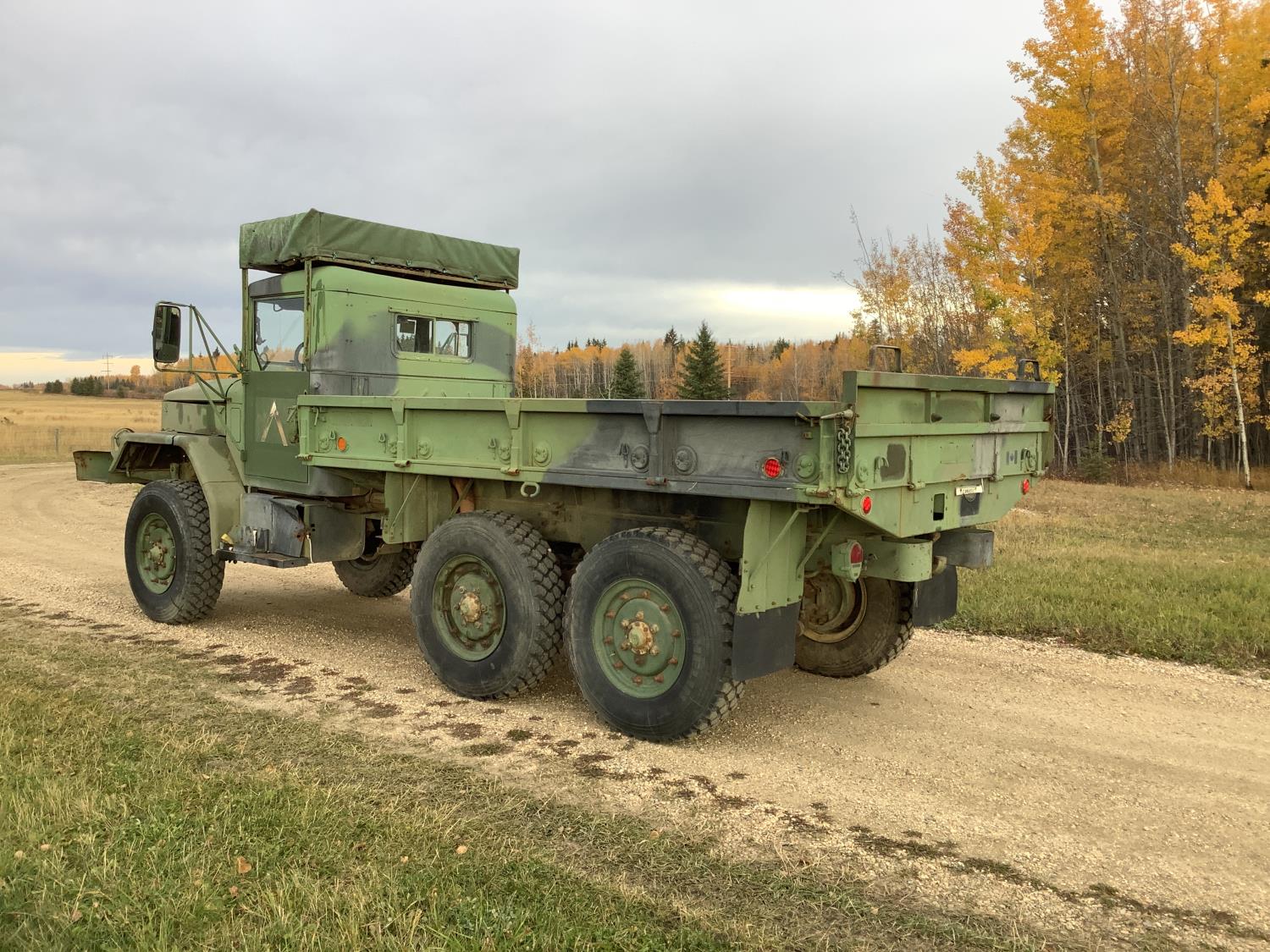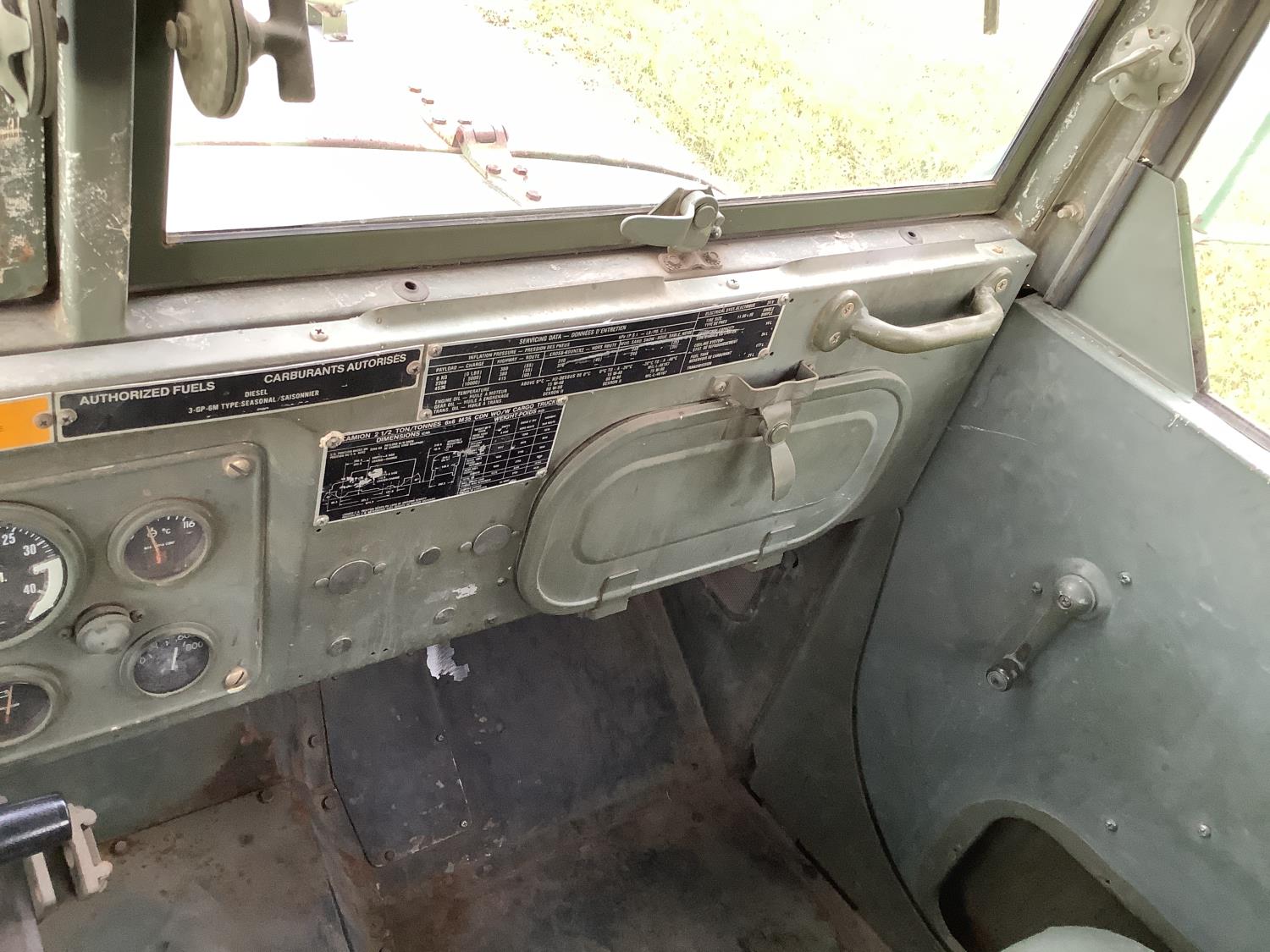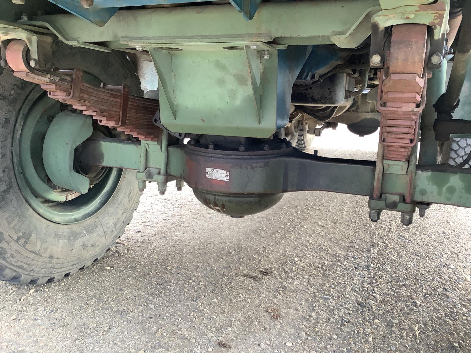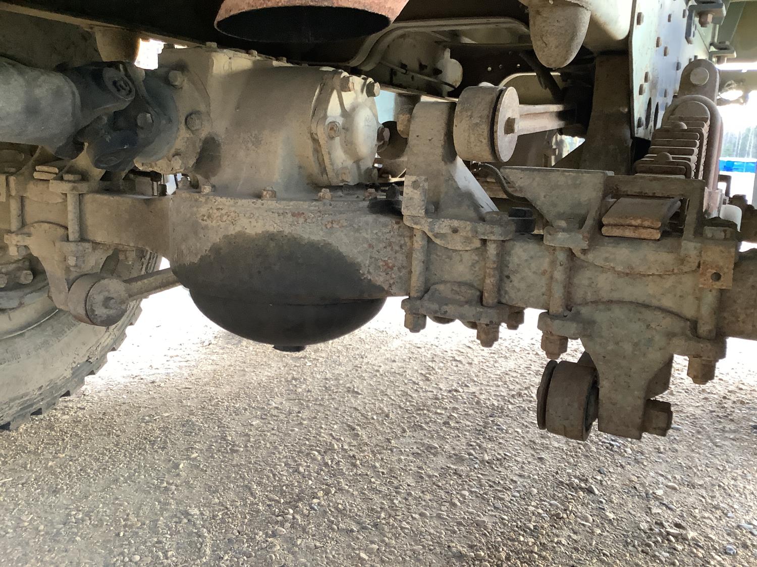 GM 8.2 Fuel squeezer V8 diesel engine, Allison automatic transmission, air over hydraulic brakes, manual park brake, spring suspension, steel box with fold down sides, rear pintle hitch