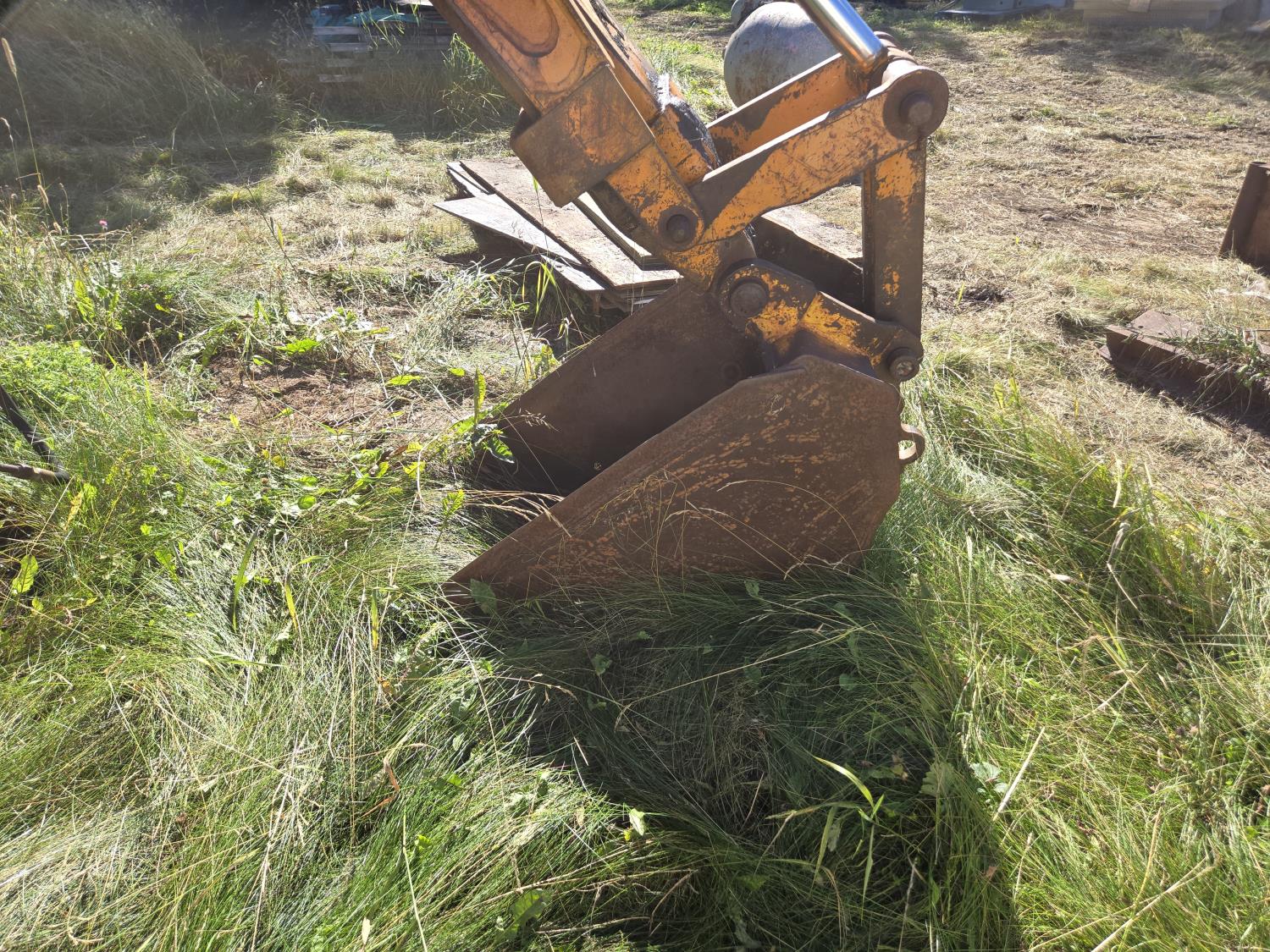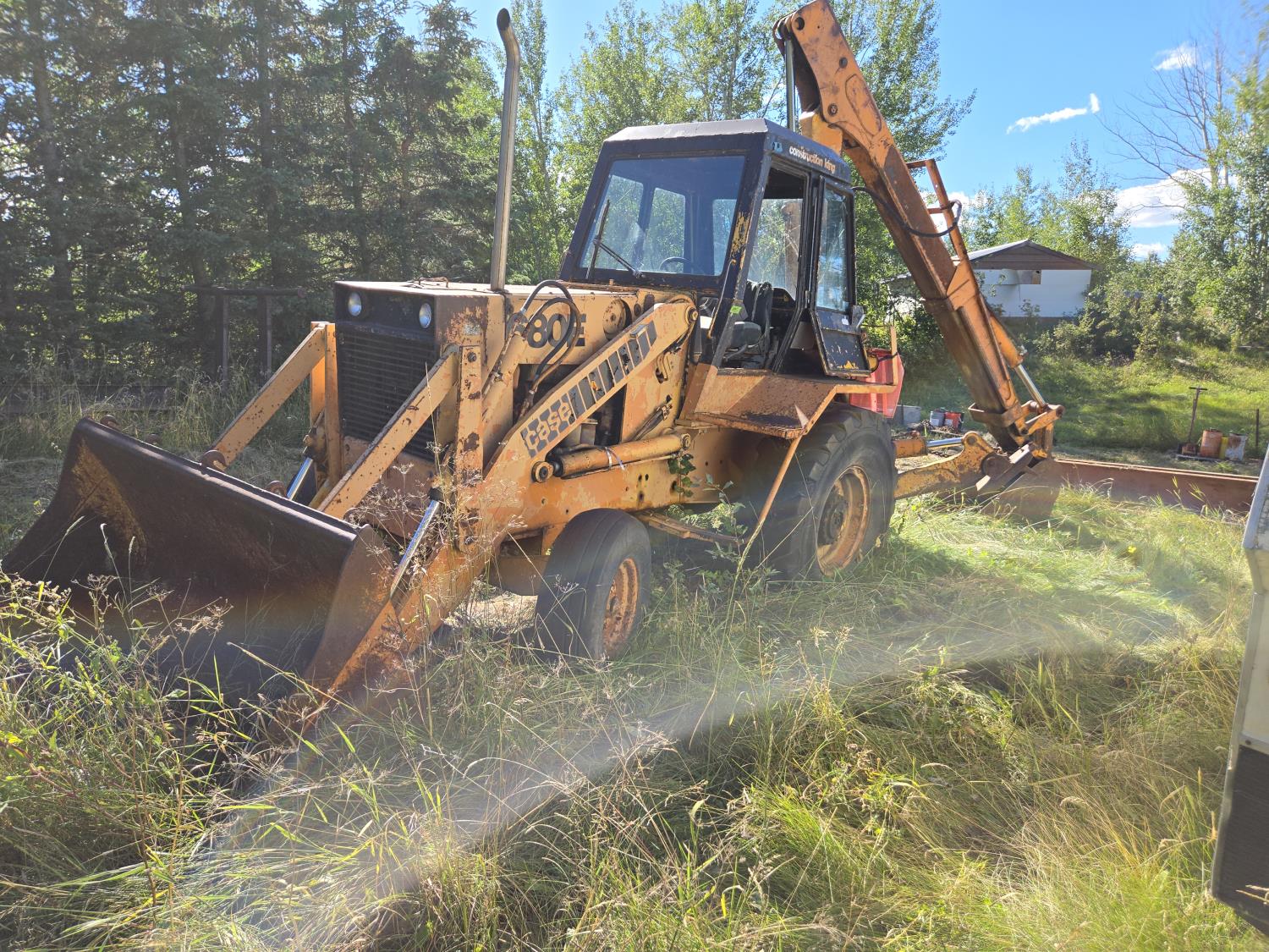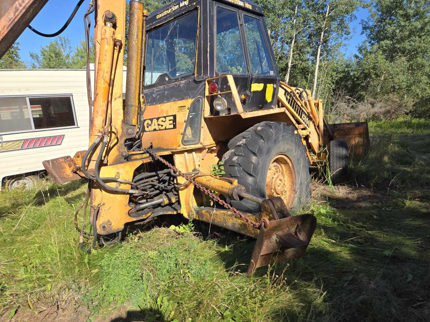 Enclosed cab, 84 inch loader bucket, 24 inch dig backhoe bucket, extendable stick, 12.5L-16 front tires, 16.00-24 rear tires