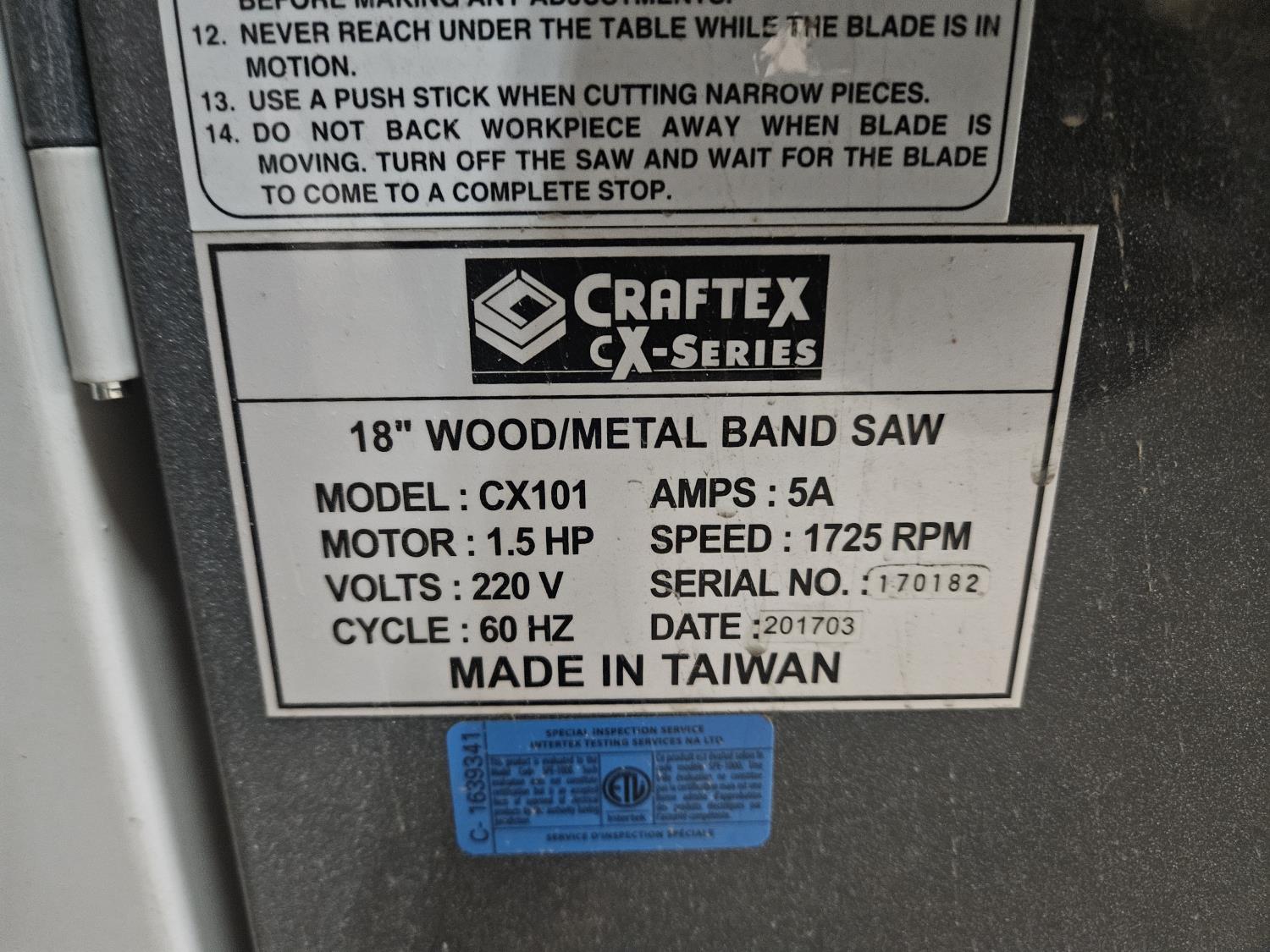 32 Craftex 18 Inch Band Saw