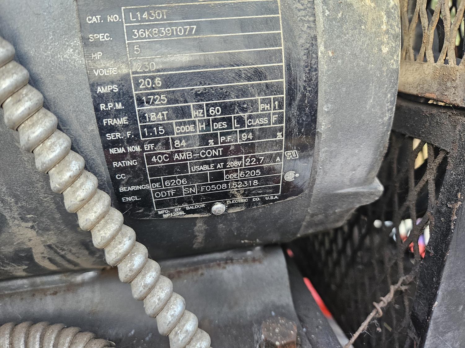 220V/110V, 5 HP electric motor, air hose
