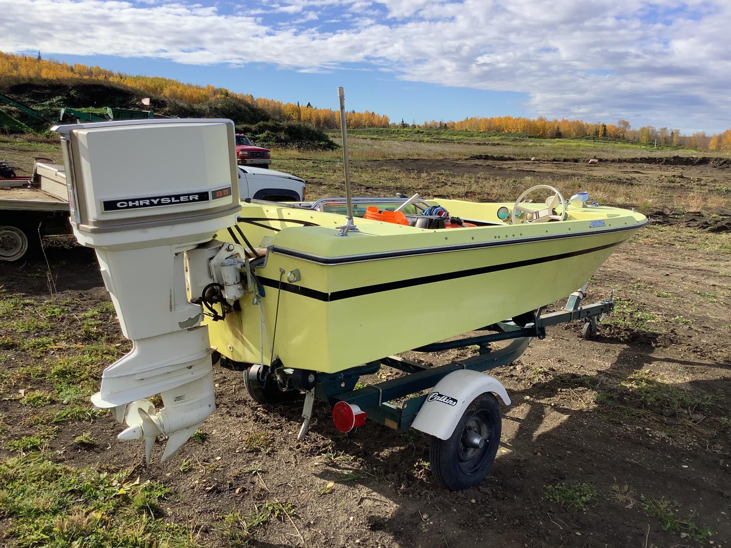 Chrysler 85 HP outboard motor, Calkins Mfg trailer