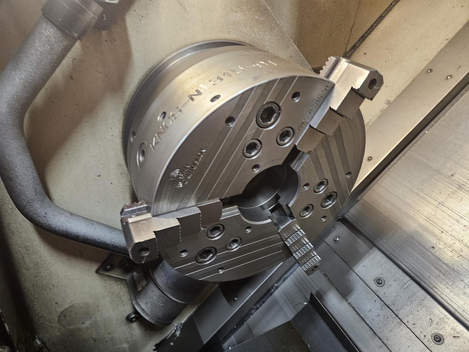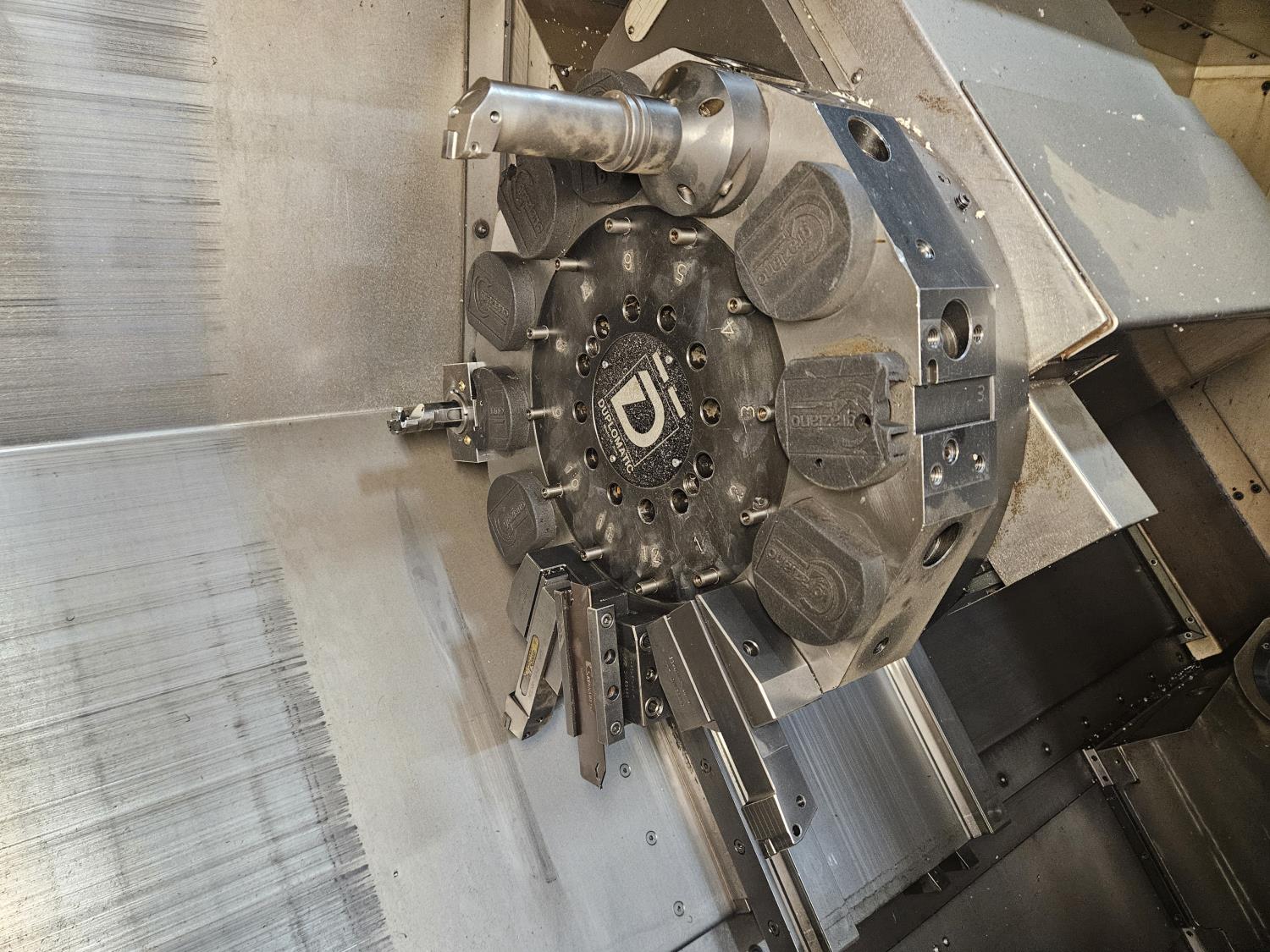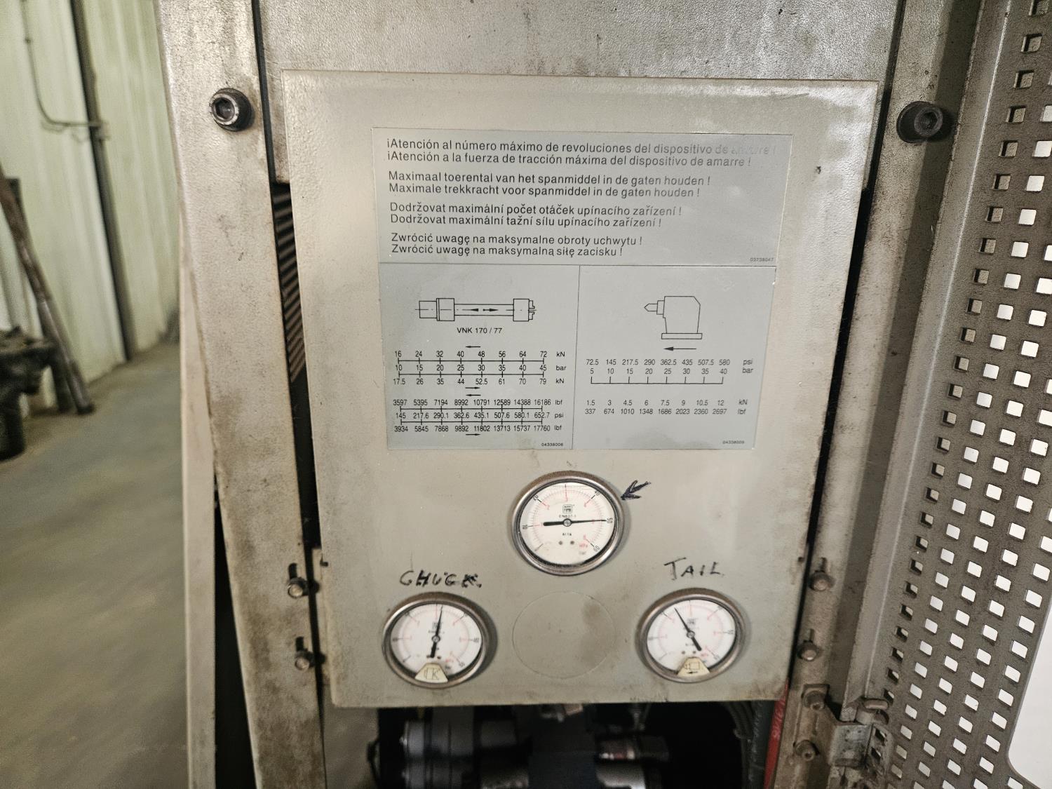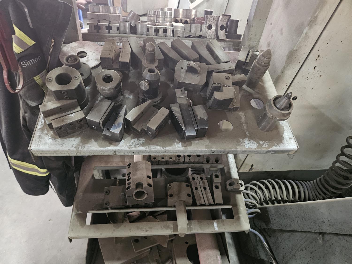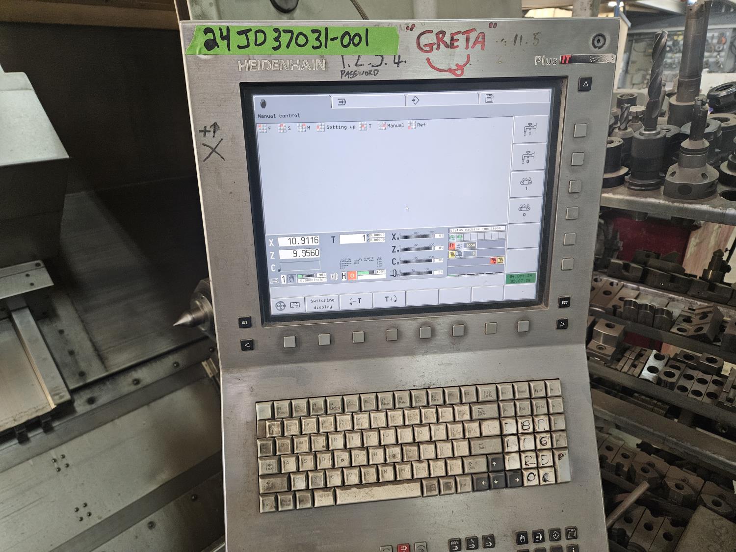 Heidenhain controls, 40 inch max lathe length, 20 inch diameter, 12 tool turret, 12 inch chuck, pre setter, high pressure coolant pump, 3 phase 50 kva 400v, live tool, extra jaws, appx weight 7500 kg