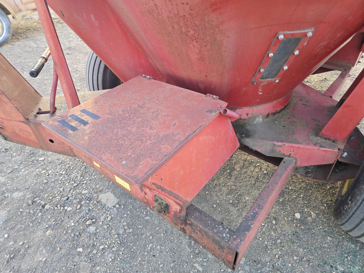 540 PTO, 21 inch hammermill, mechanical drive discharge auger, power bale feeder, supplement hopper, sight glasses, (3) screens, (1) 1/4", (1) 5/8", (1) 1-1/2", 11L-15 tires