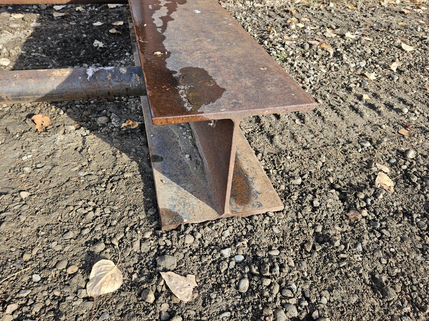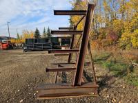 11 ft wide, 105 inch tall, (4) 3 ft deep shelves, 12" I beam bases