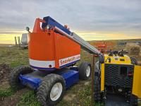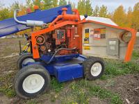 Deutz twin cylinder air cooled diesel engine, maximum lift 40 ft, 30 inch X 60 inch aluminum man basket with all controls to operate unit