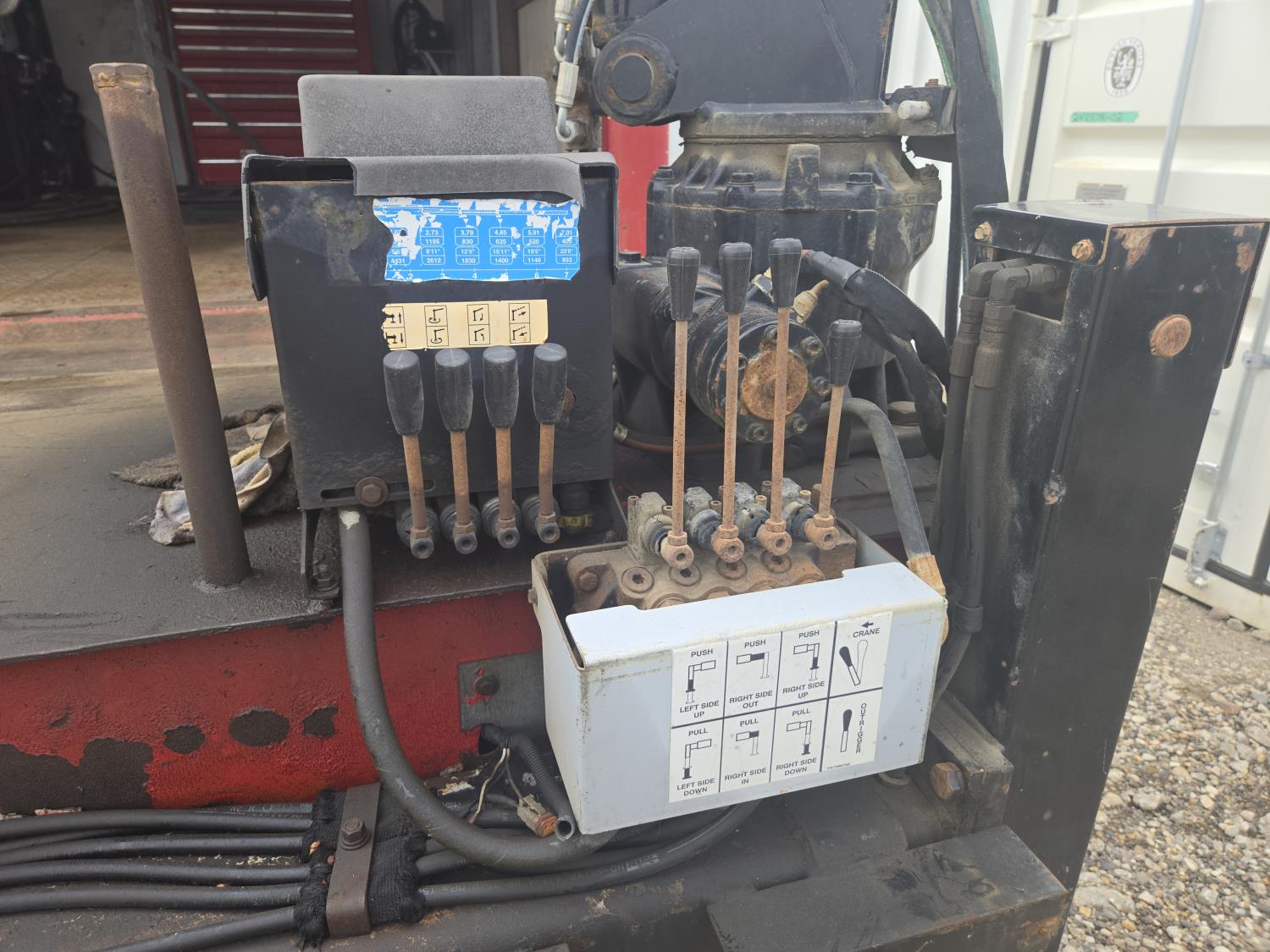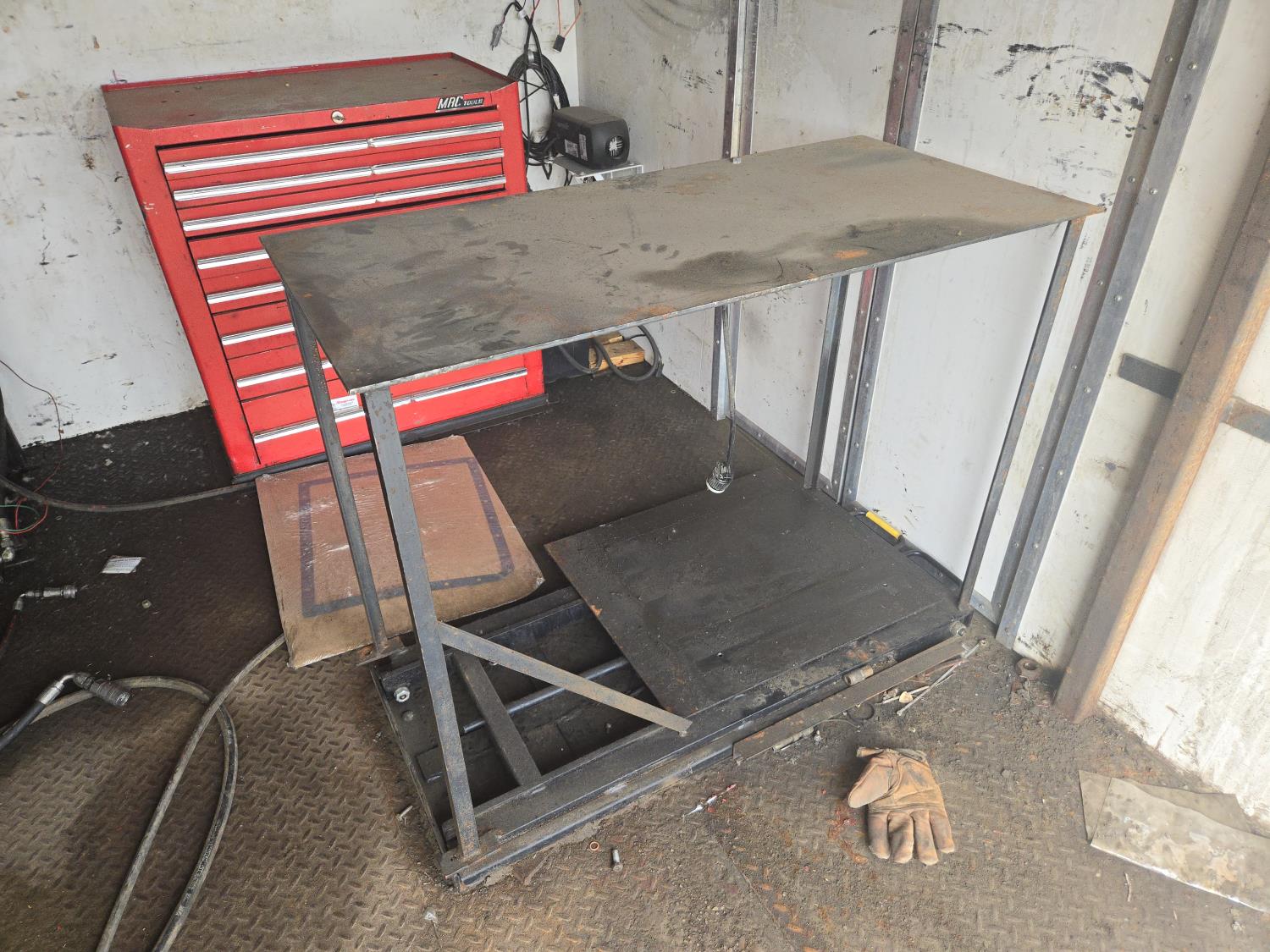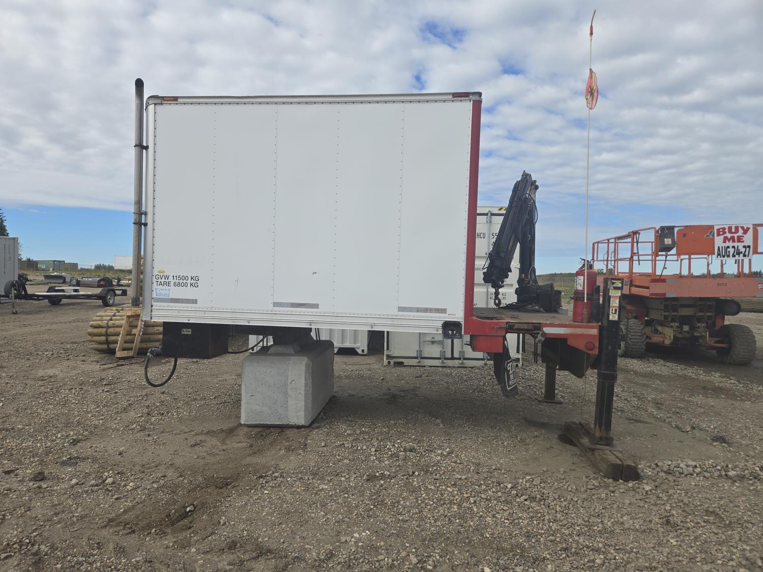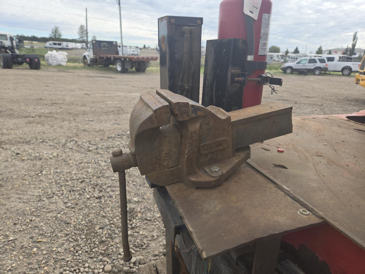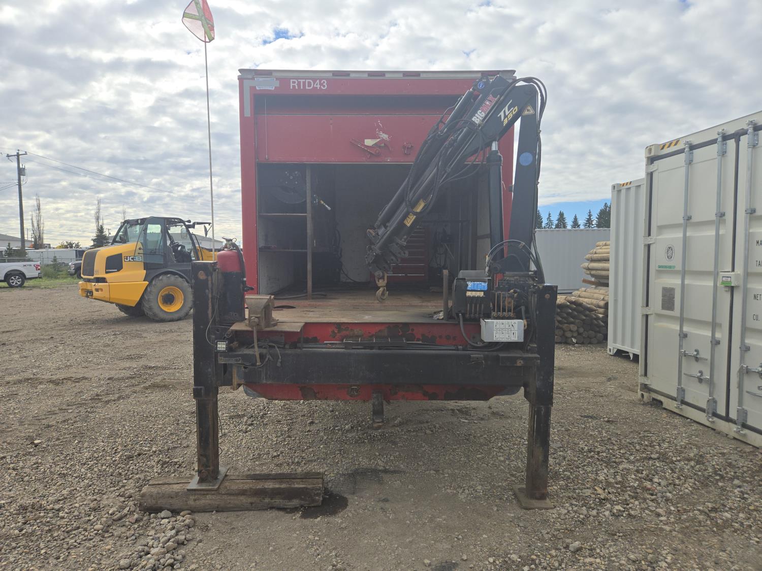 Van 130 inch long, 96 inch wide, 77 inch high inside, 44 inch rear deck, generator roll out track, 6 inch vise, Big Max 350 3 section crane with 4400 lb max lift capacity and out riggers, mechanics tool box, hydraulic drive air compressor, shelving, Oxy/Acet hose with reel