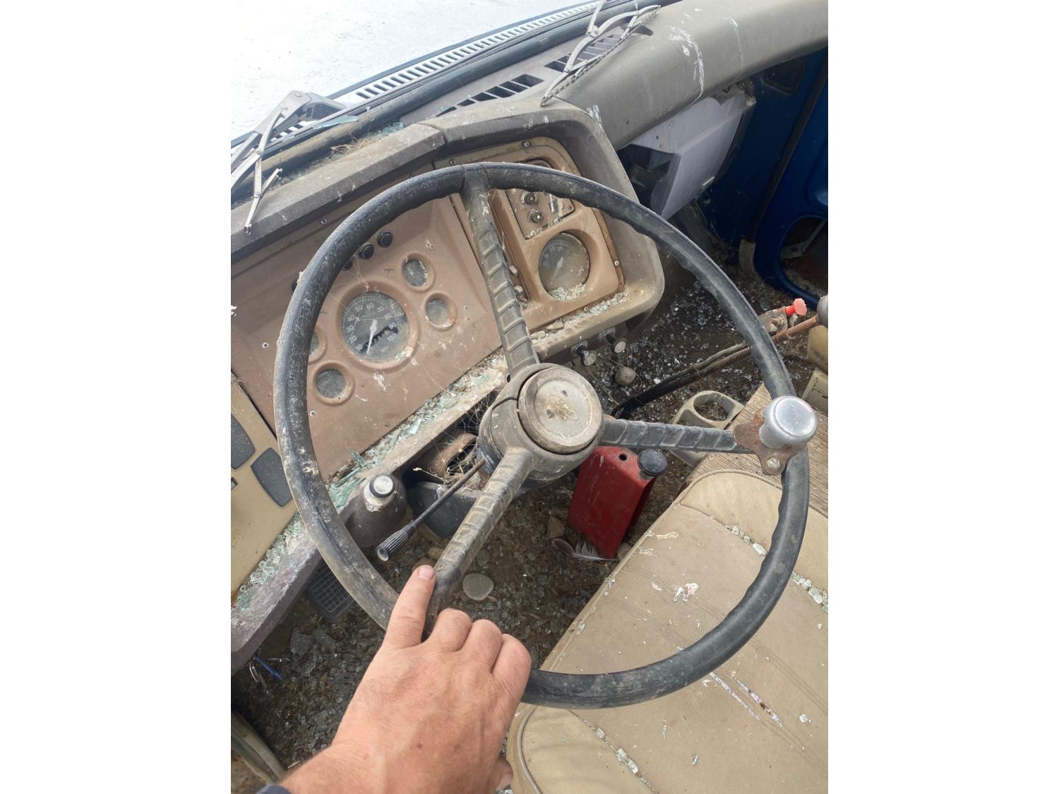 V8 gas engine, 5X2 manual transmission, hydraulic wet kit, 12 ft box, spring suspension, 10R20 tires