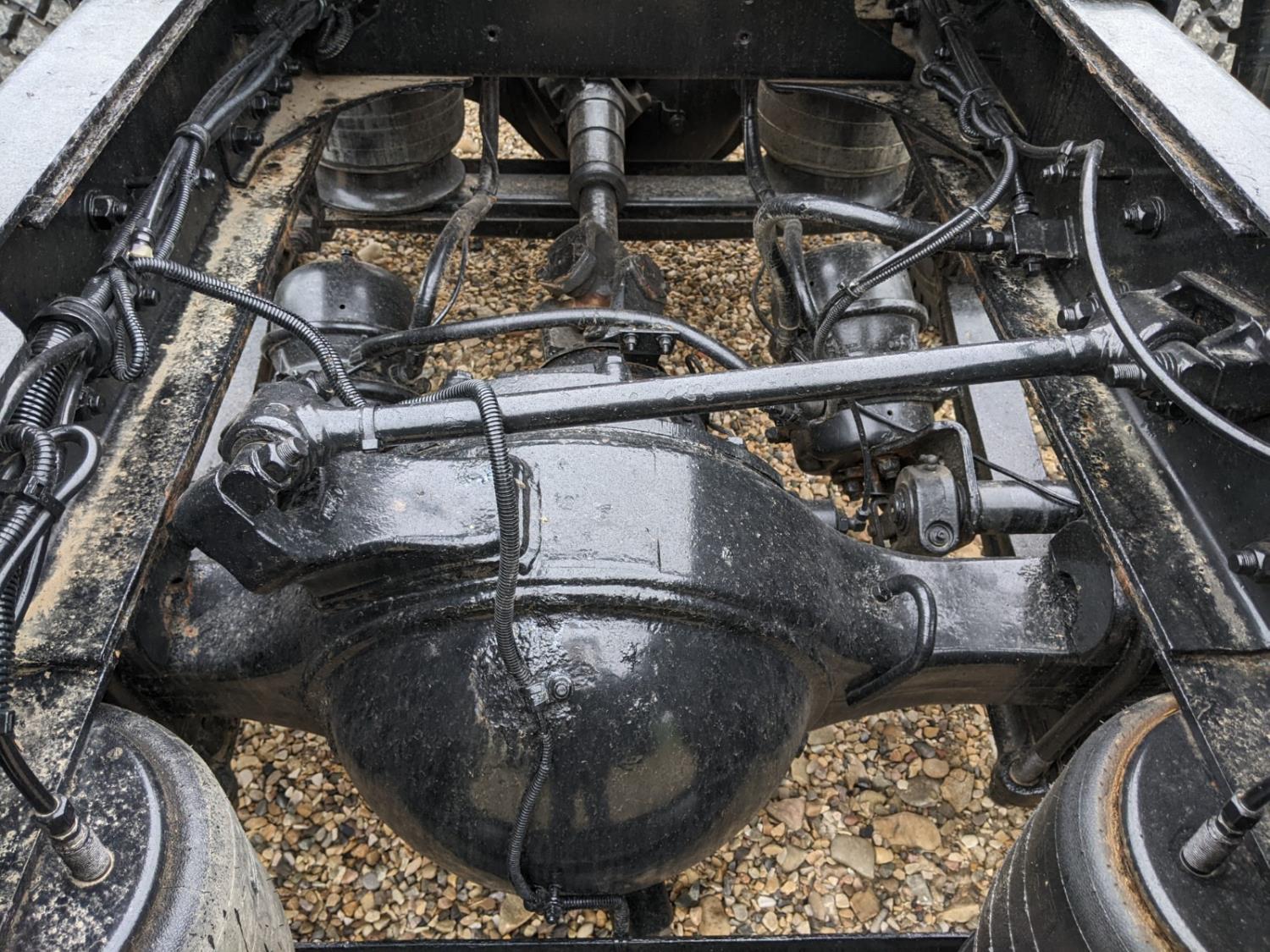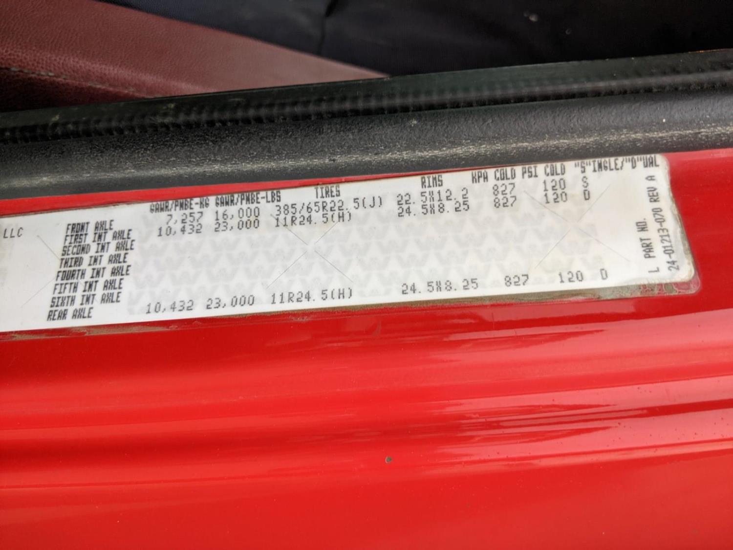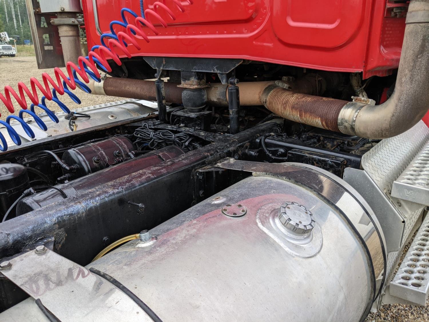 Detroit DD15 6 cylinder 560 HP diesel engine, DEF deleted, engine brake, engine block heater, emissions deleted, Eaton Fuller 18 speed manual transmission, A/C, cruise control, air ride driver seat, radio, Magnum aluminum moose bumper, beacons, air ride cab, chain holders, air ride suspension, 16,000 lb front axle, 46,000 lb rear axles, full lockers, 233 inch WB, all aluminum wheels, 385/65R22.5 front tires, 11R24.5 rear tires
