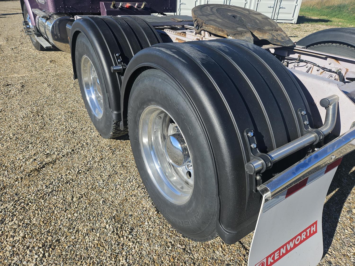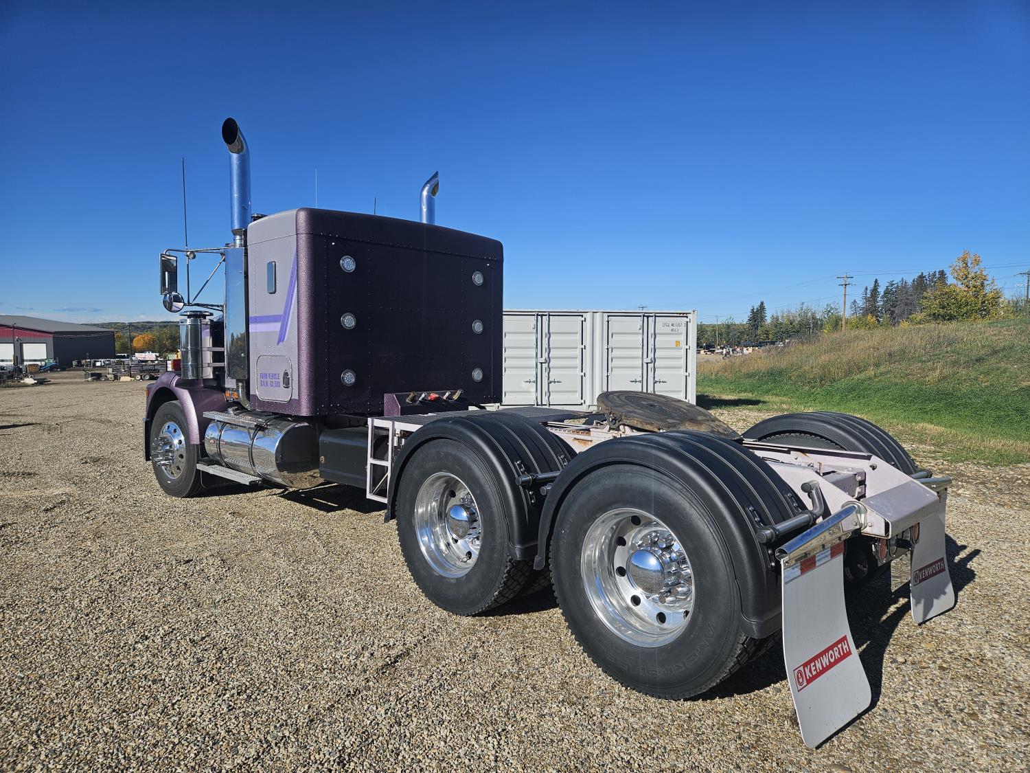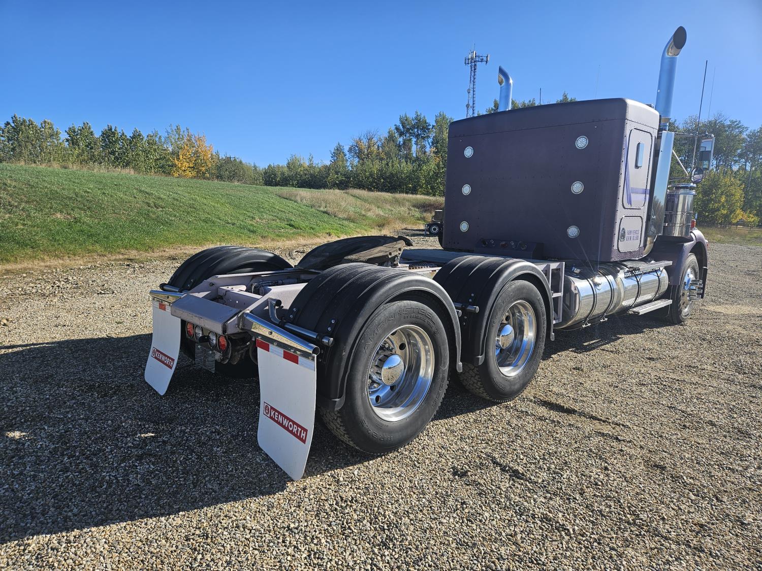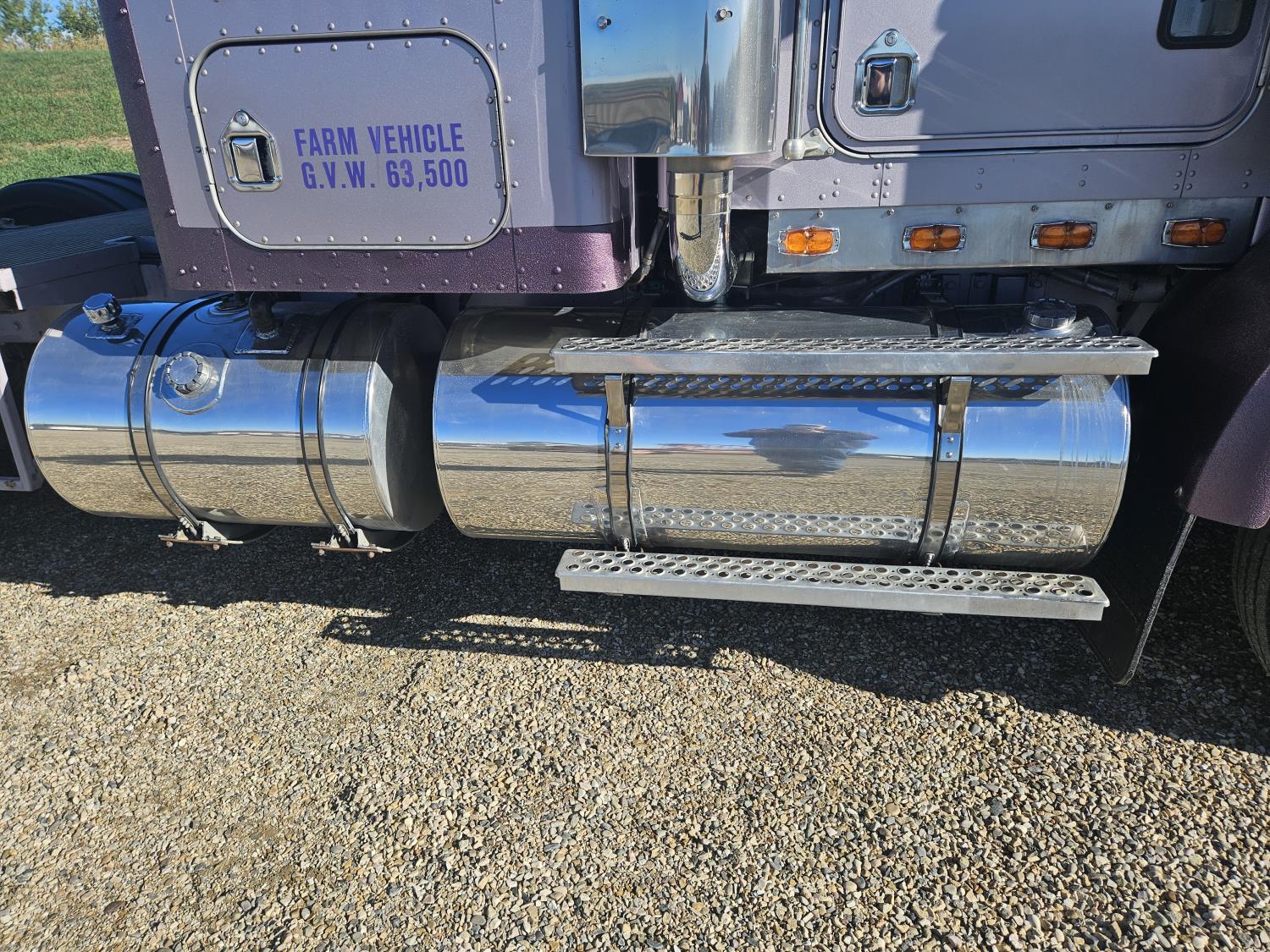 Caterpillar C-15 3406 single turbo 435 HP engine, 18 speed manual transmission, 2-way hyd system, beacon lights, rear moon fenders, engine brake , flat top 48 inch removeable, sleeper, A/C, leather interior, air ride seats, air ride suspension, 13,000 lb front axle, 46,000 lb rear axles, 3 way diff locks, all aluminum wheels, 11R24 tires