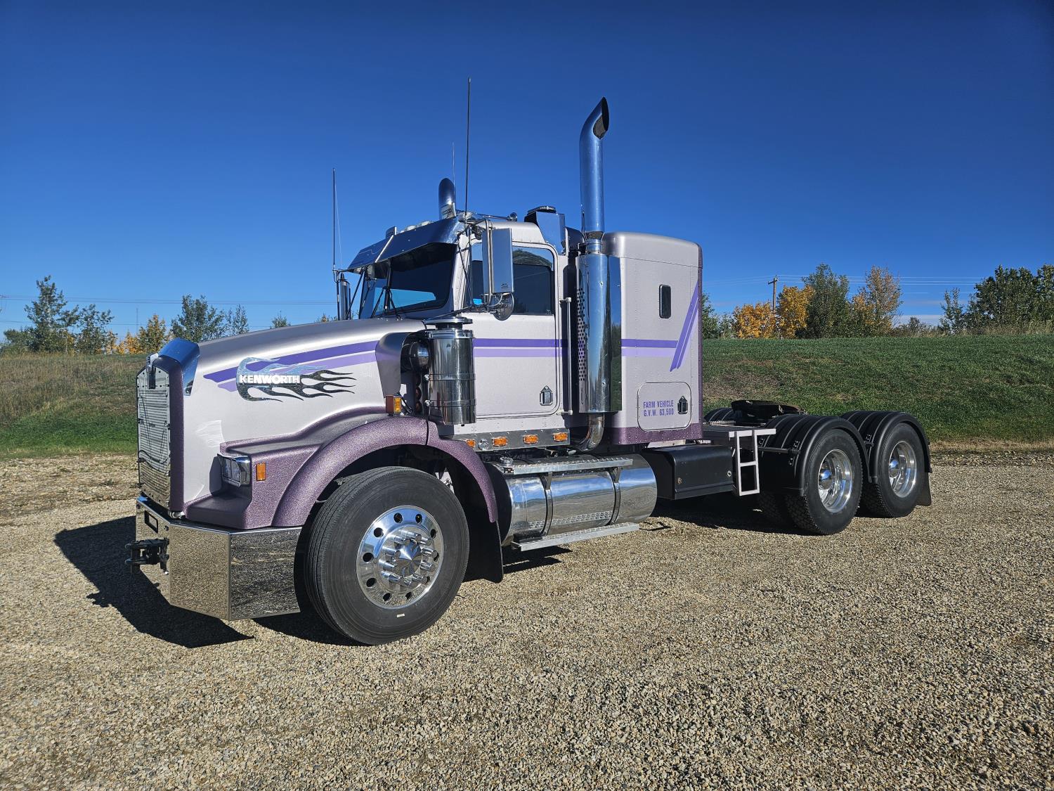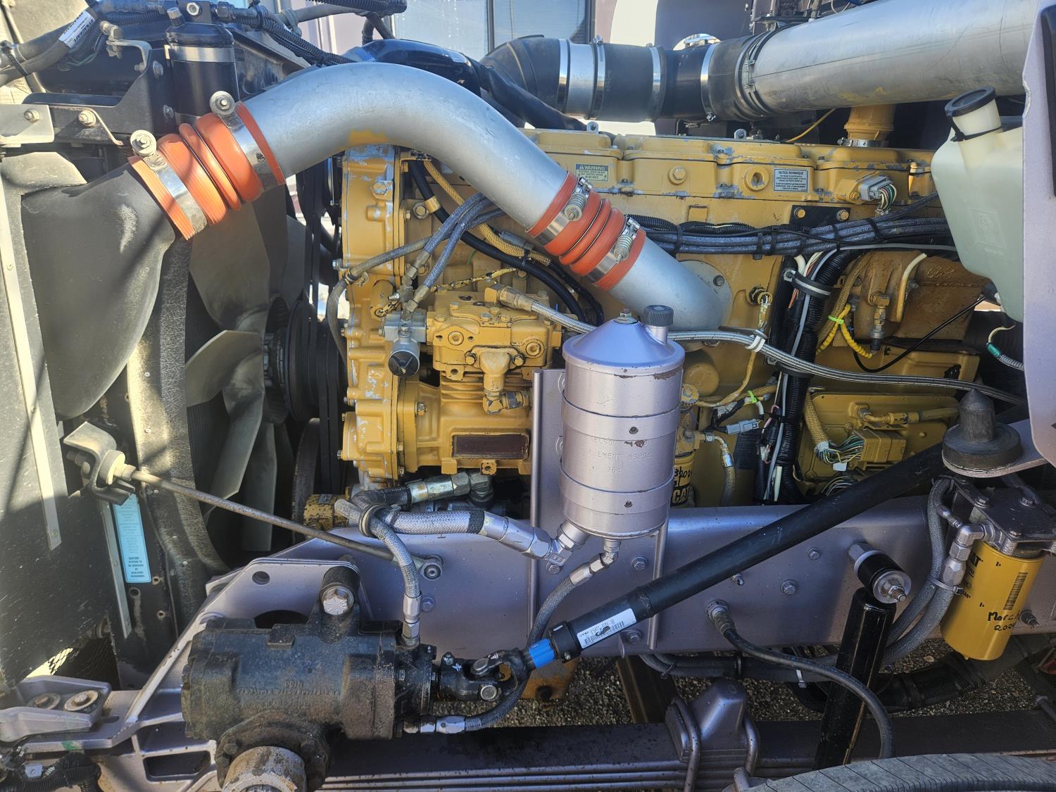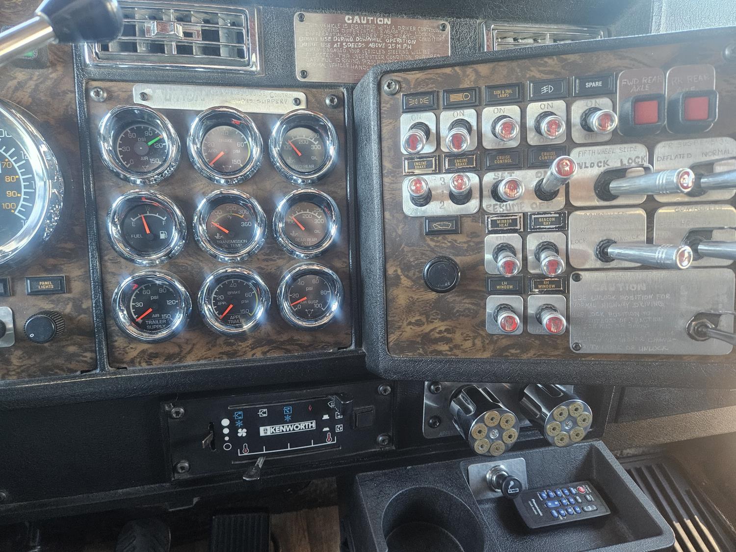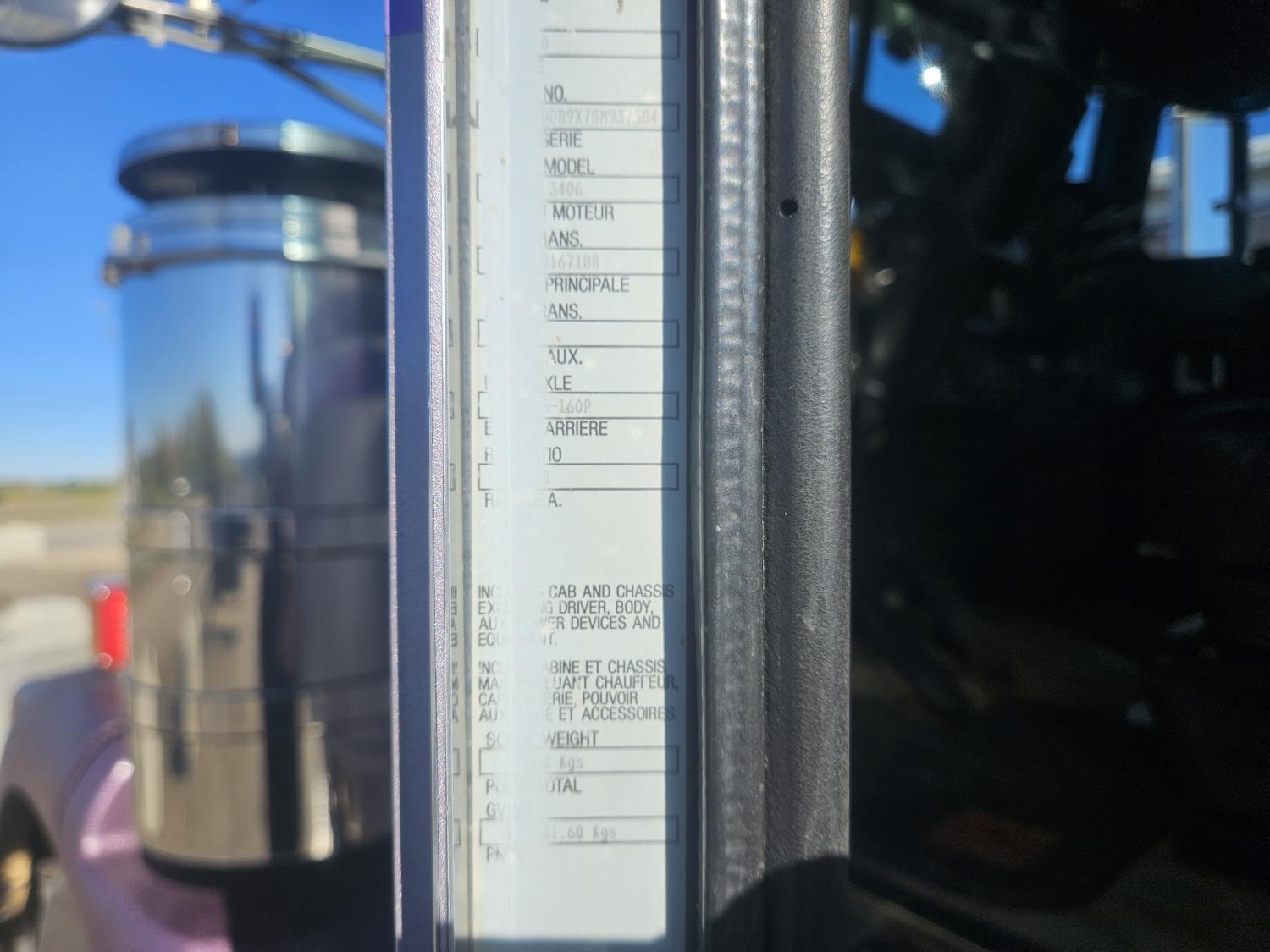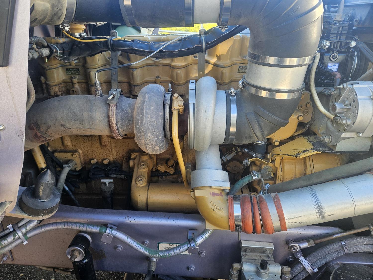 Caterpillar C-15 3406 single turbo 435 HP engine, 18 speed manual transmission, 2-way hyd system, beacon lights, rear moon fenders, engine brake , flat top 48 inch removeable, sleeper, A/C, leather interior, air ride seats, air ride suspension, 13,000 lb front axle, 46,000 lb rear axles, 3 way diff locks, all aluminum wheels, 11R24 tires