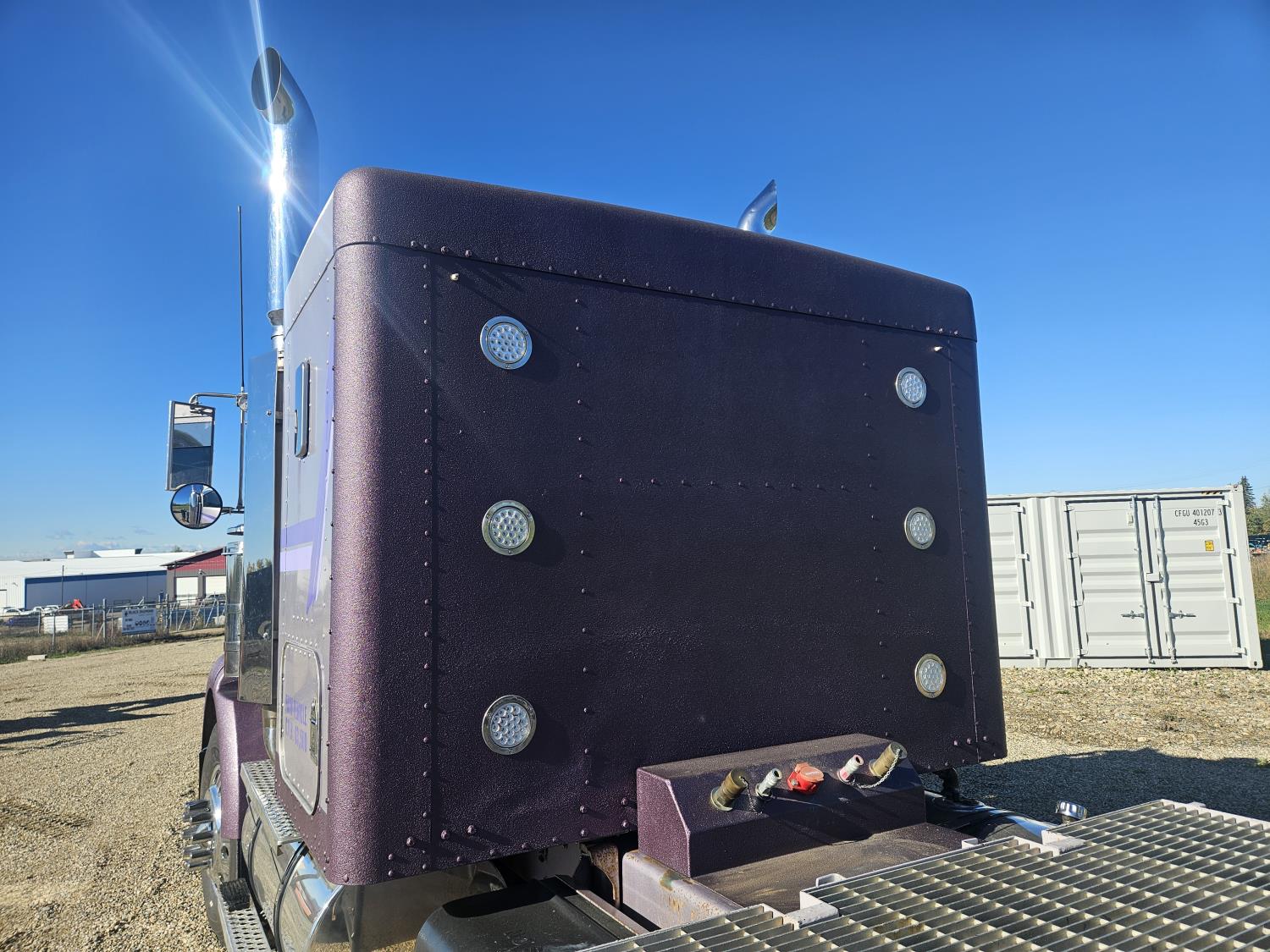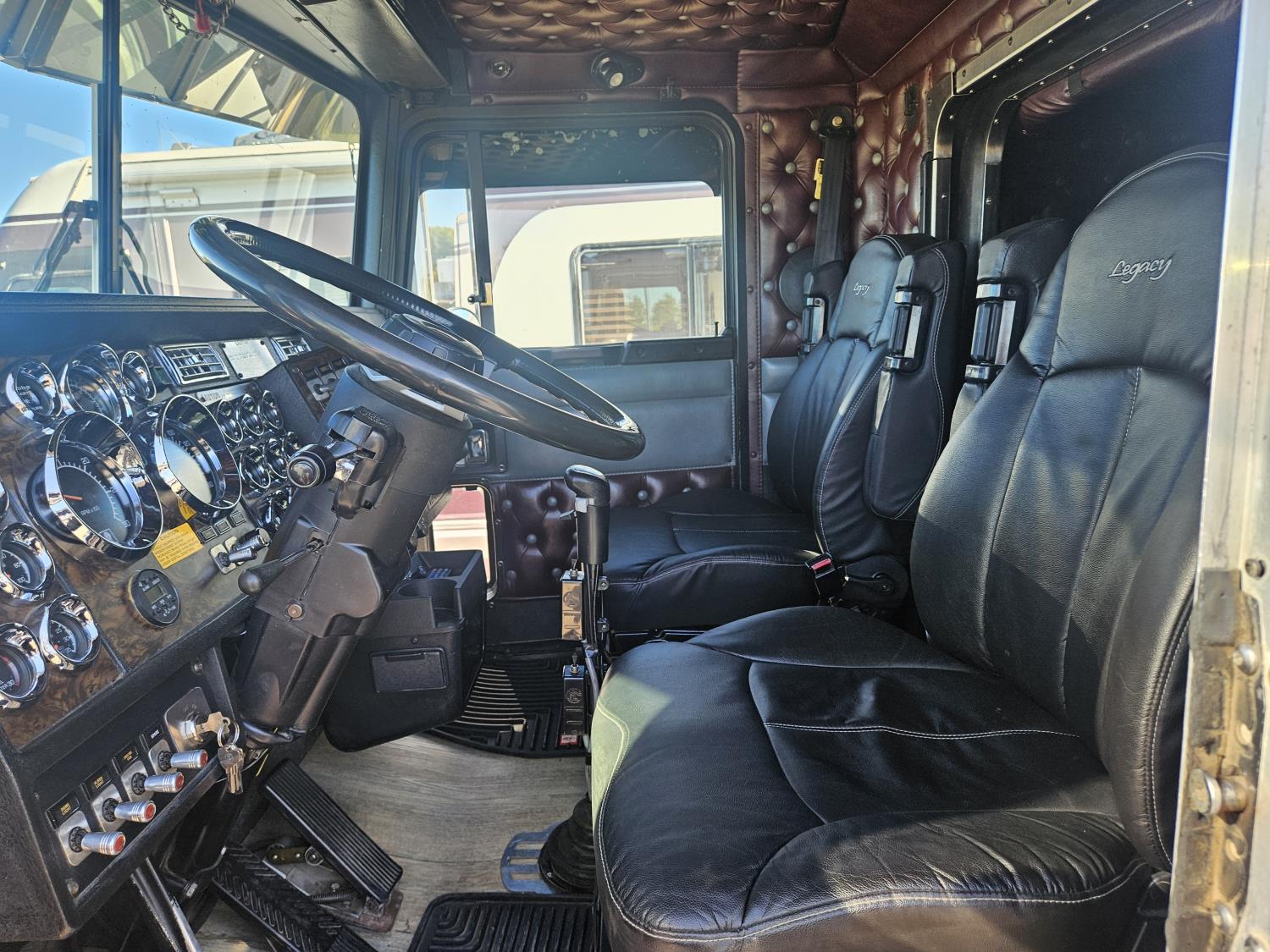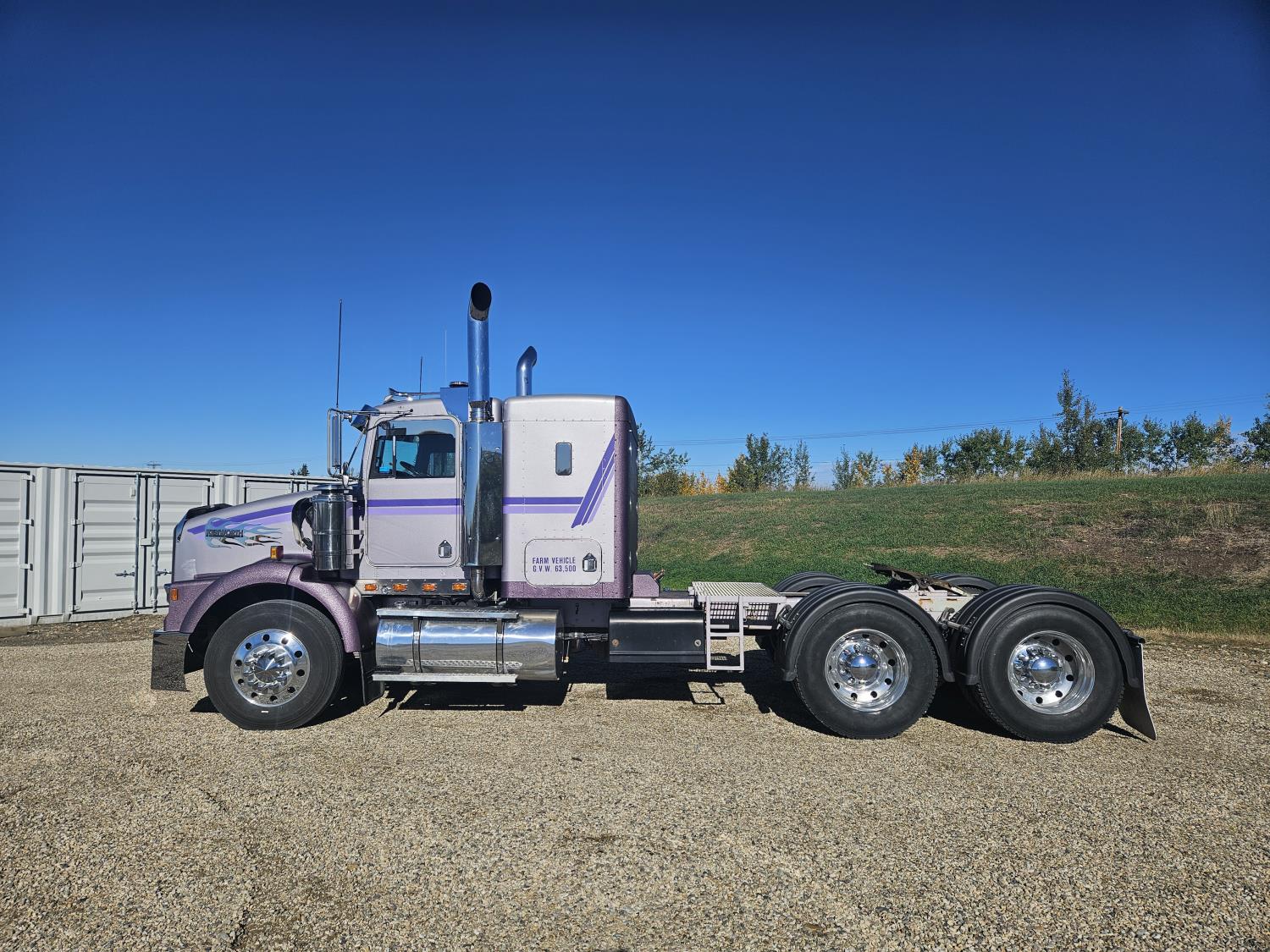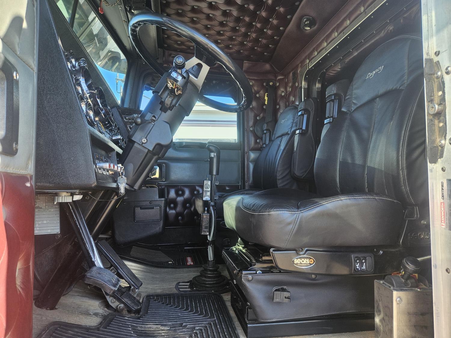 Caterpillar C-15 3406 single turbo 435 HP engine, 18 speed manual transmission, 2-way hyd system, beacon lights, rear moon fenders, engine brake , flat top 48 inch removeable, sleeper, A/C, leather interior, air ride seats, air ride suspension, 13,000 lb front axle, 46,000 lb rear axles, 3 way diff locks, all aluminum wheels, 11R24 tires