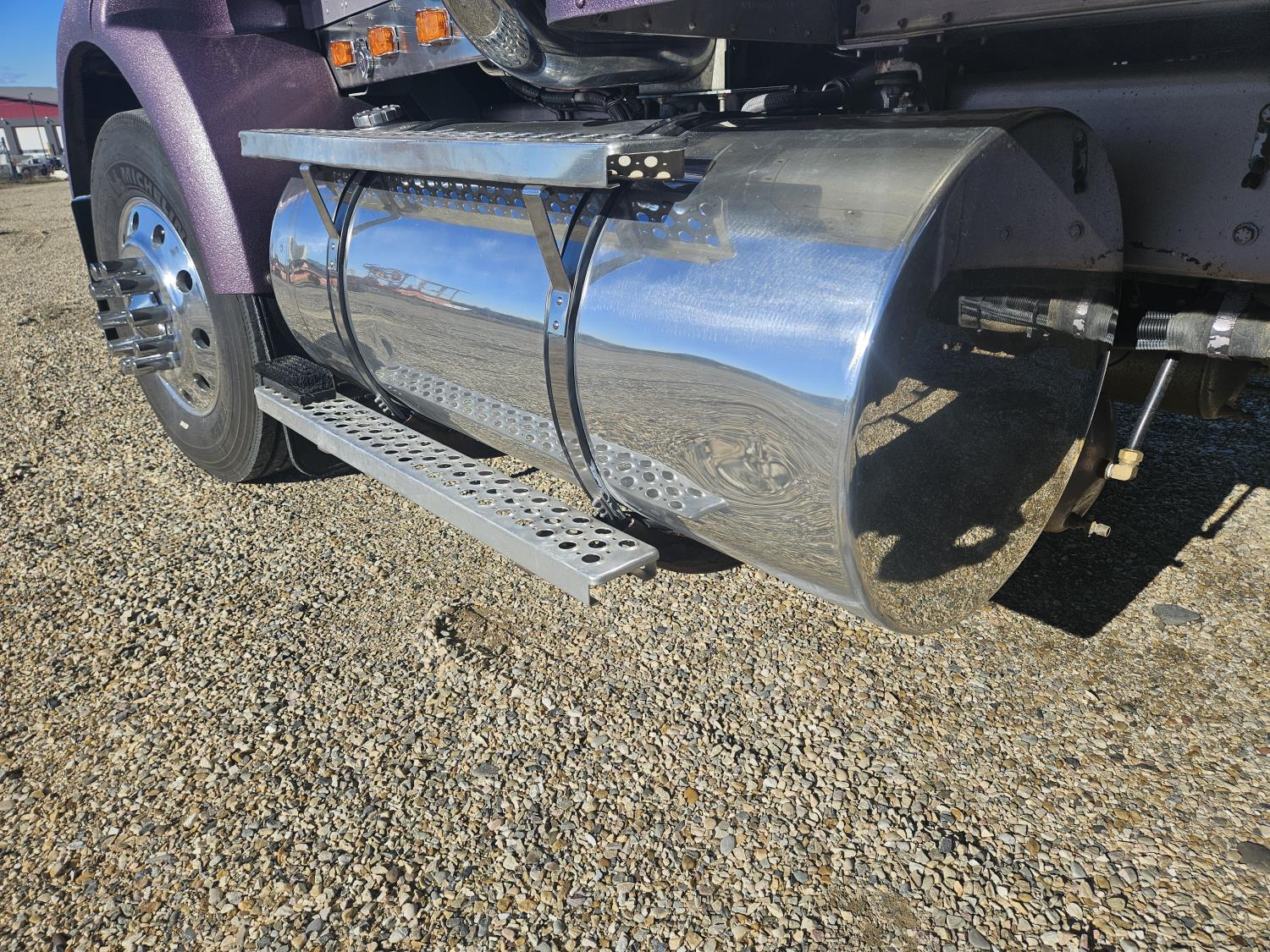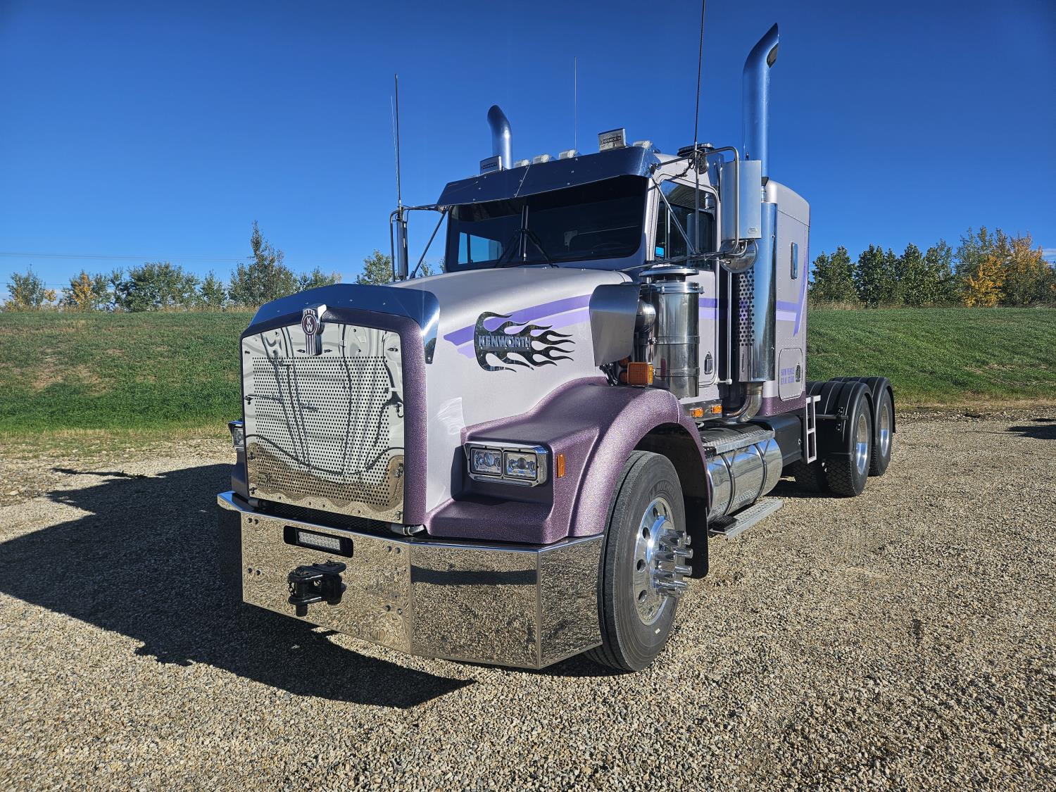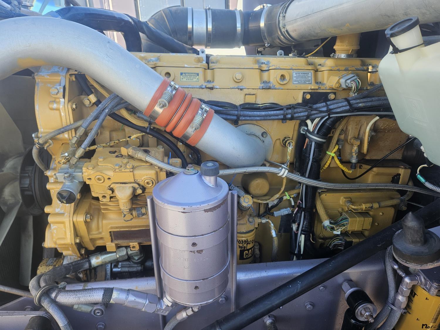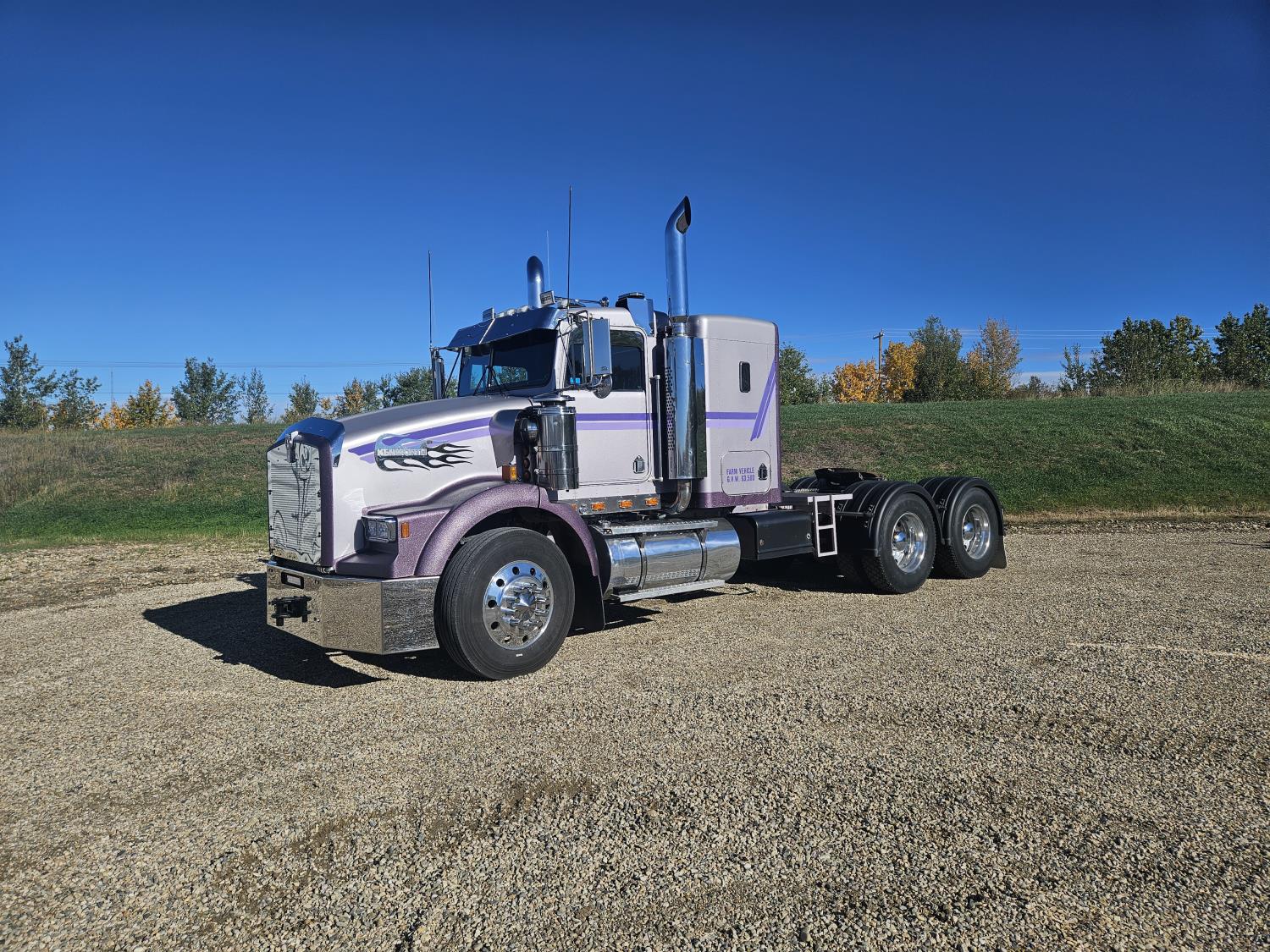 Caterpillar C-15 3406 single turbo 435 HP engine, 18 speed manual transmission, 2-way hyd system, beacon lights, rear moon fenders, engine brake , flat top 48 inch removeable, sleeper, A/C, leather interior, air ride seats, air ride suspension, 13,000 lb front axle, 46,000 lb rear axles, 3 way diff locks, all aluminum wheels, 11R24 tires