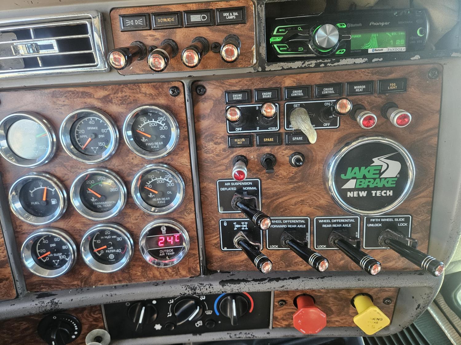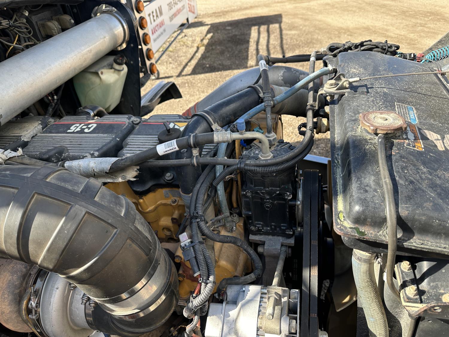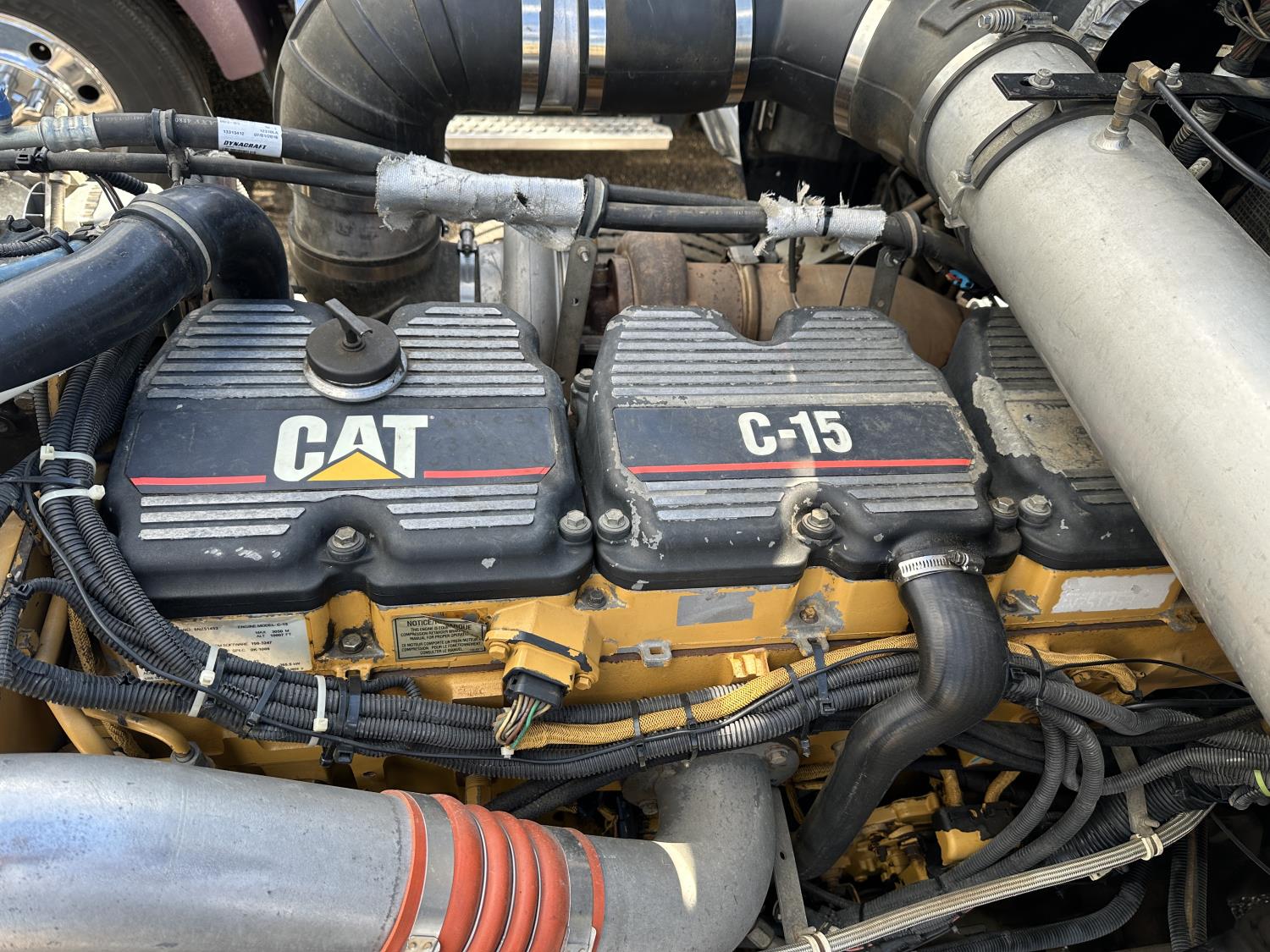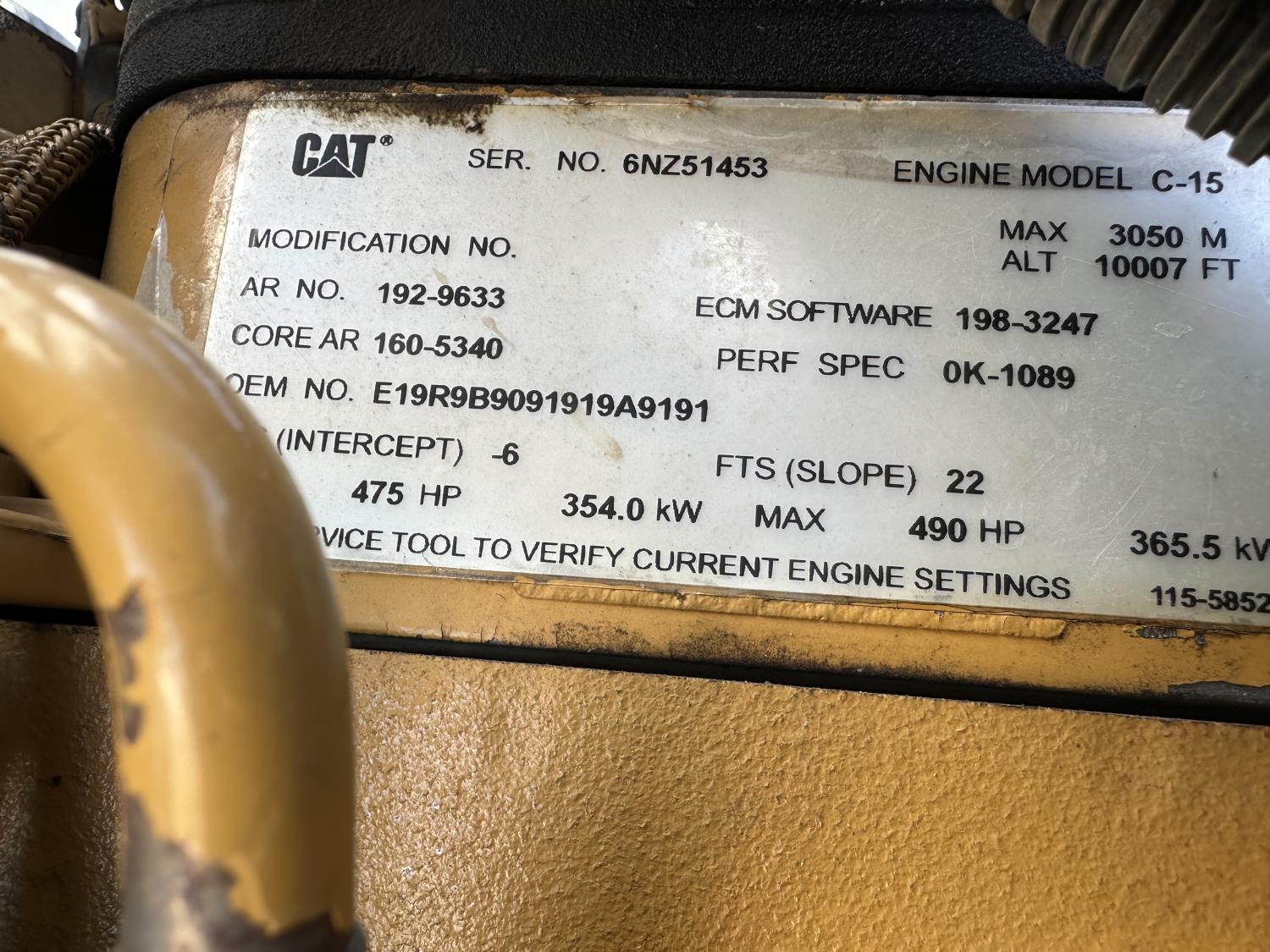 Caterpillar 6NZ 3406 engine, 18 speed manual transmission, mid rise 48 inch sleeper, A/C, air ride driver seat, air ride suspension, 13,000 lb front axle, 46,000 lb rear axles, full lockers, rear half moon fenders, beacon lights, engine brake, all aluminum wheels, 11R24.5 tires