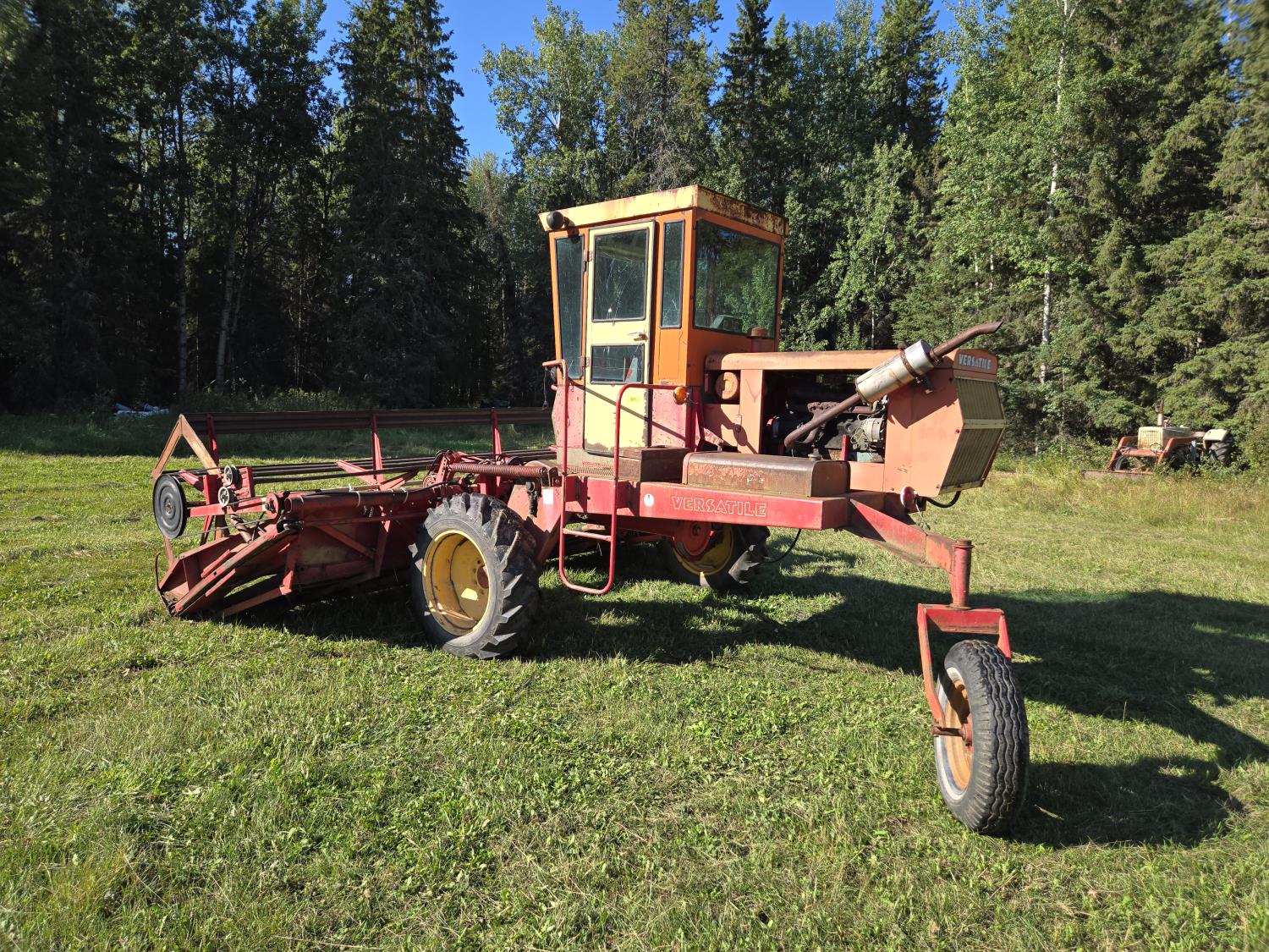 Versatile center delivery batt reel, Ford 6 cylinder gas engine, cab, 11.2-24 front tires